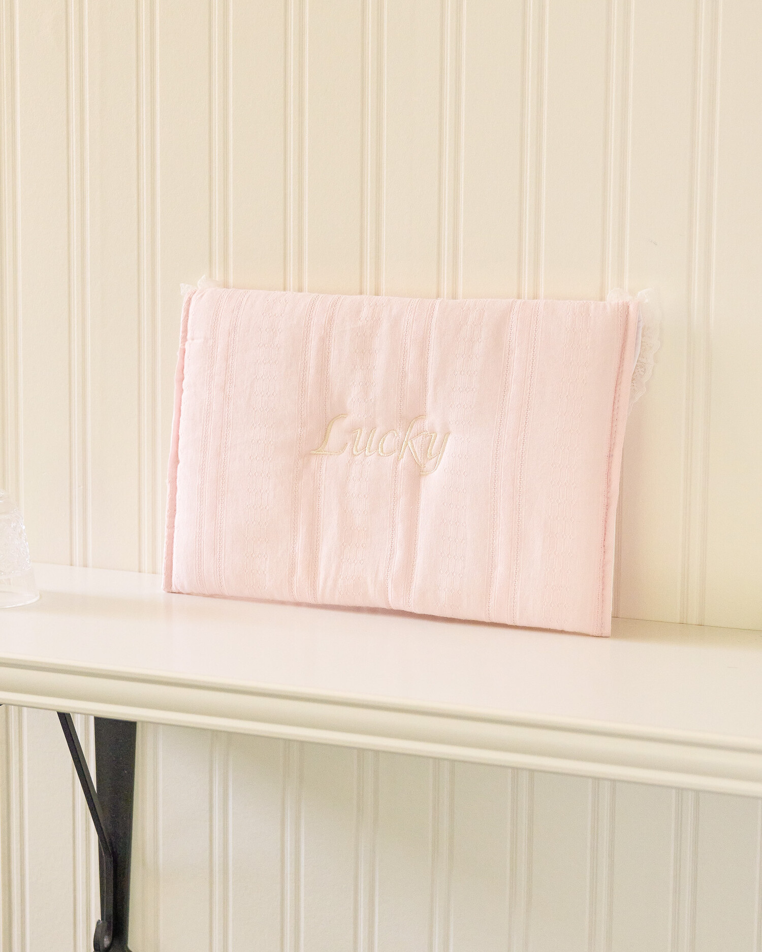 [Notice] •본 제품은 주문 제작 제품으로 2-3일(영업일 기준)이 소요되는 점 참고 부탁드립니다. (일반배송 제품과 함께 주문 시 묶음배송으로 진행되며, 빠르게 받아보셔야 하는 제품의 경우, 단독주문을 진행해주세요!) •주문 제작 상품의 경우, [배송준비중] 단계에서의 취소가 어려우신 점 참고 부탁드립니다. •영문 최대 8자 가능하며, [앞 글자] 대문자 1자(글씨크기로 인해 1자 제한)+ [나머지] 소문자(최대 7자) 작성이 가능합니다. ( 대문자(1자 제한) / 한글&특수문자 X ) •네이밍 자수의 폰트 / 컬러 변경이 불가능 합니다. •커스텀 네이밍 옵션 추가 시, 재판매가 어려우므로 단순 변심으로 인한 교환 및 환불이 불가한 점 안내드리며, 신중한 구매 부탁드립니다. •커스텀 네이밍 제품의 특성상, 오기재로 인한 교환 및 환불이 불가한 점 안내드리며, 알맞은 기재와 확인 부탁드립니다. •패브릭 제품의 특성상 ±1~2cm 오차가 있을 수 있으며, 이점은 불량이 아니며 교환 및 환불의 사유가 되지 않음을 안내드립니다.