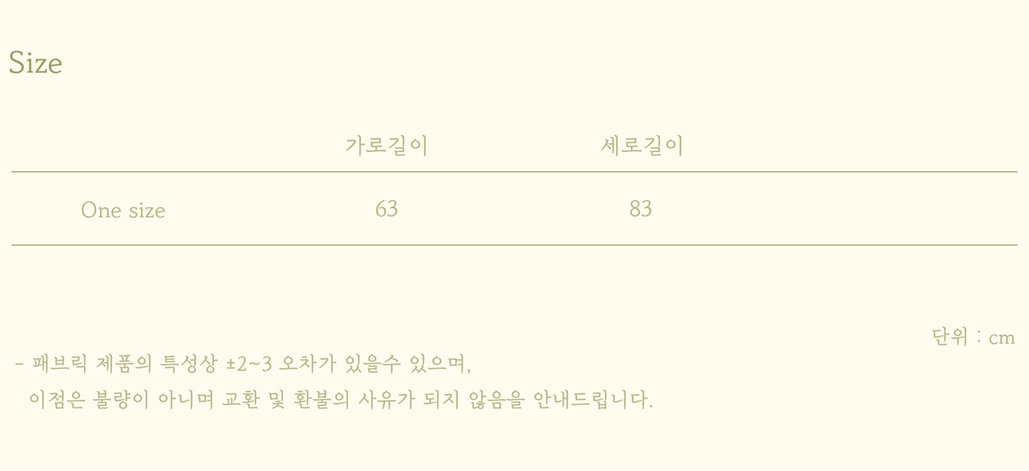 •패브릭 제품의 특성상 ±1~2cm 오차가 있을 수 있으며, 이점은 불량이 아니며 교환 및 환불의 사유가 되지 않음을 안내드립니다.