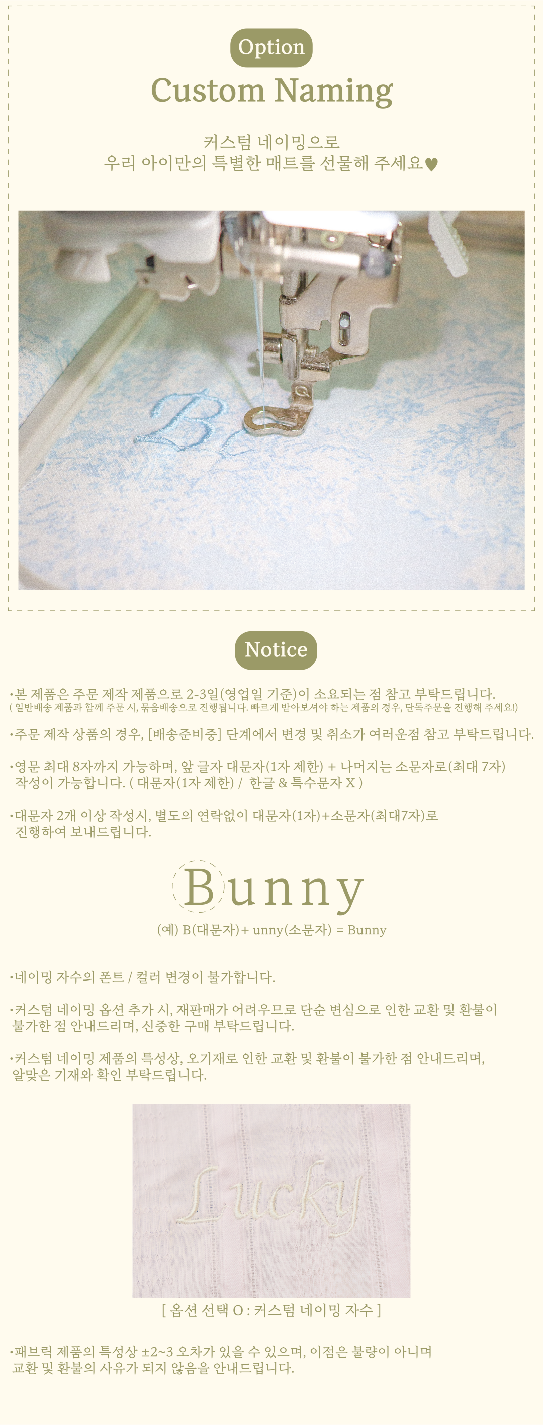 •네이밍 자수의 폰트 / 컬러 변경이 불가능 합니다.