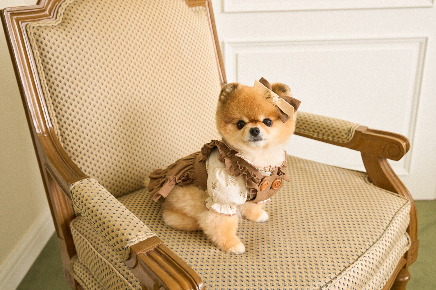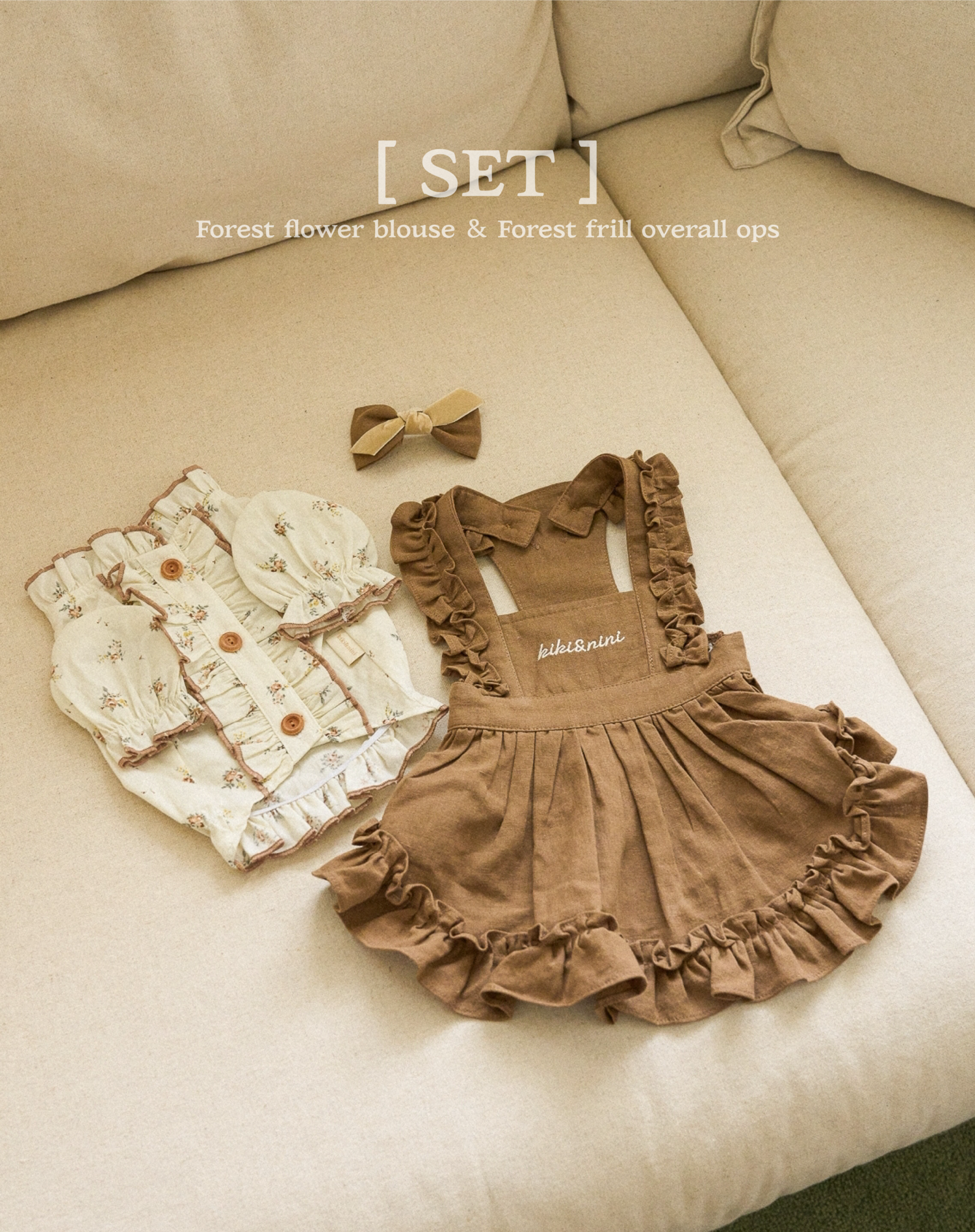 [ 포레스트 플라워 블라우스 (브라운) & 포레스트 프릴 오버롤 원피스 (브라운) ]