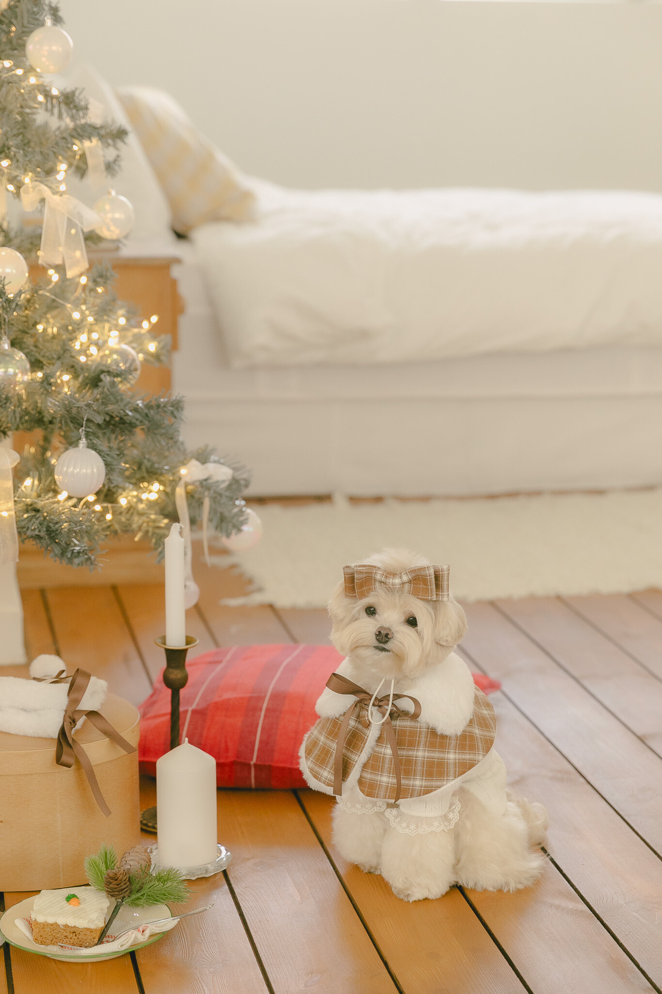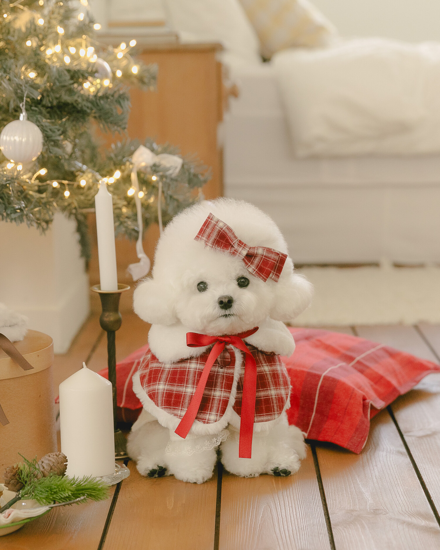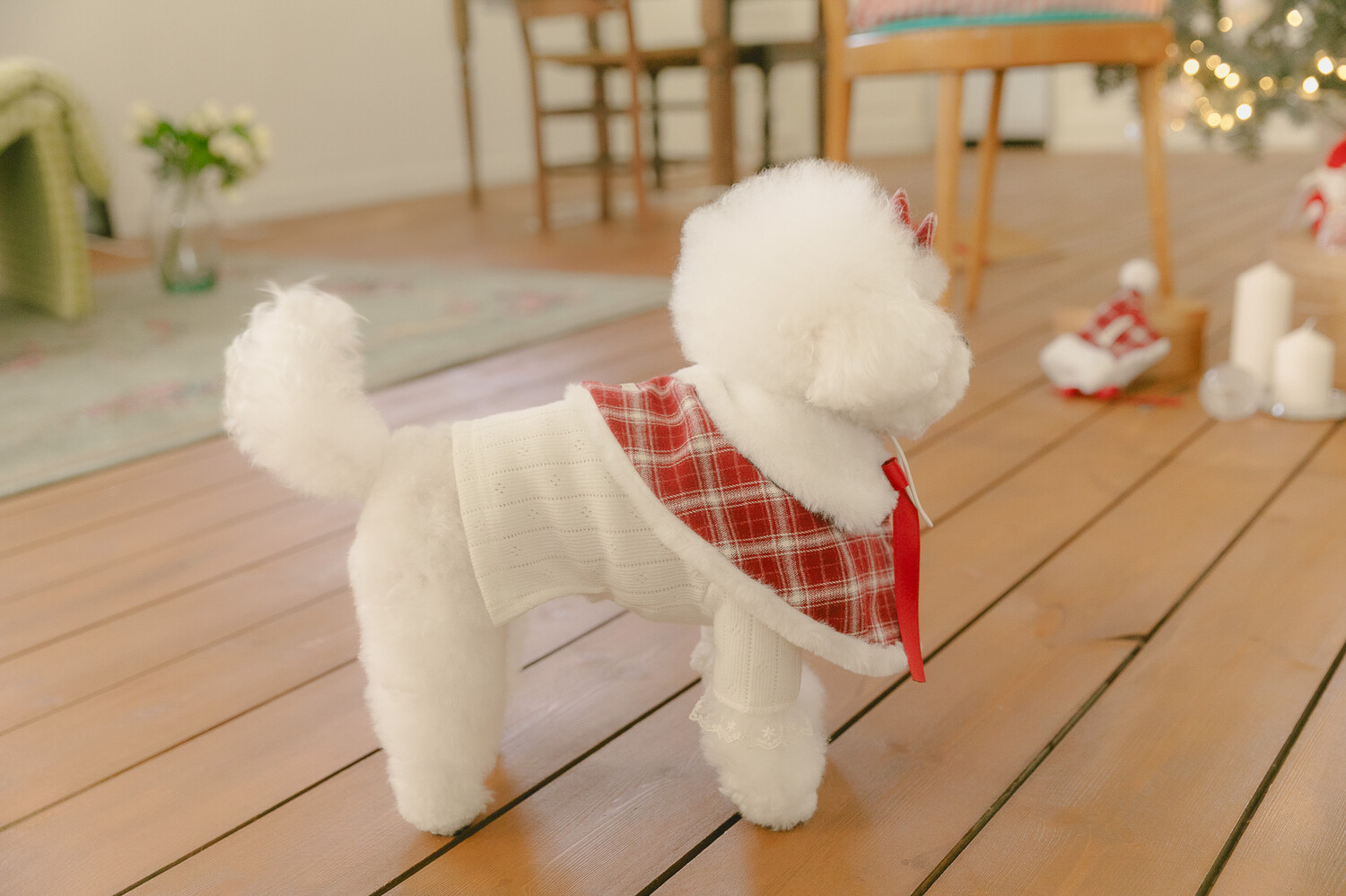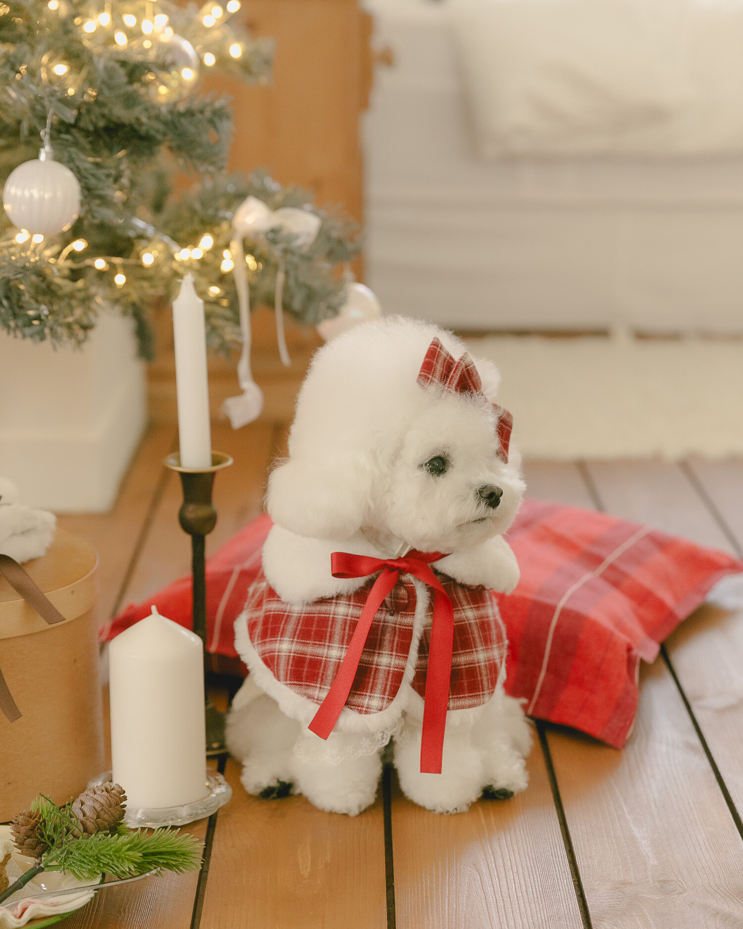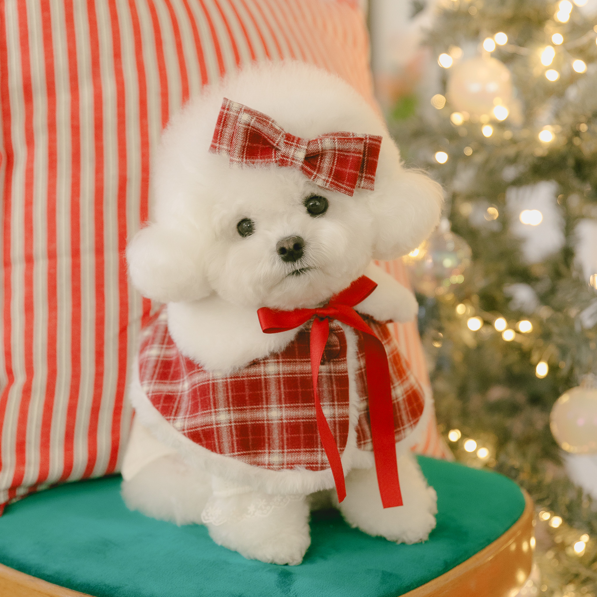빈티지 체크와 포근한 퍼, 사랑스러운 레이스 디테일을 더해 작은 요정처럼 빛나는 연말 룩을 완성해주는 아이템들로 구성했어요.