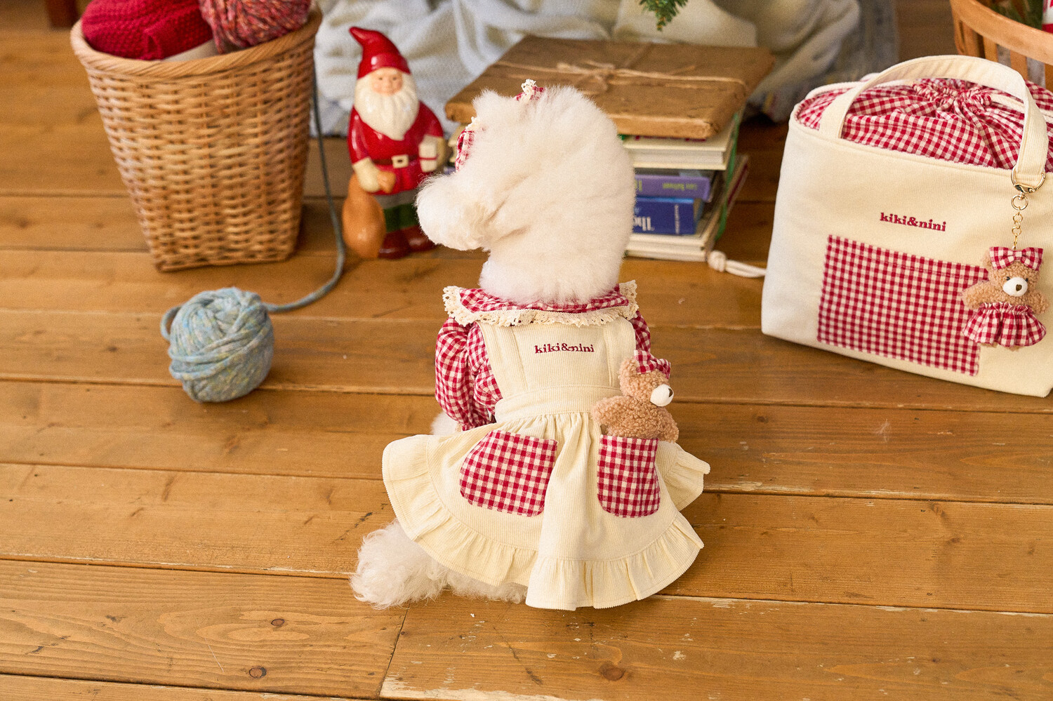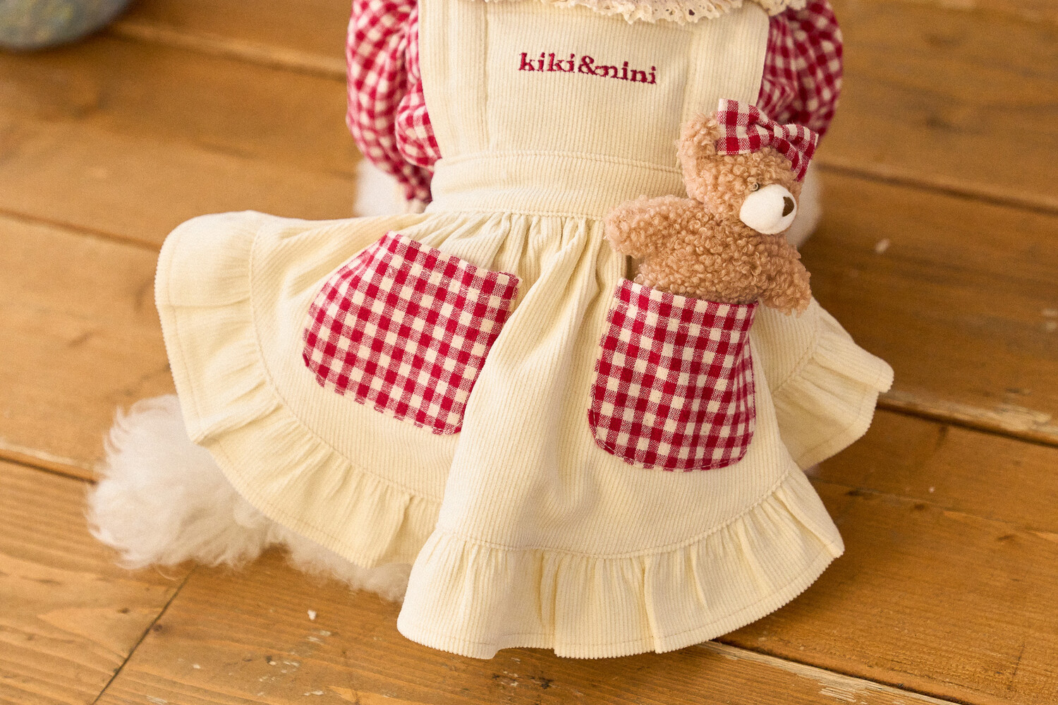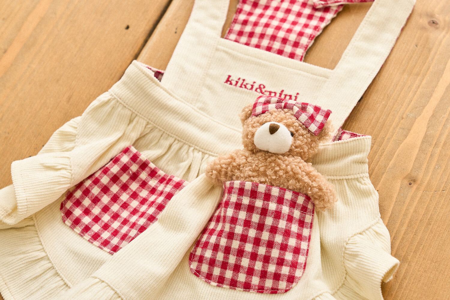 더욱 사랑스럽고 빈티지한 ‘테디 러브 오버롤 원피스’가 완성되었습니다.