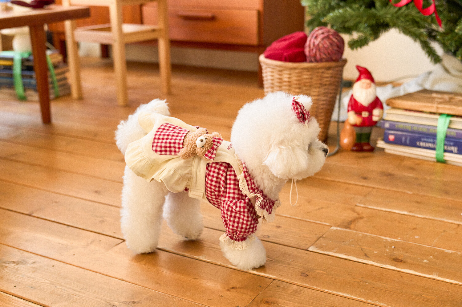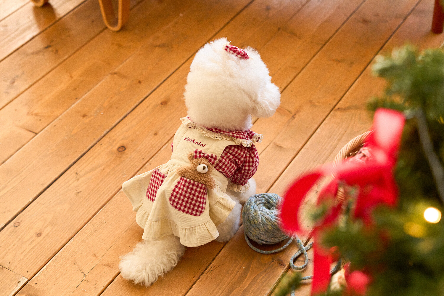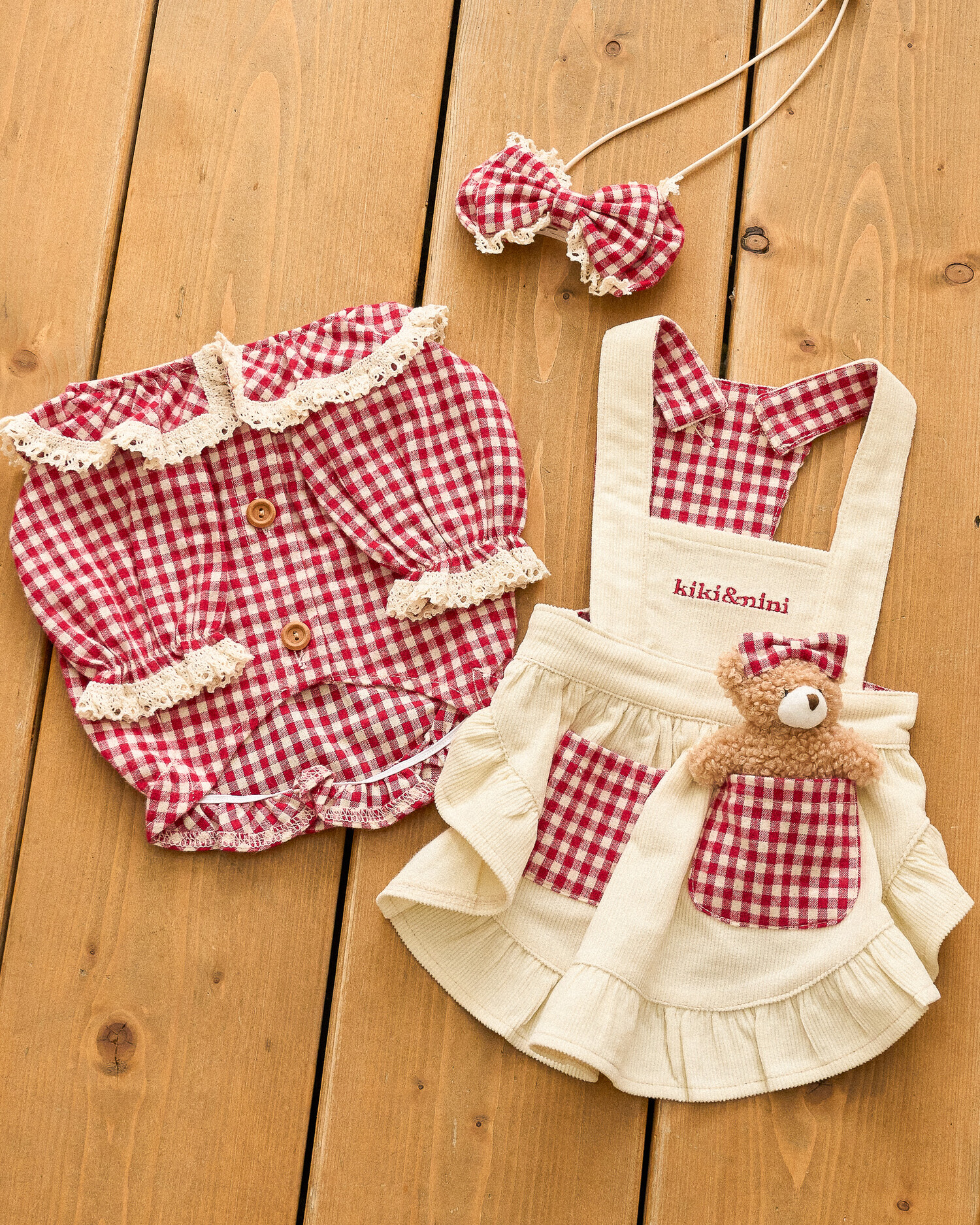 더욱 사랑스럽고 빈티지한 ‘테디 러브 오버롤 원피스’가 완성되었습니다.