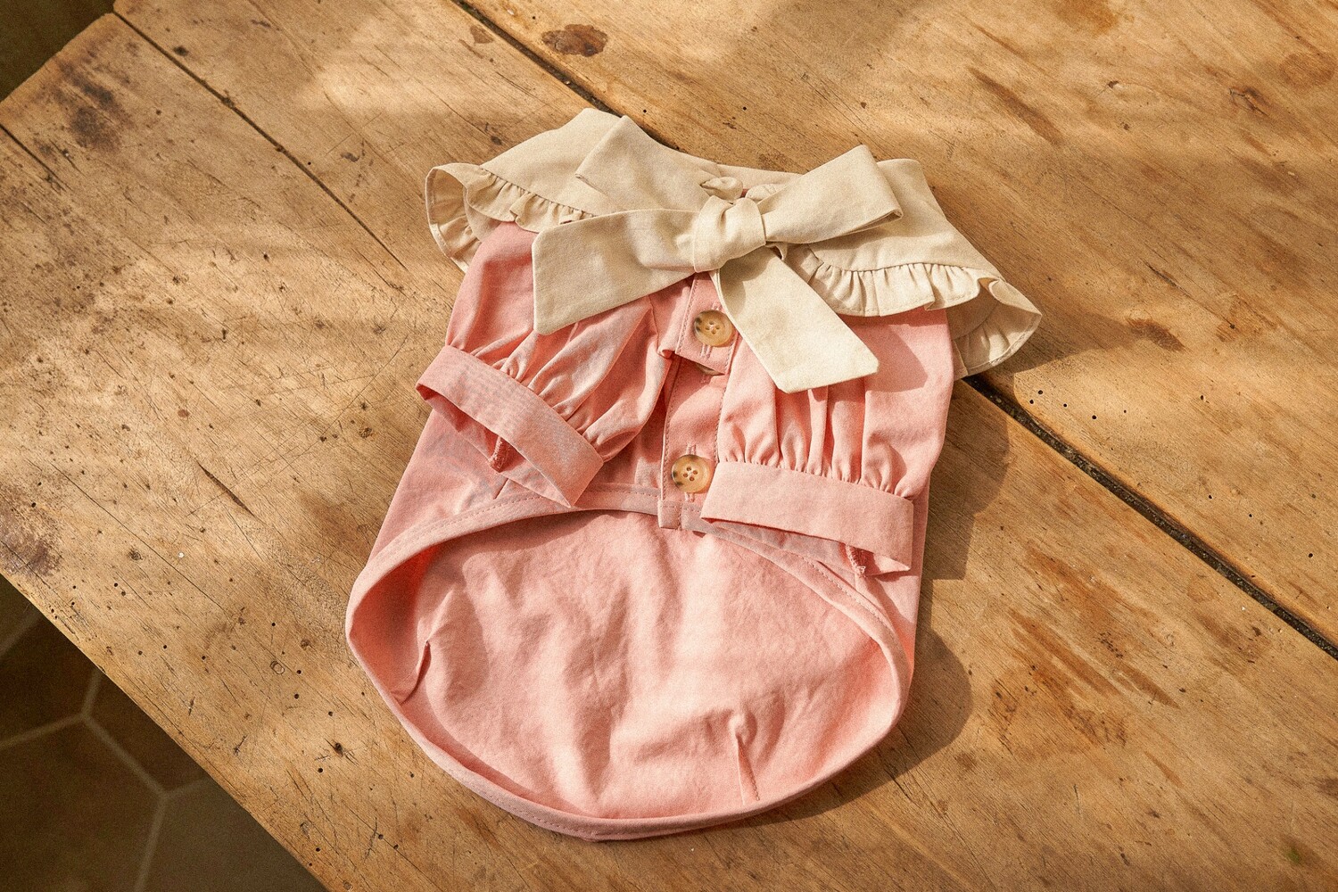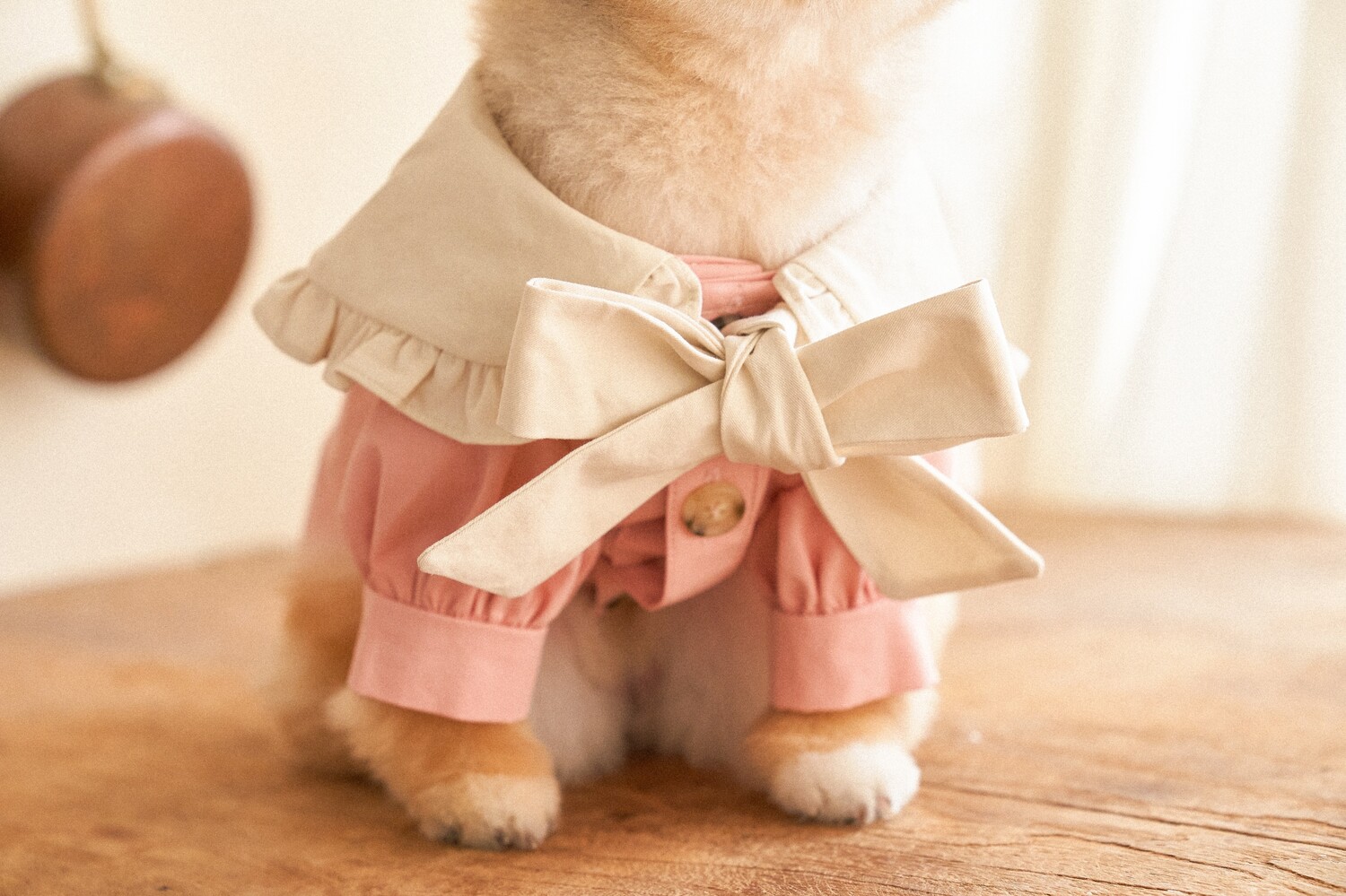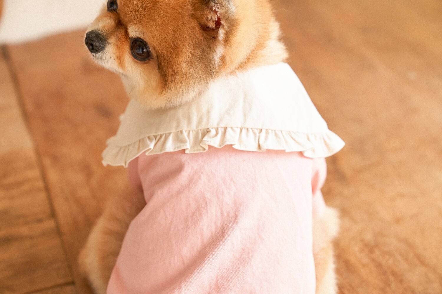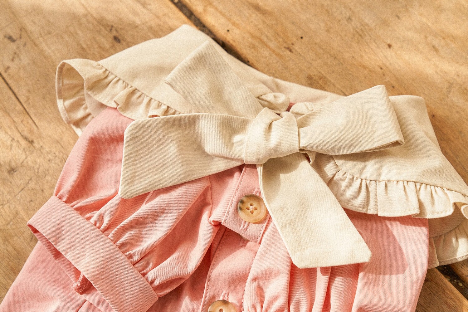 유행을 타지 않으면서, 소프트한 컬러감과 배색되는 프릴 세일러카라&리본이 포인트인 제품입니다.