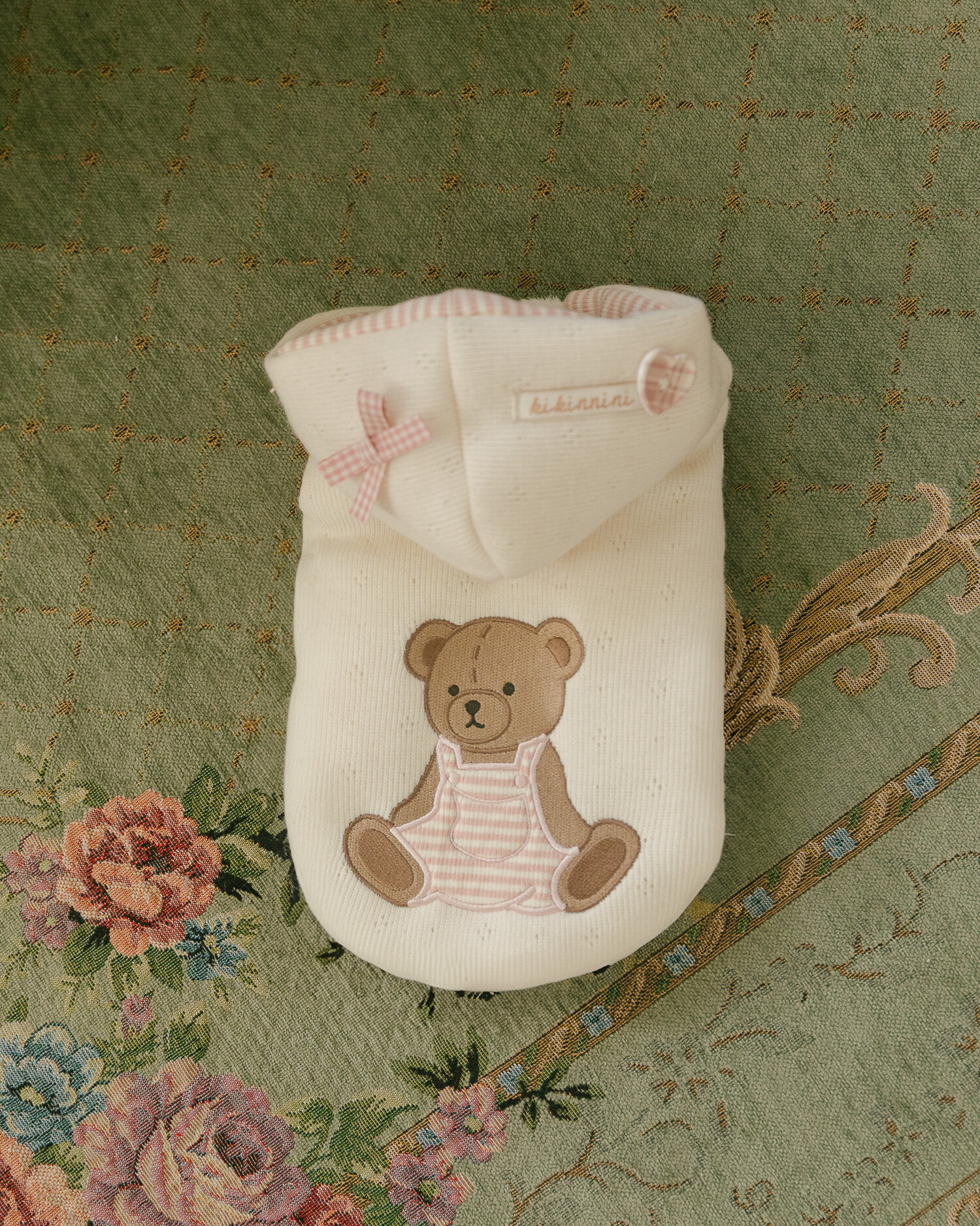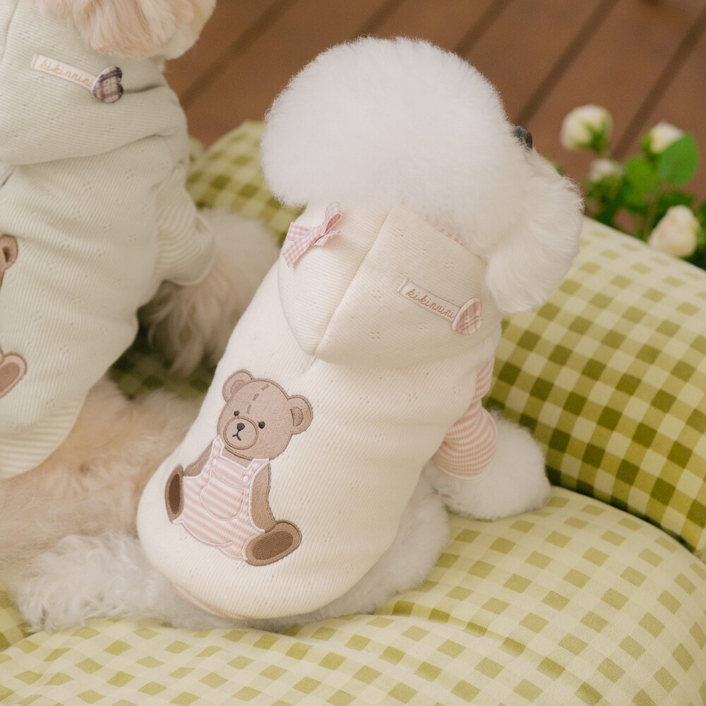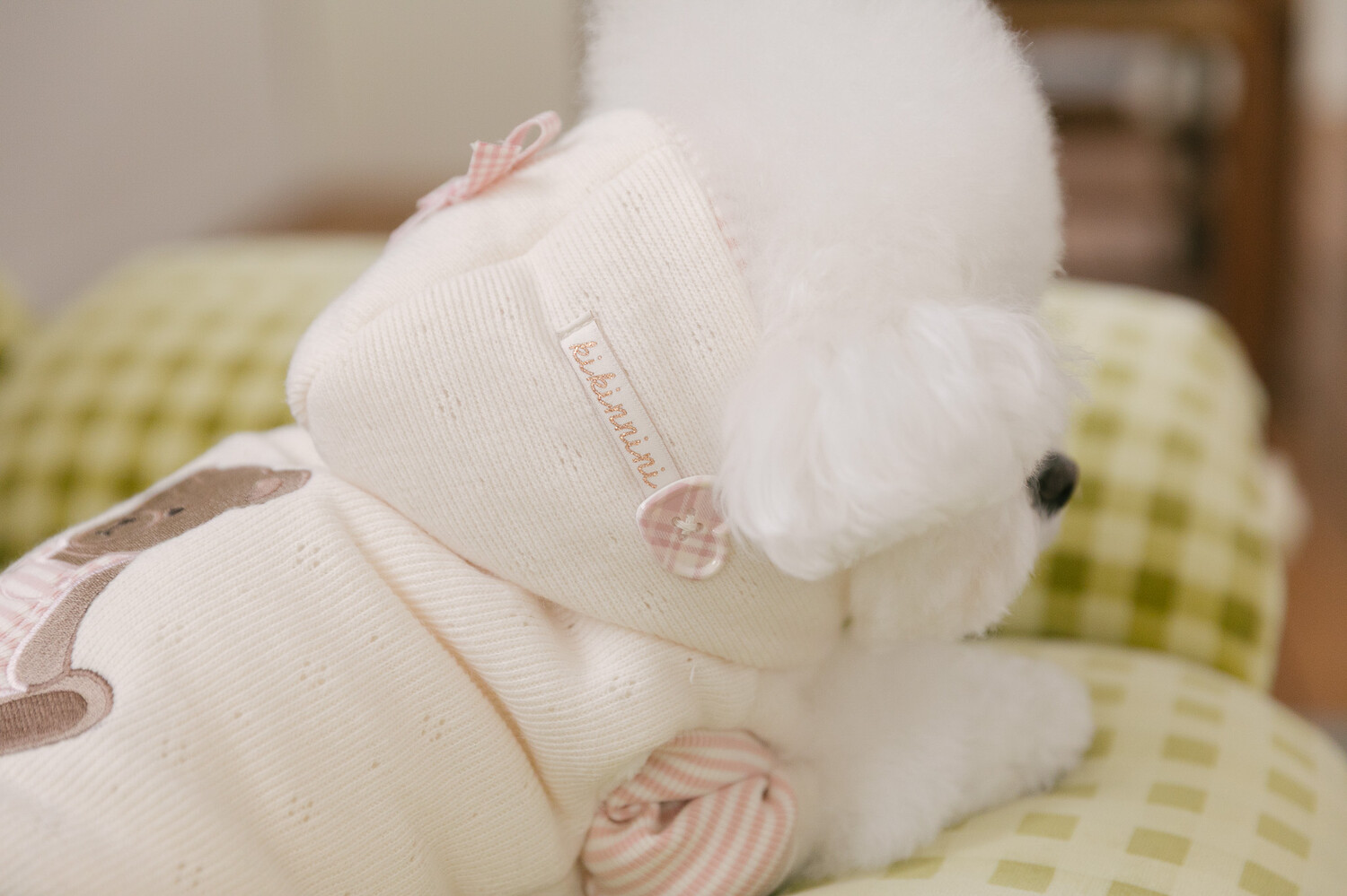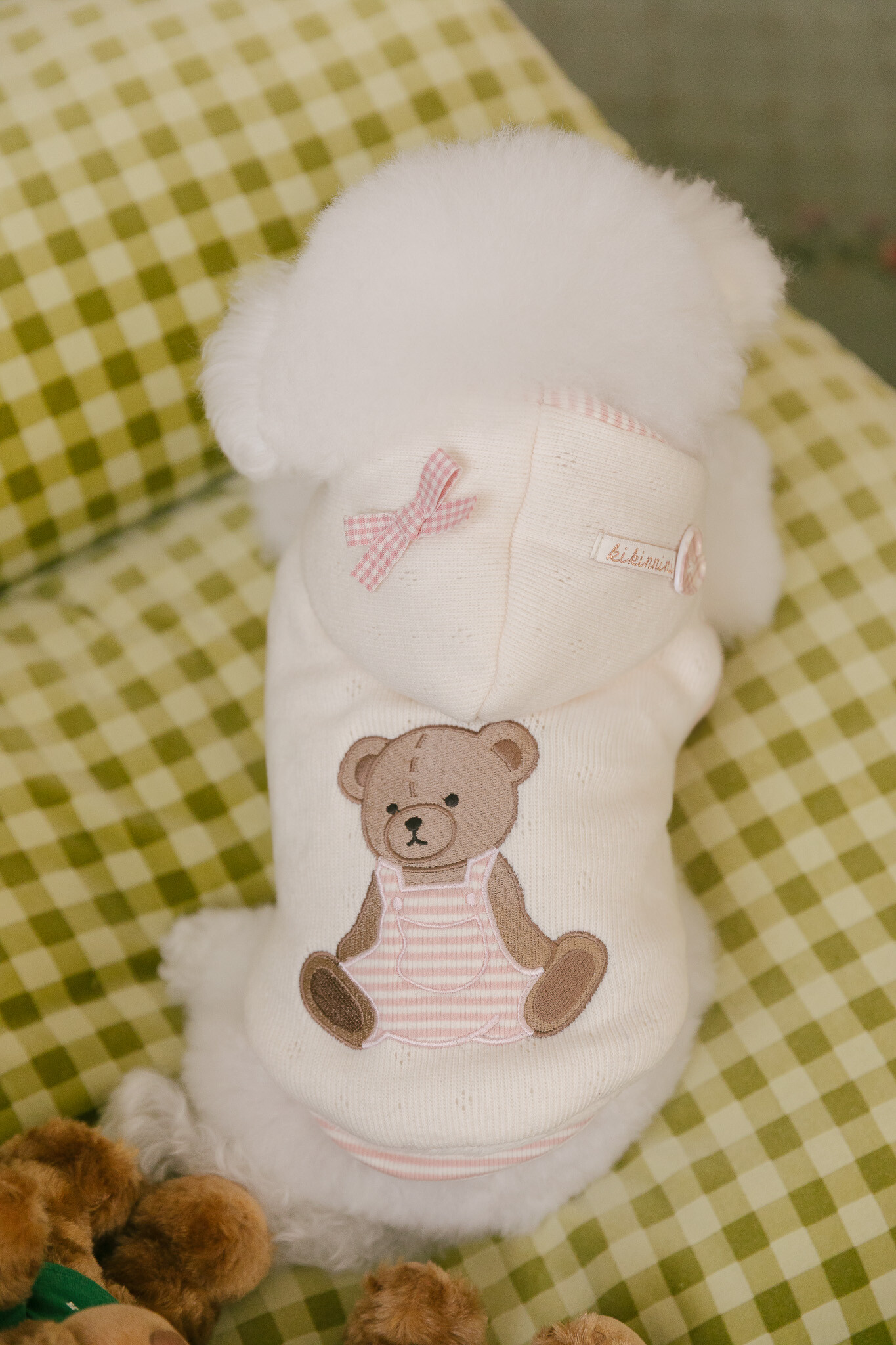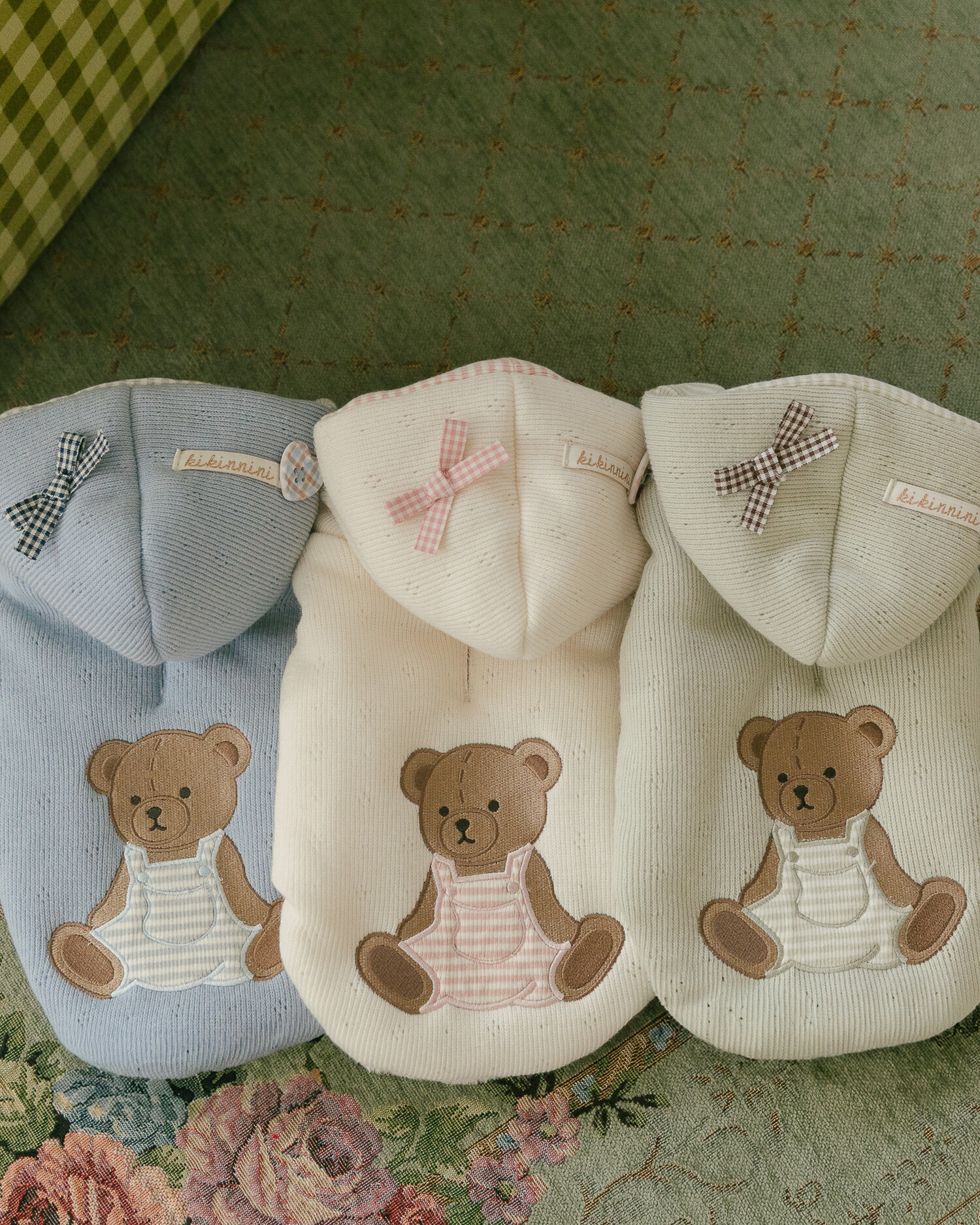 부드러운 니트 위에 키키앤니니 시그니처 브라우니 곰돌이 자수를 수놓은,