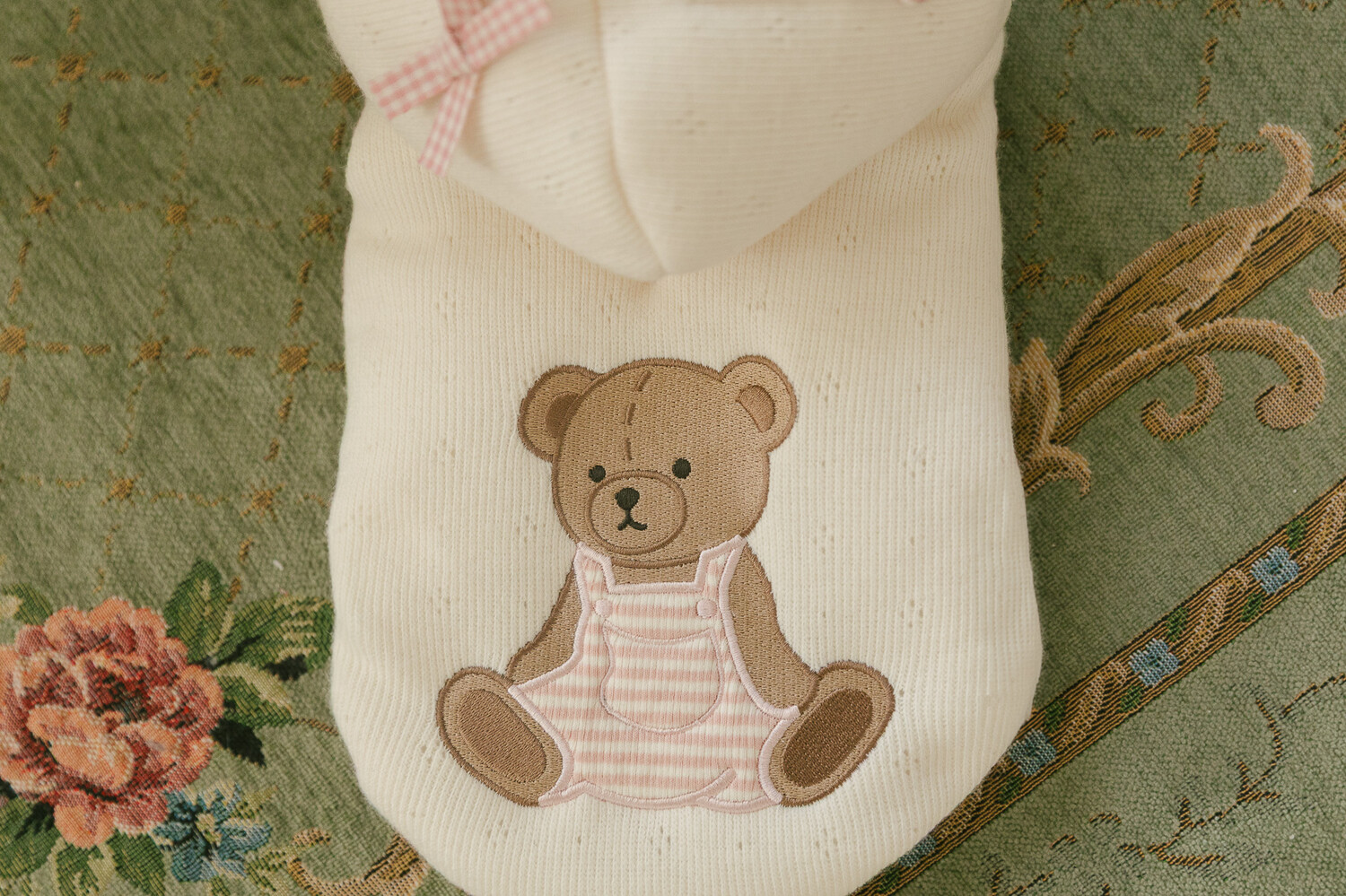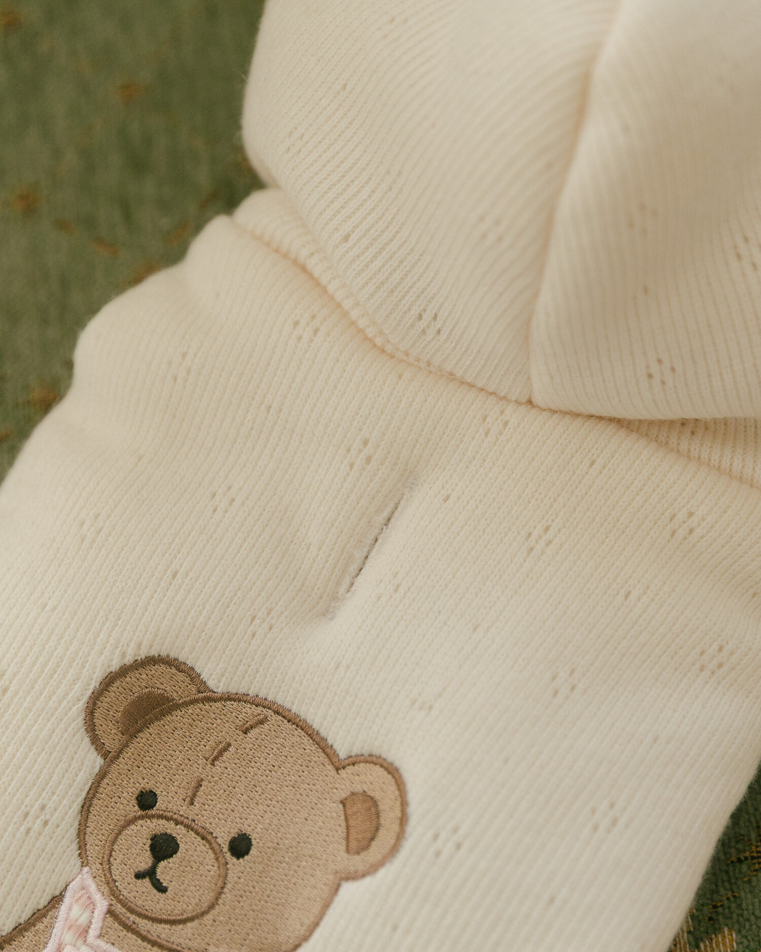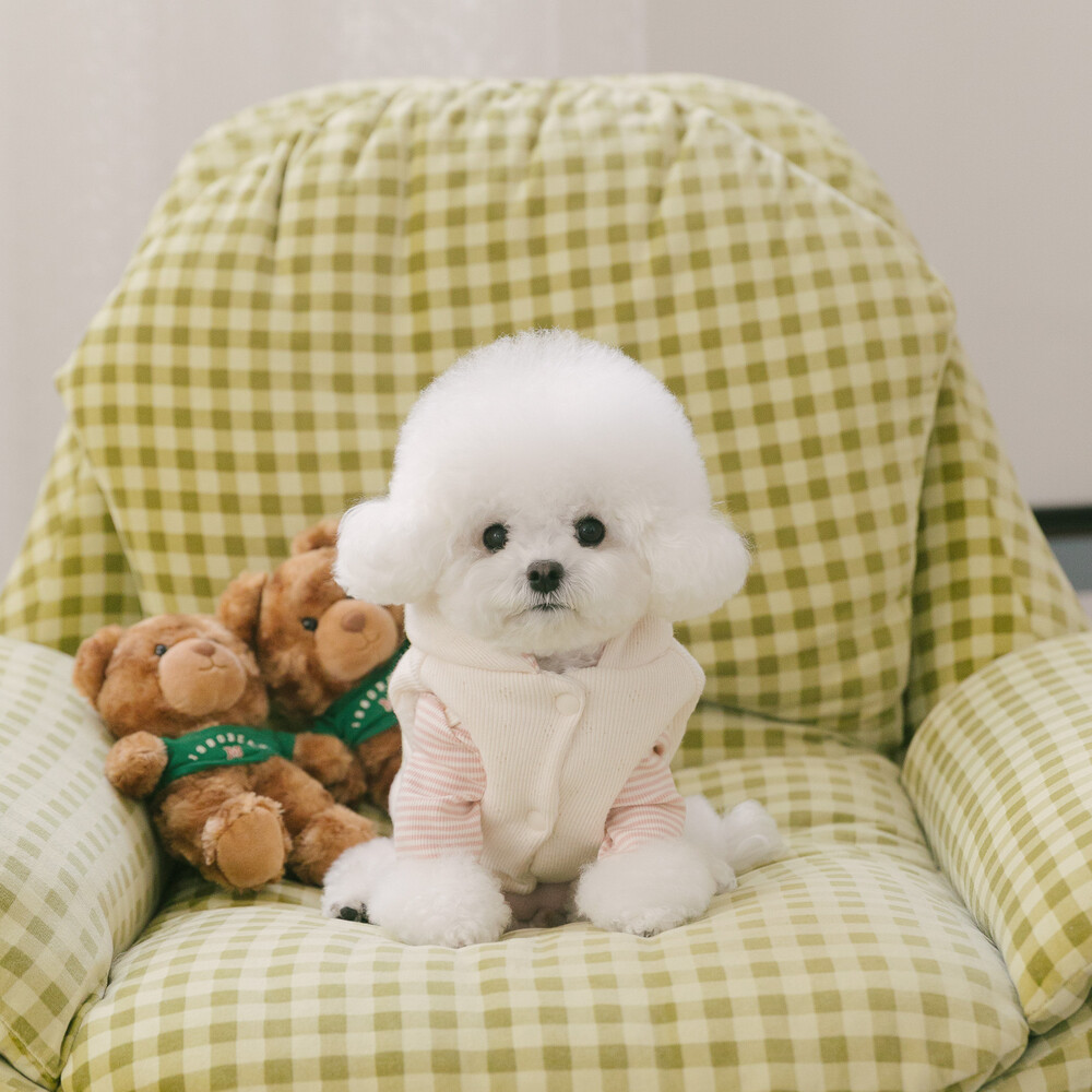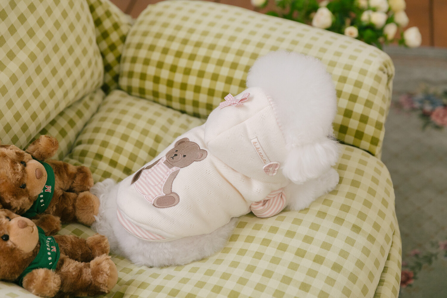 부드러운 니트 위에 키키앤니니 시그니처 브라우니 곰돌이 자수를 수놓은,