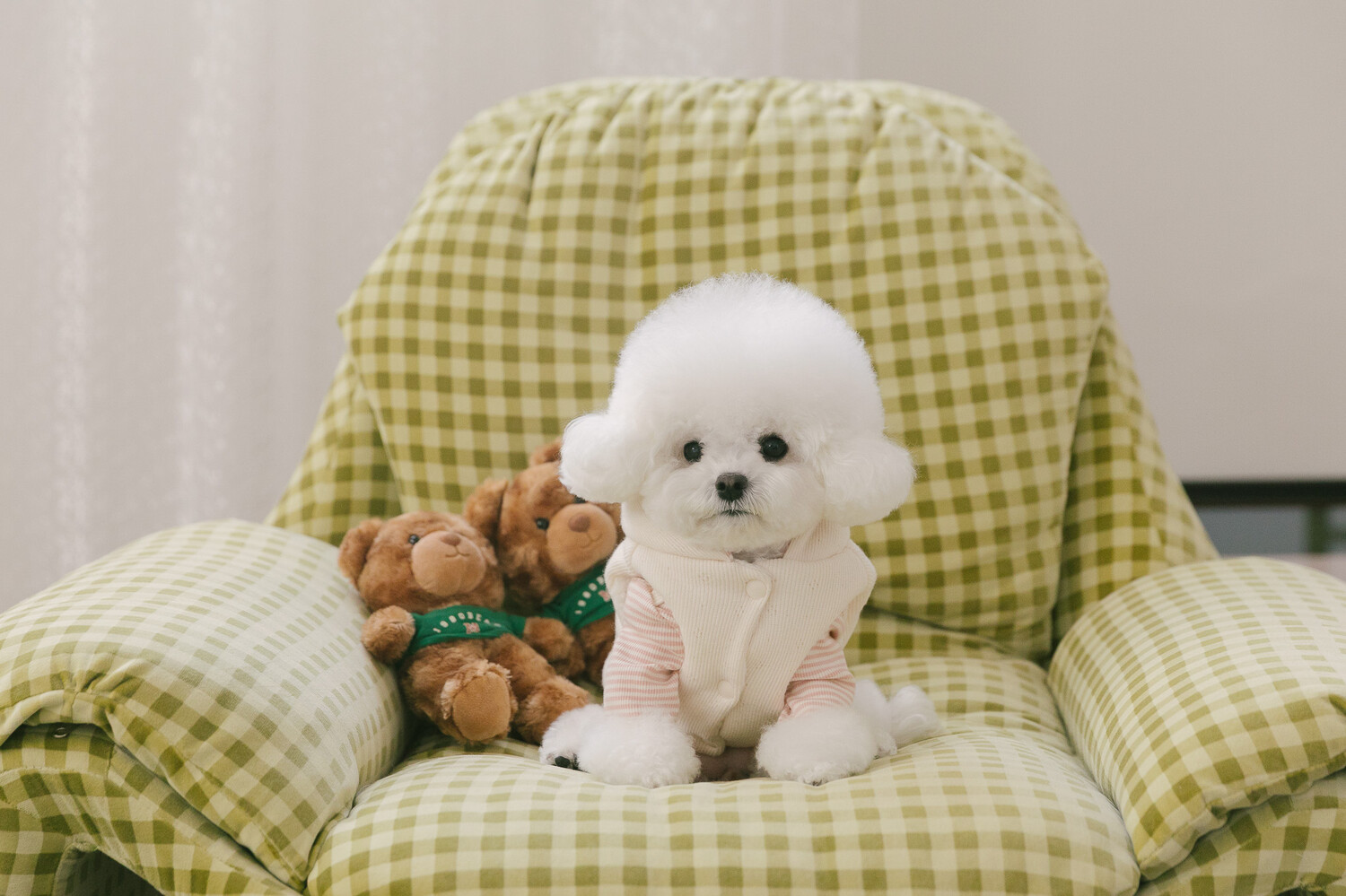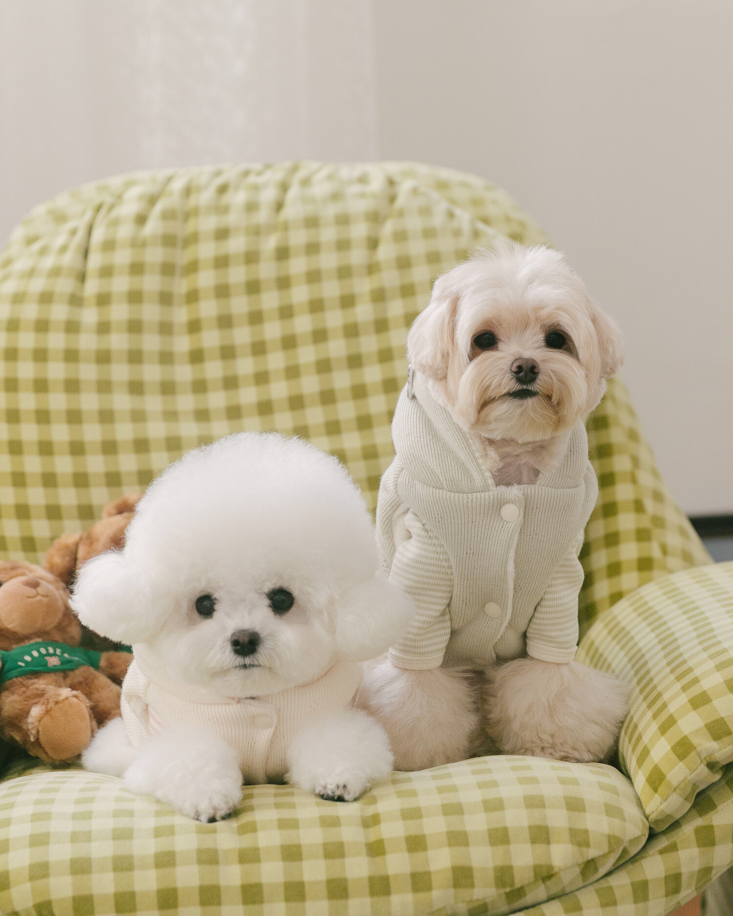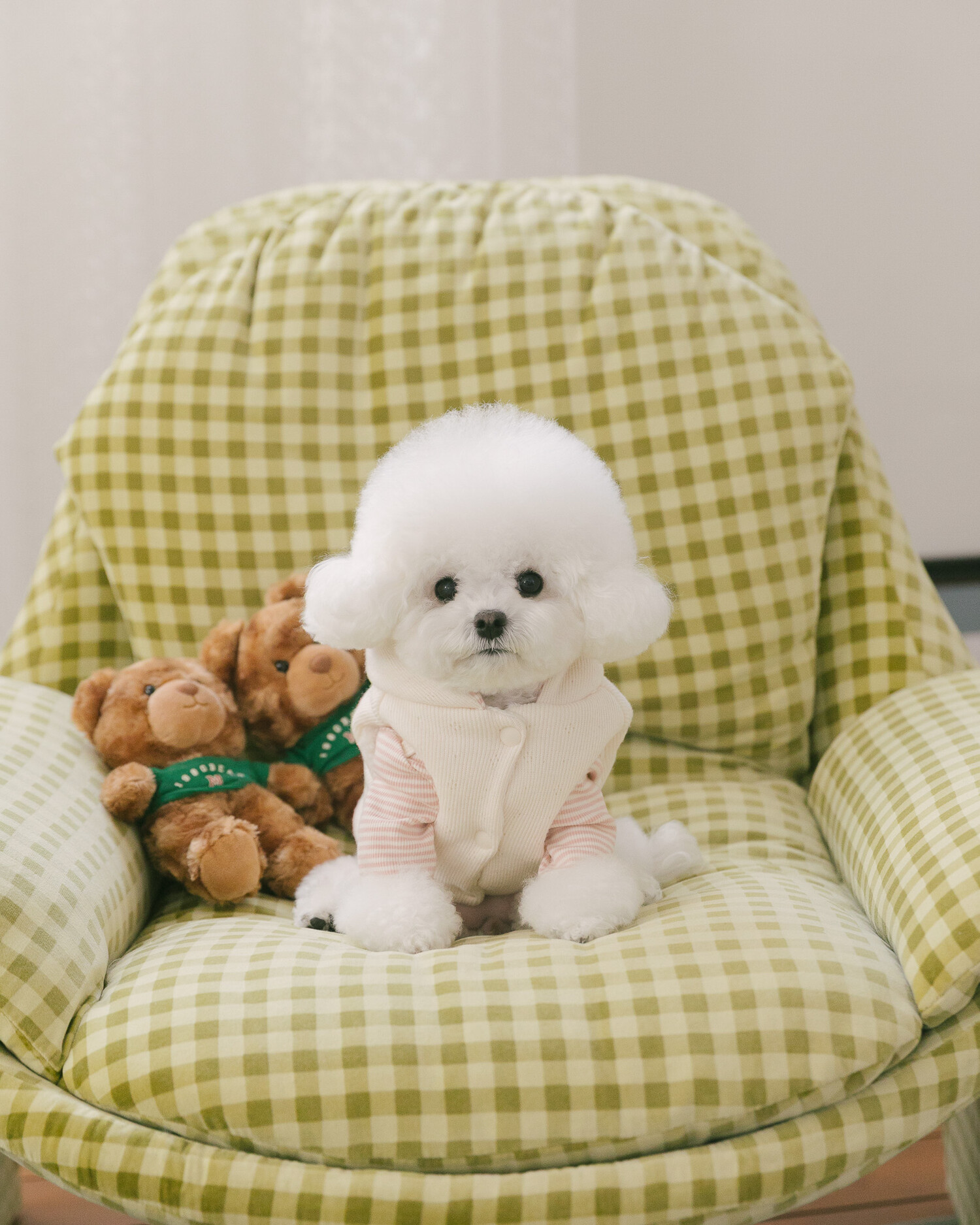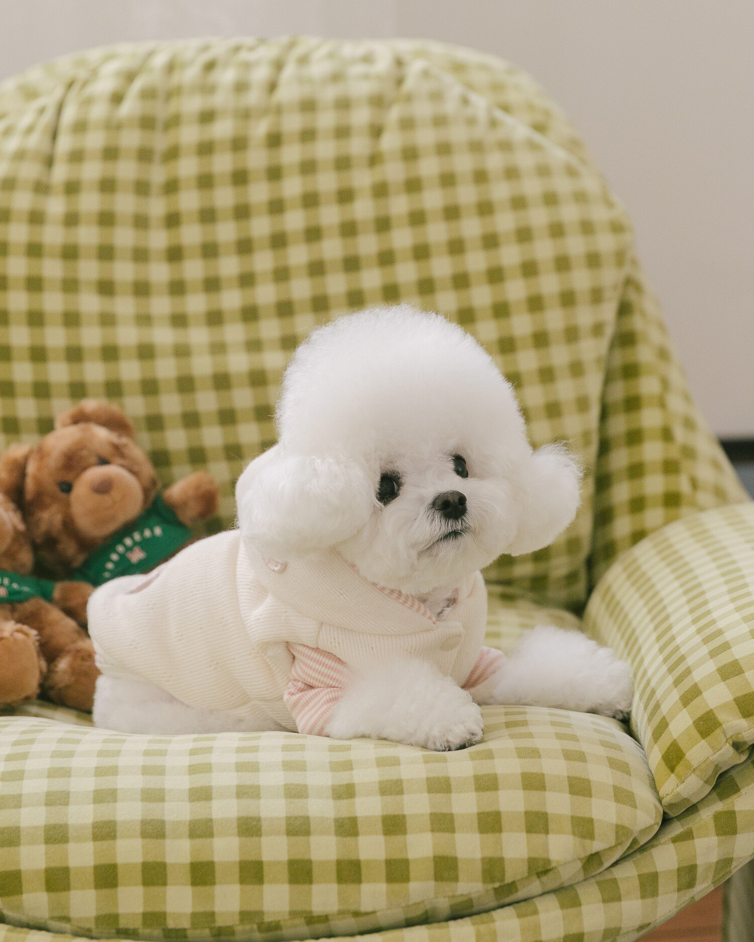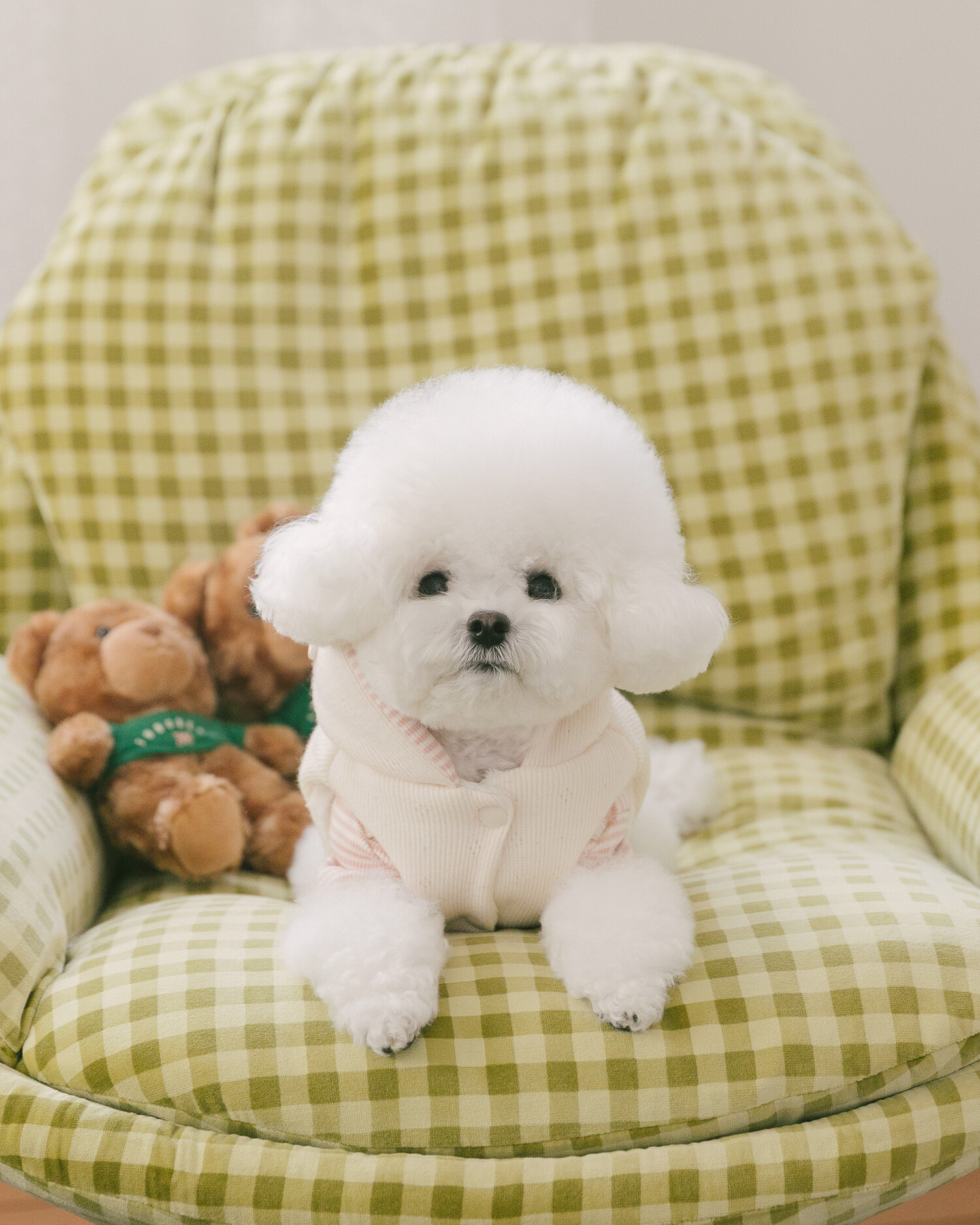 부드러운 니트 위에 키키앤니니 시그니처 브라우니 곰돌이 자수를 수놓은,