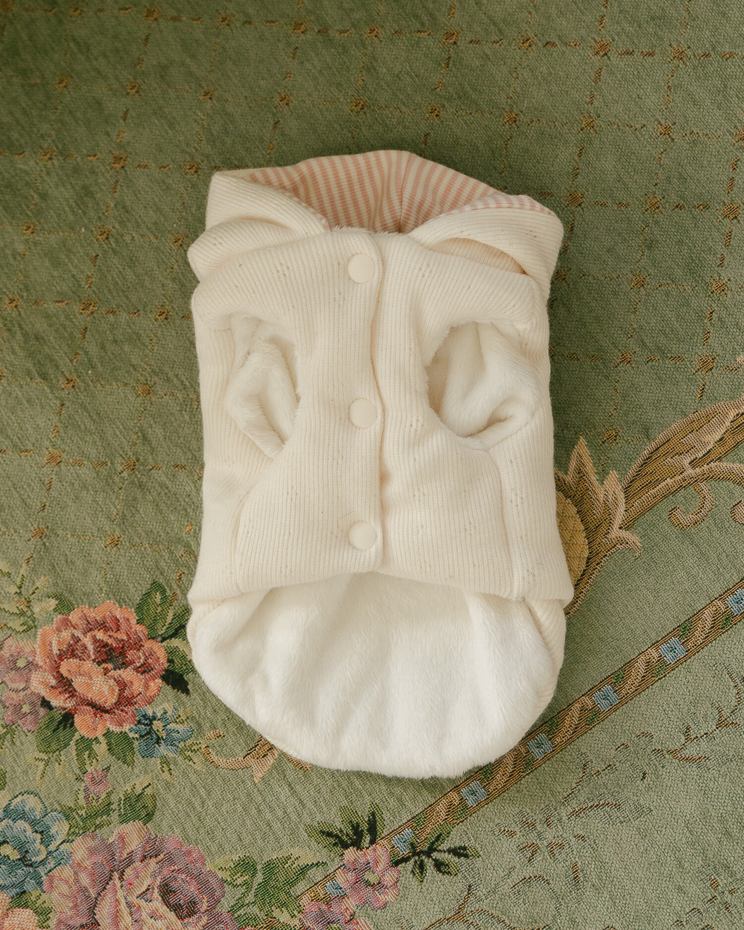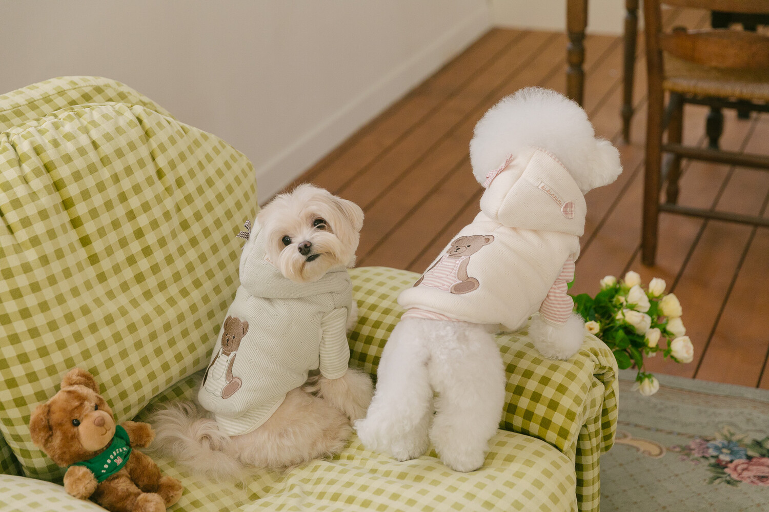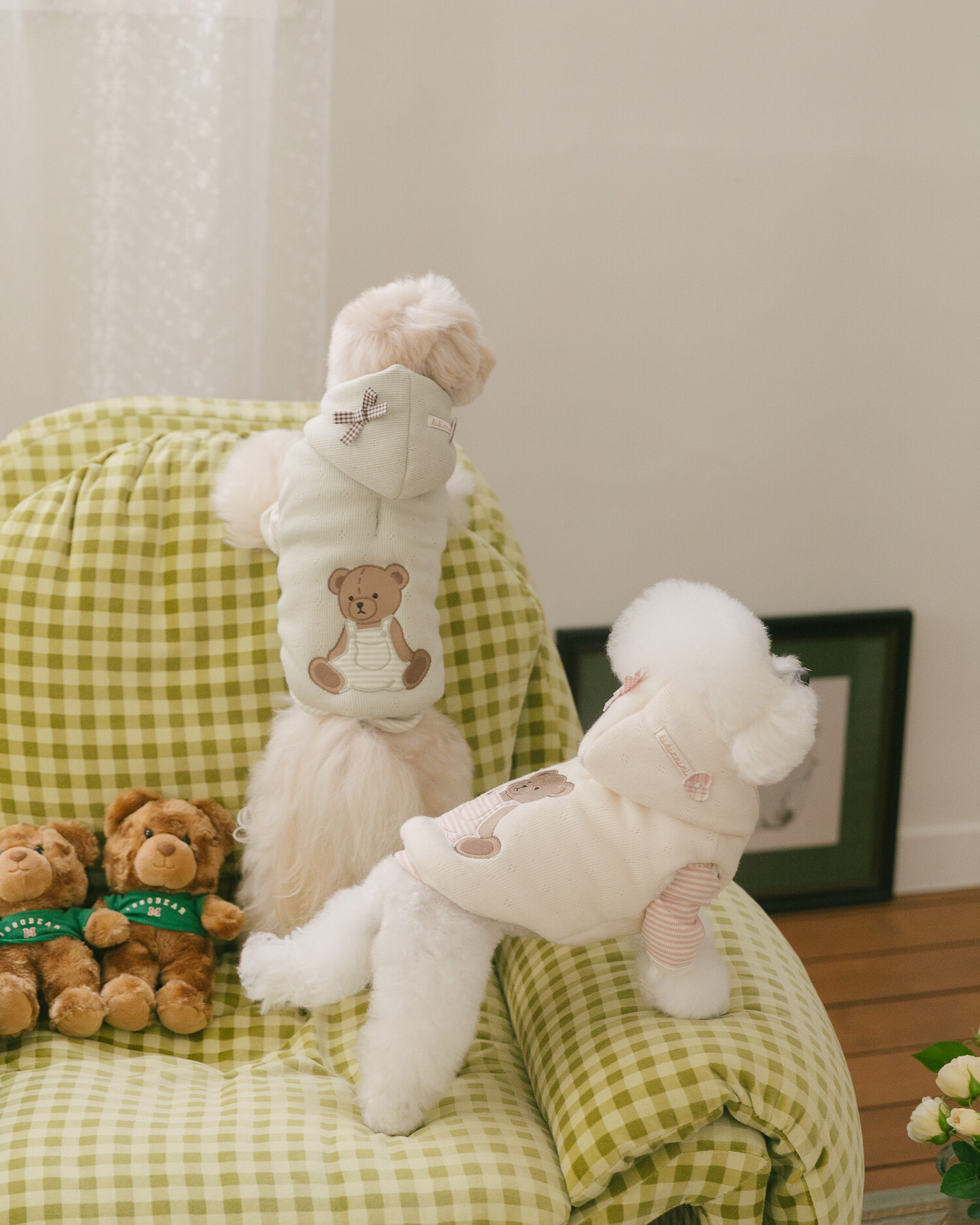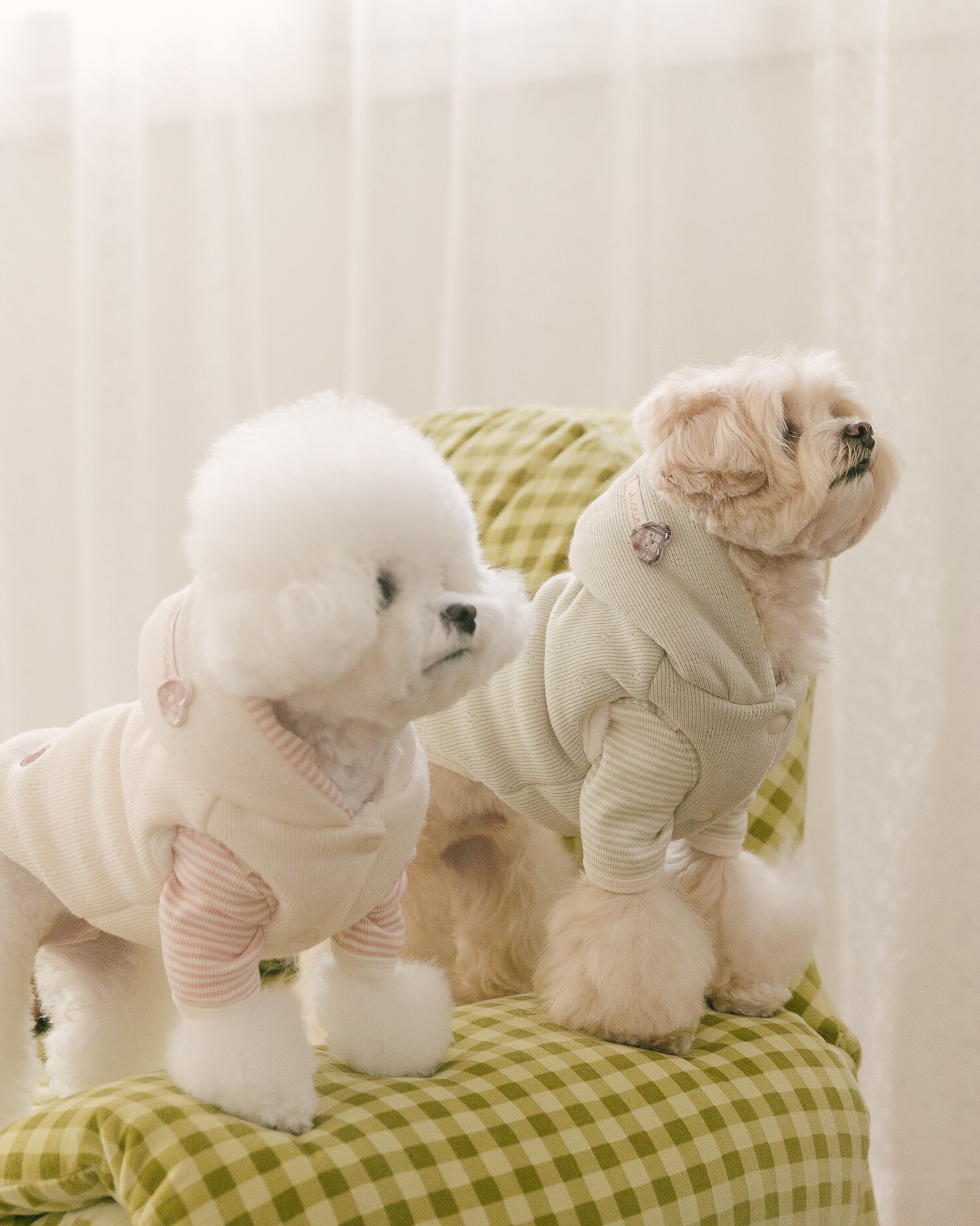 후드에는 깅엄체크 리본과 하트 단추를 더해 사랑스러운 포인트를 완성했습니다🎀
