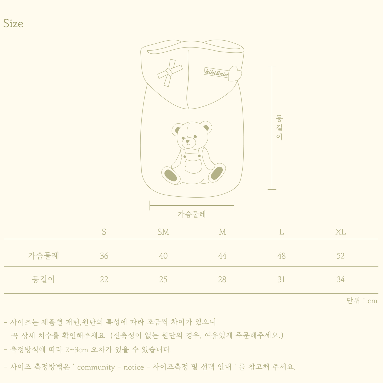 아이의 가슴둘레보다 5~6cm 여유 있게 착용해 주시는 것을 추천드립니다.