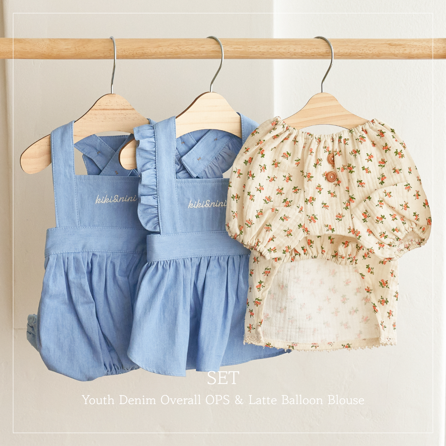 라떼 벌룬 블라우스 + 유스 데님 오버롤 원피스 (세트할인)