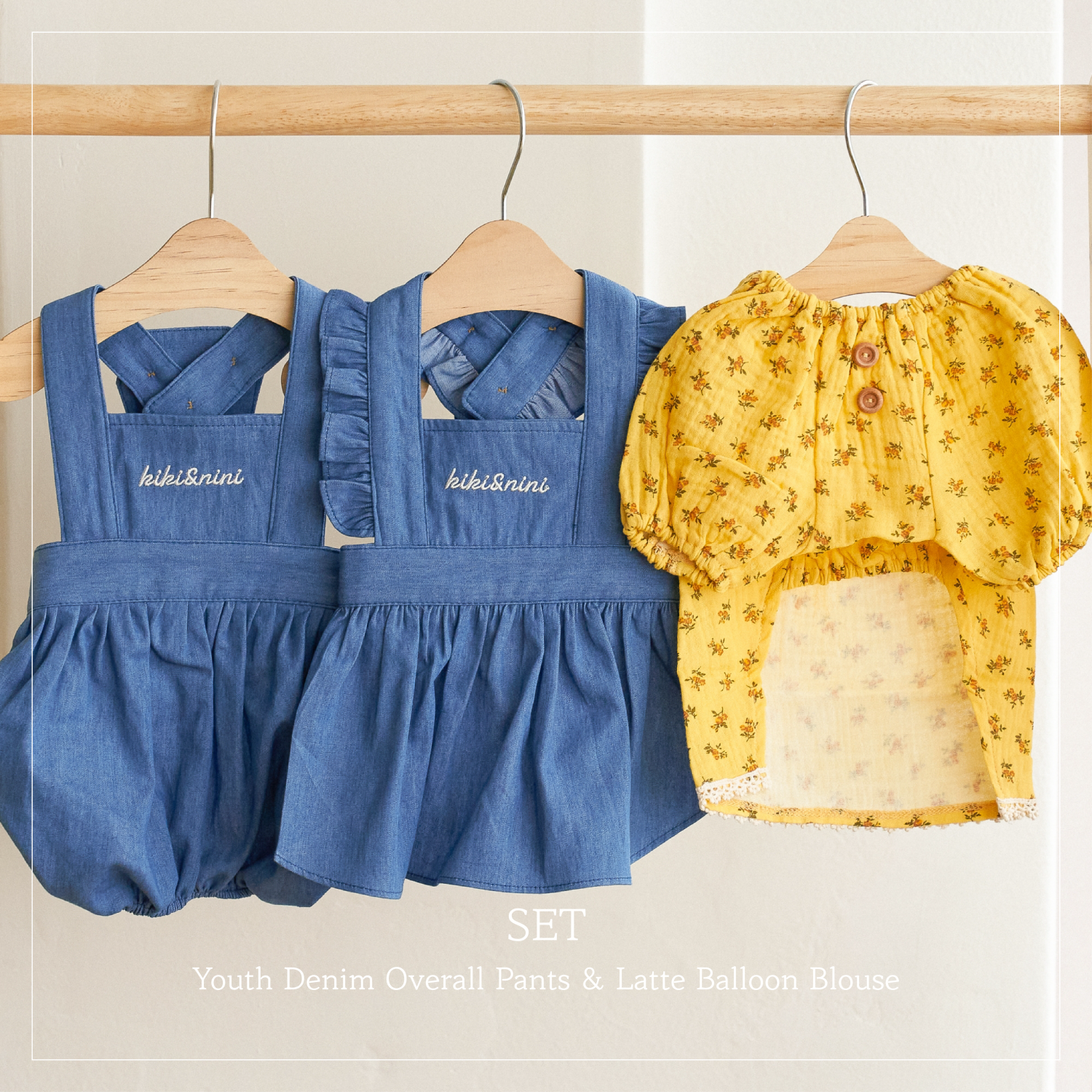 라떼 벌룬 블라우스 + 유스 데님 오버롤 팬츠 (세트할인)
