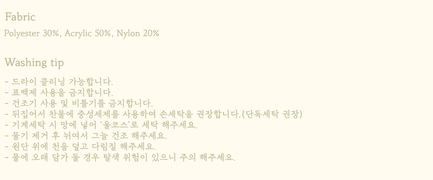 단독으로도 부드럽고 포근한 겨울 룩을 연출할 수 있어 활용도가 높습니다.