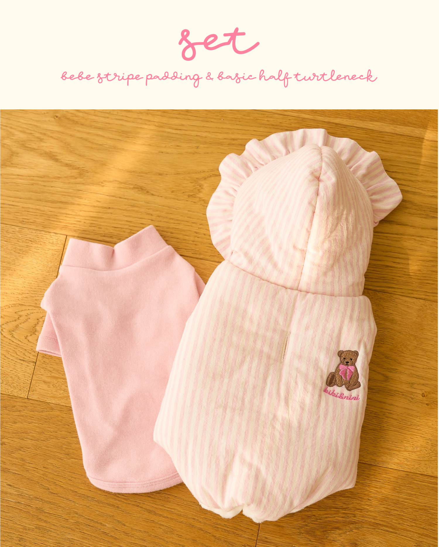 베베 스트라이프 패딩(베이비핑크) + 베이직 하프 터틀넥 (세트할인)