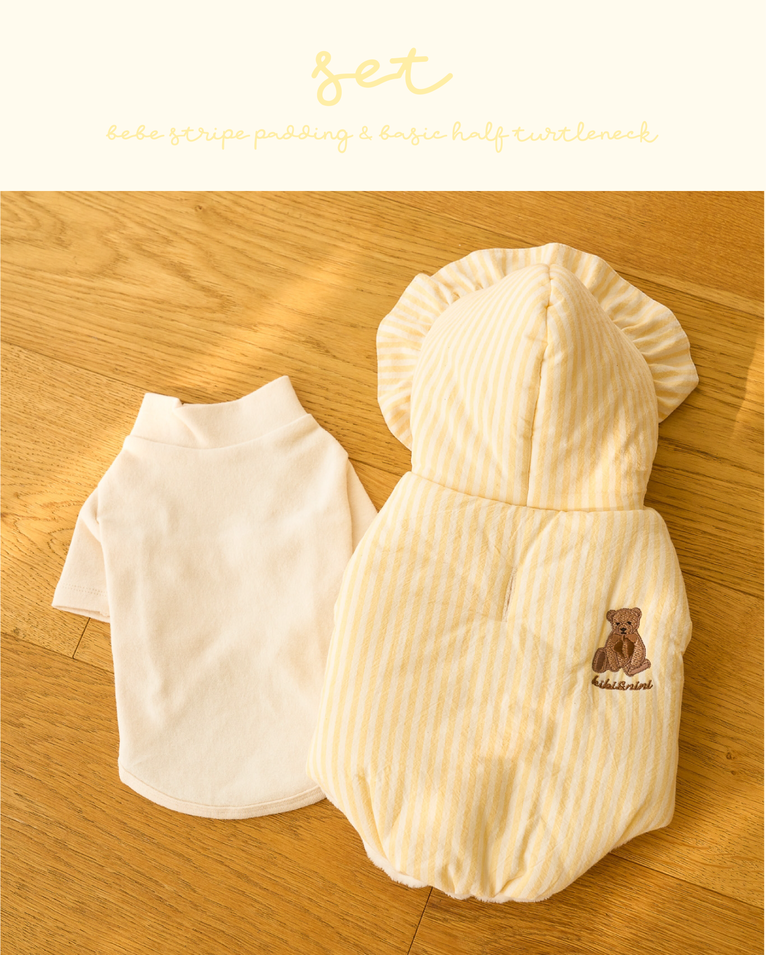 베베 스트라이프 패딩(버터옐로우) + 베이직 하프 터틀넥 (세트할인)