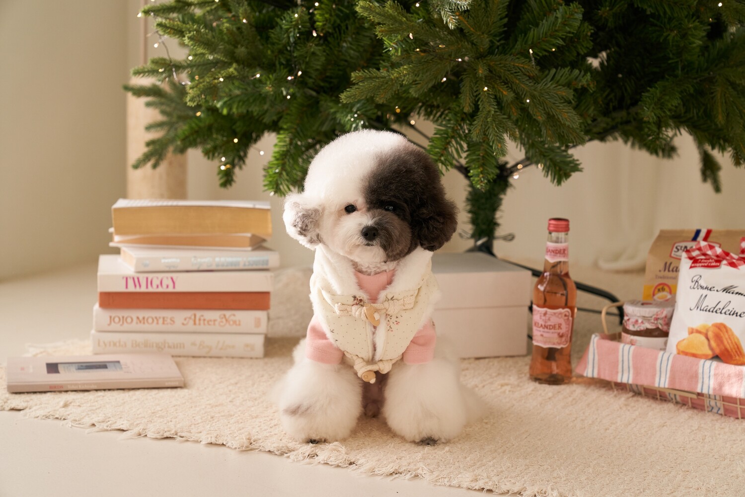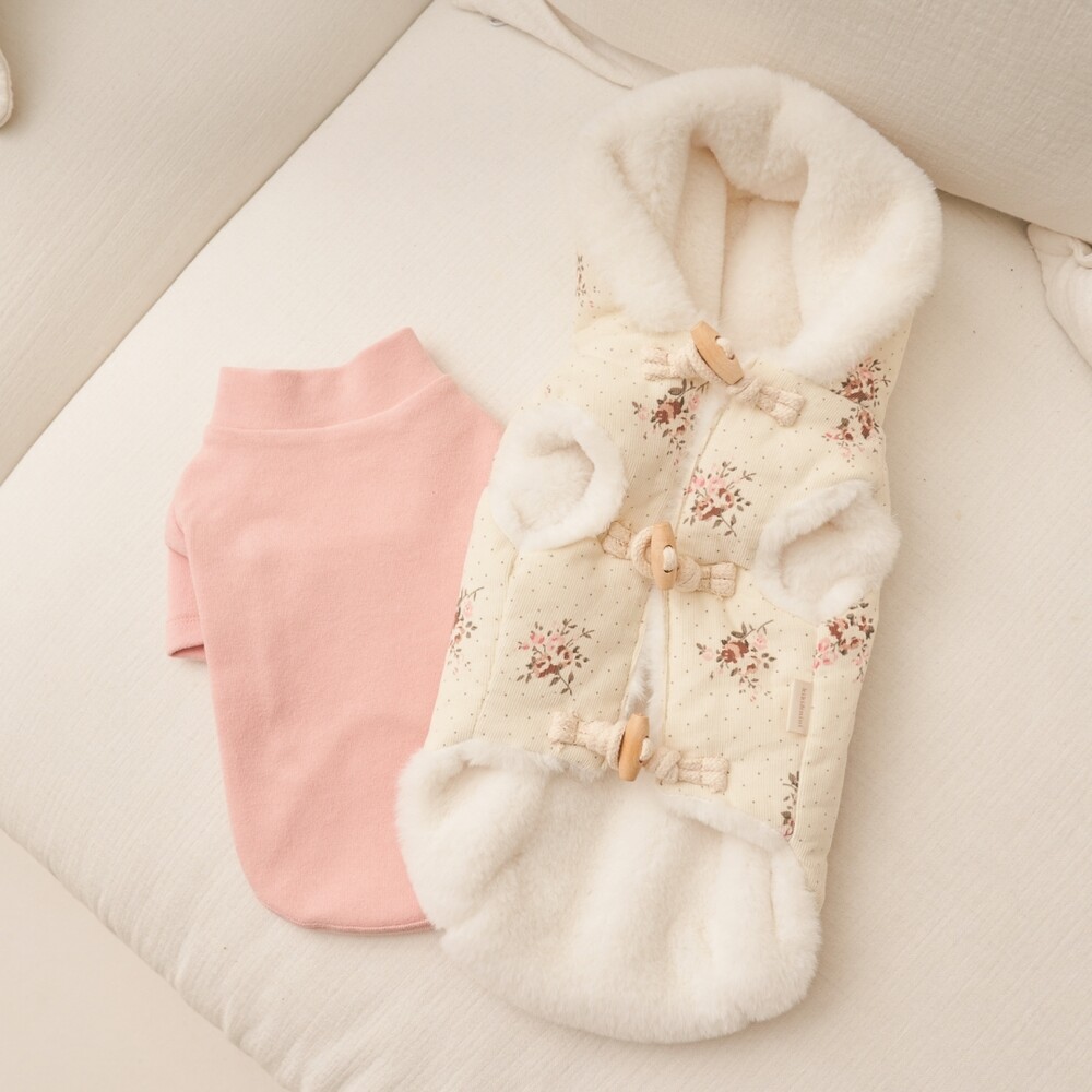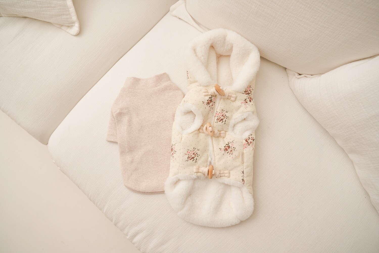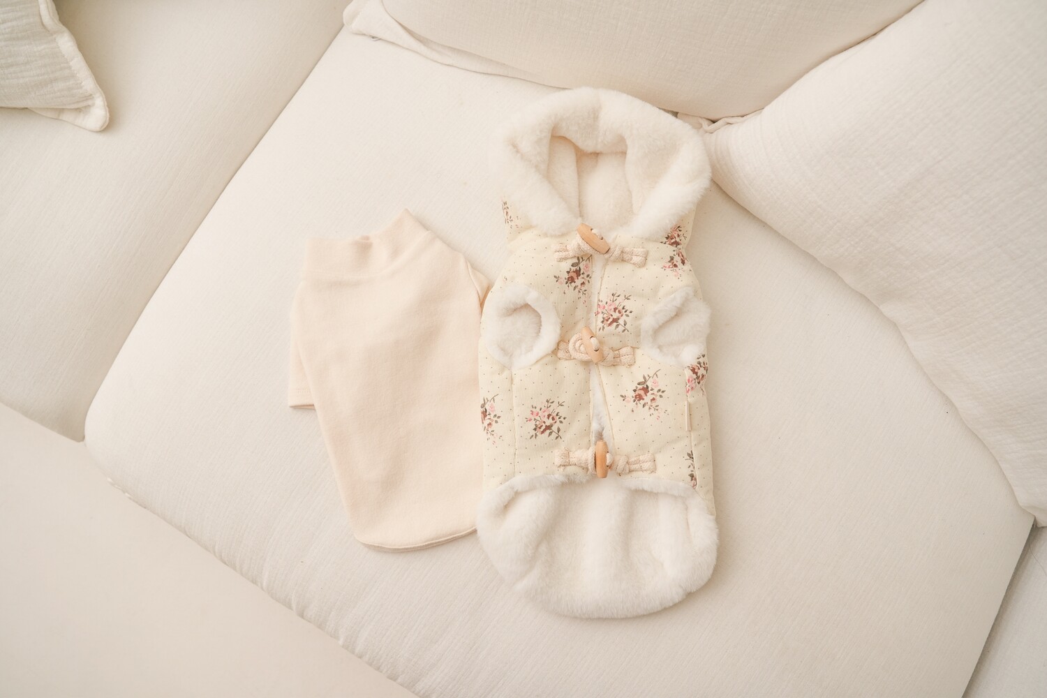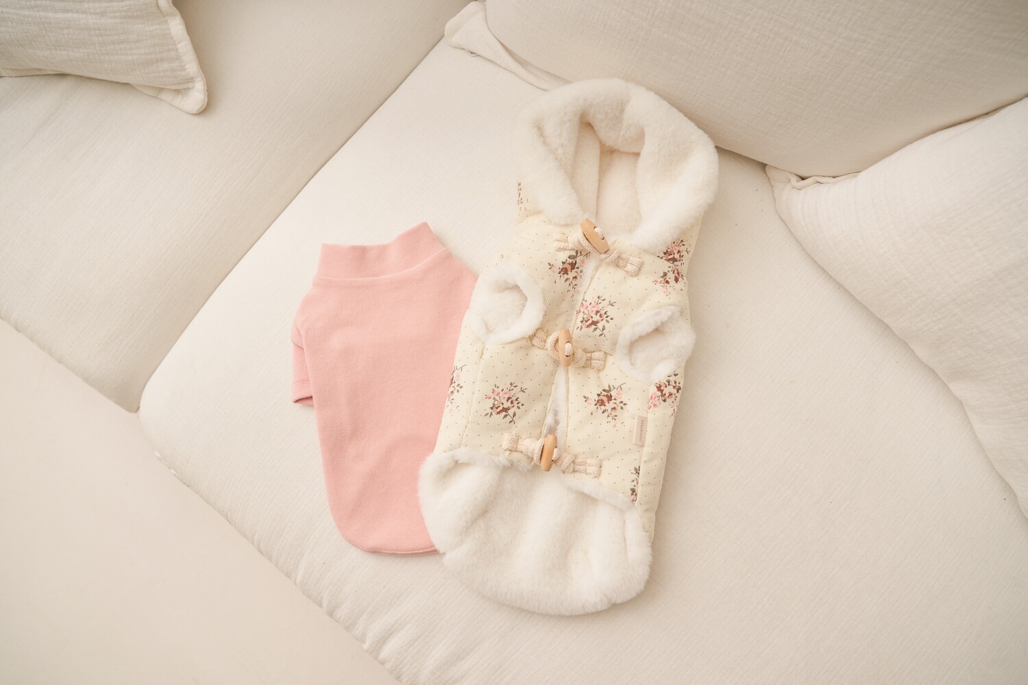 [ 베이직 하프 터틀넥(핑크) + 코코 더플 패딩(크림) ]