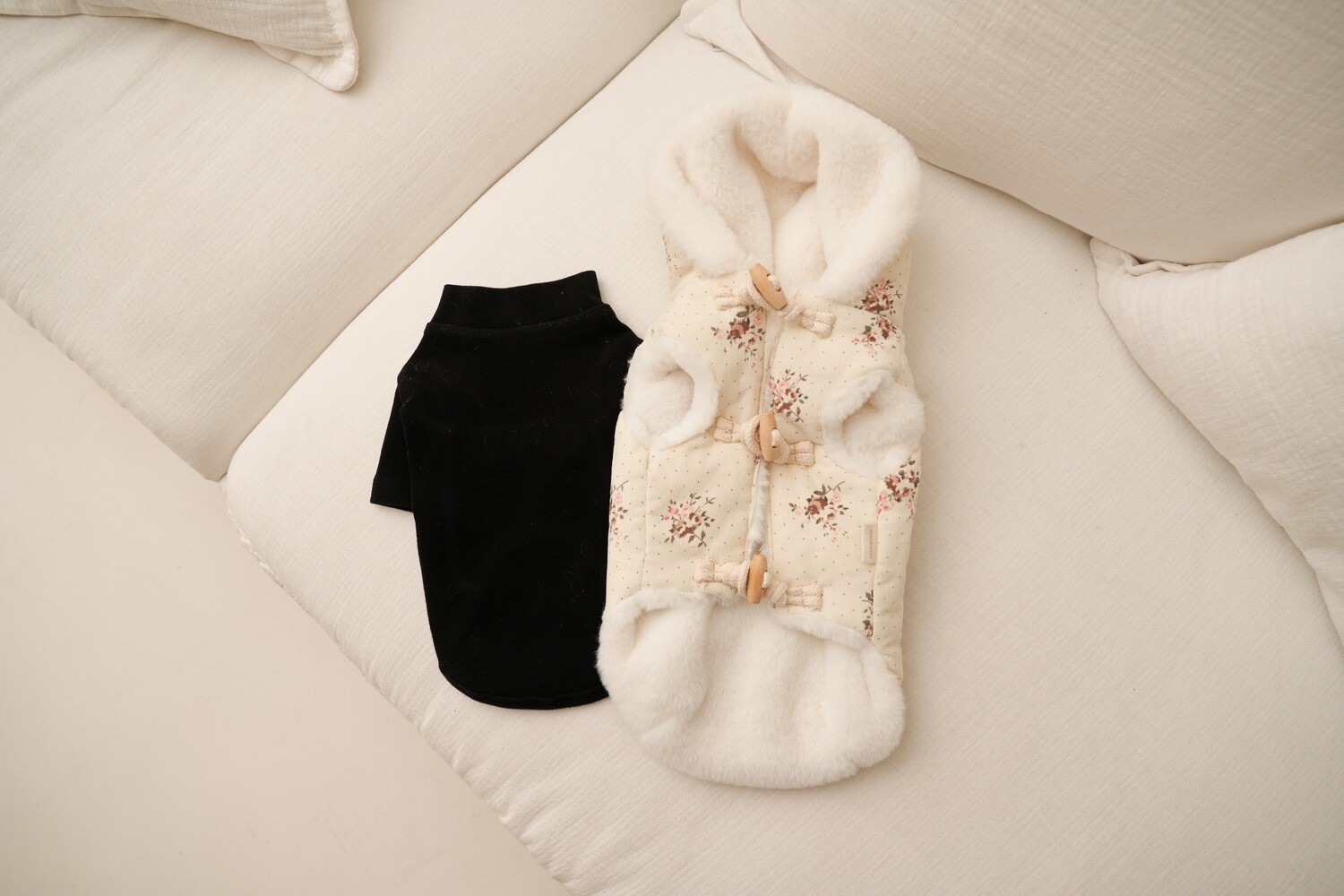 [ 베이직 하프 터틀넥(블랙) + 코코 더플 패딩(크림) ]