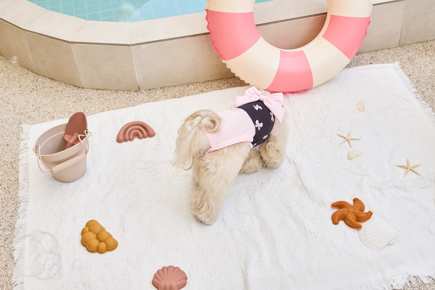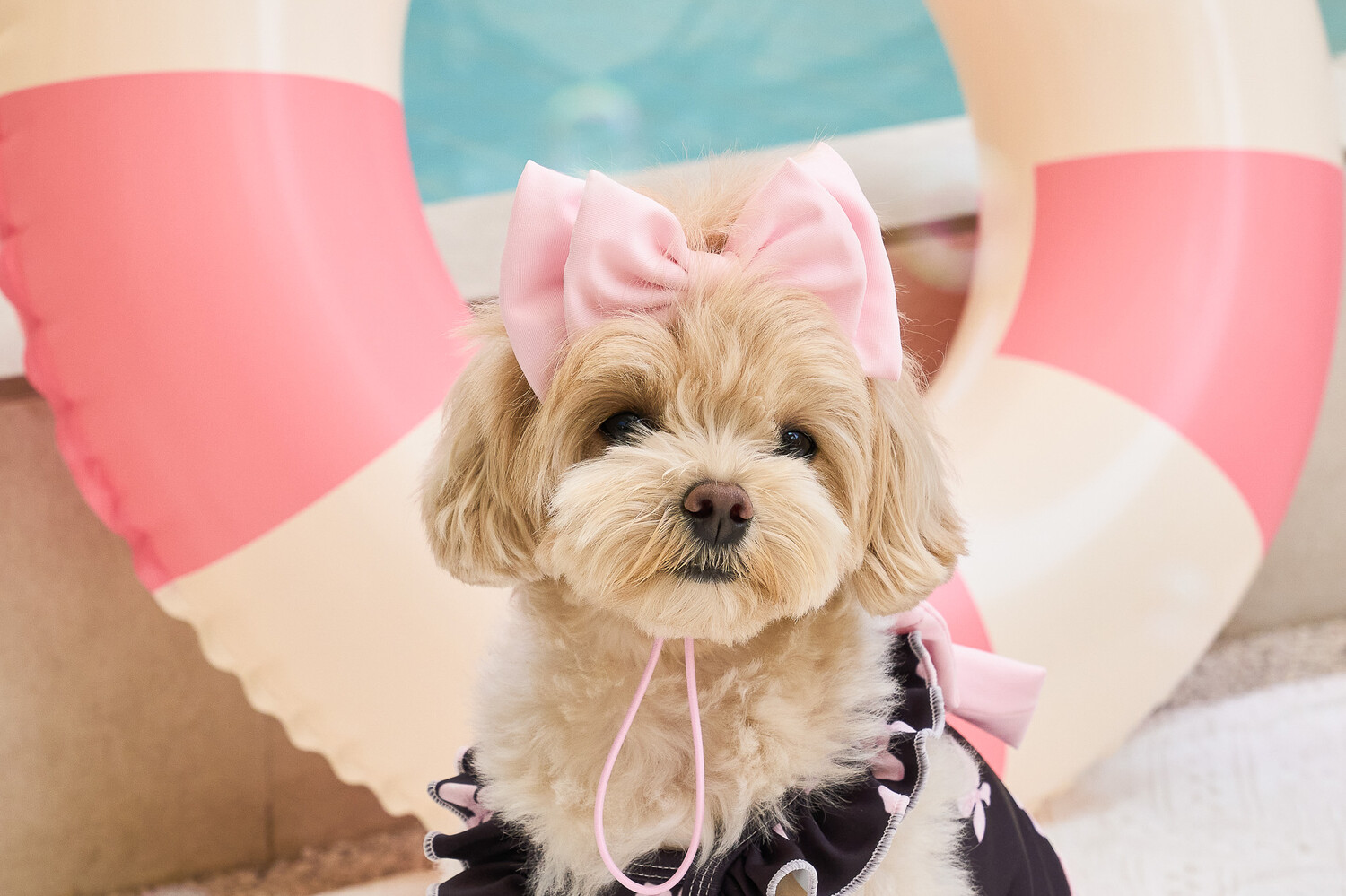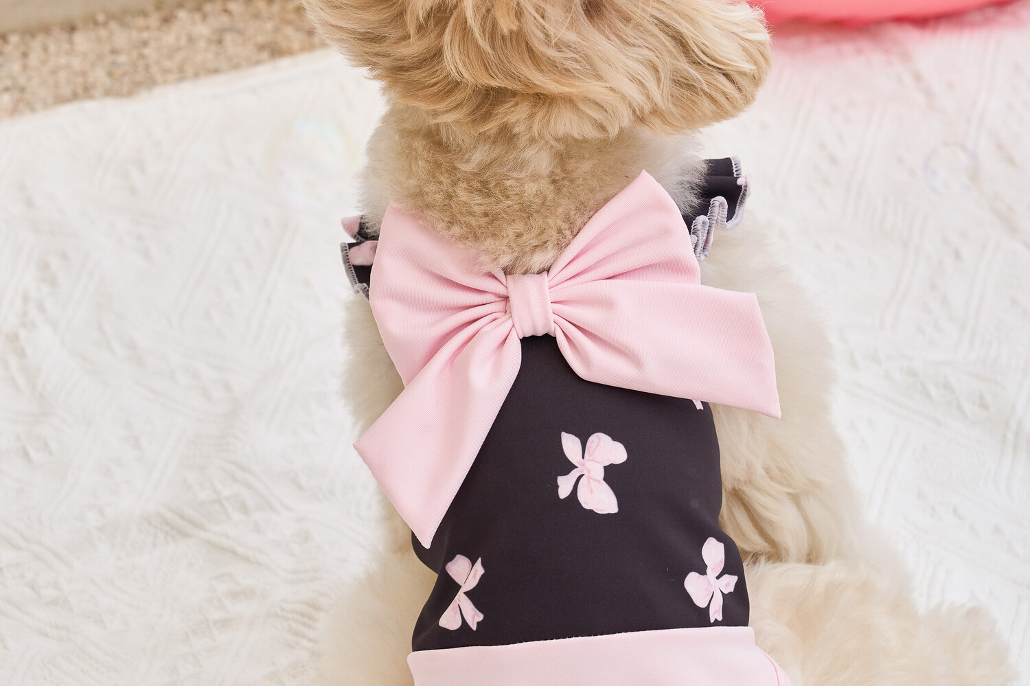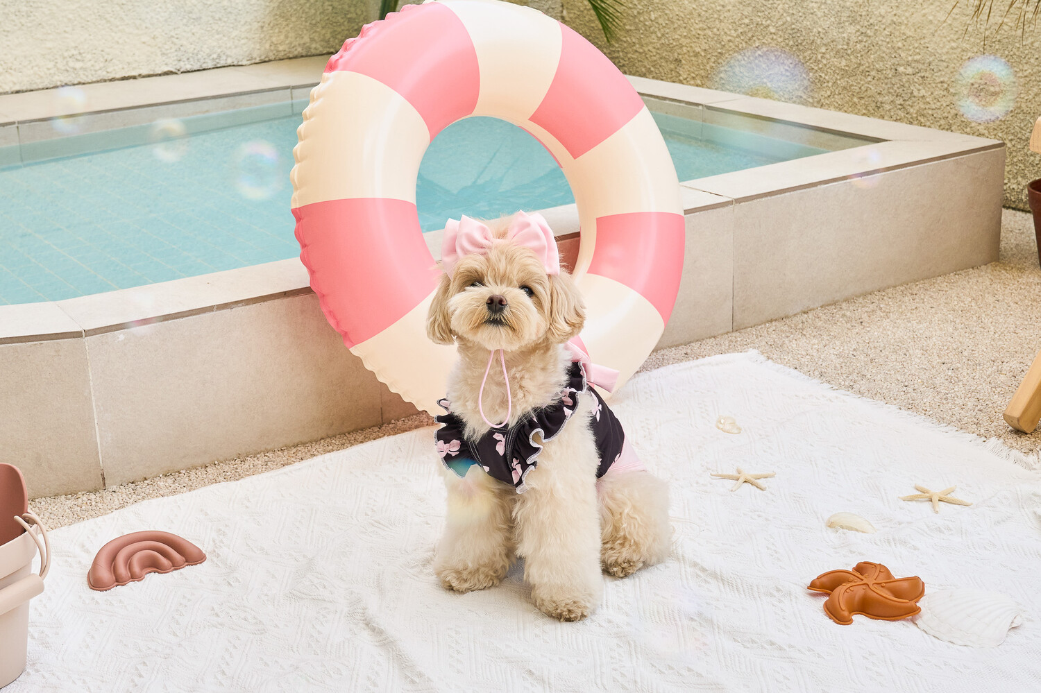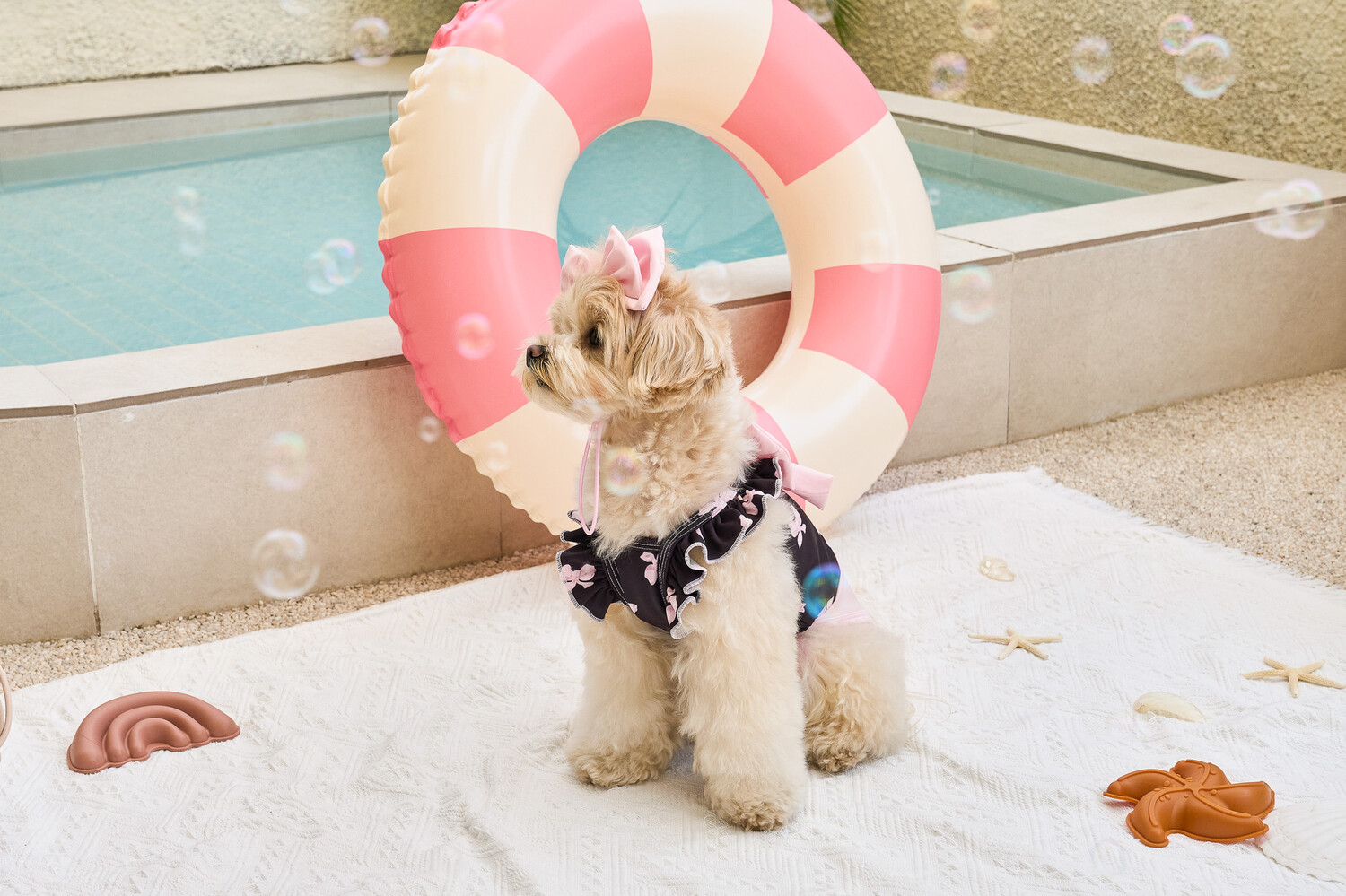 발랄하지만 현란하지 않은, 러블리한 무드의 수영복을 찾으셨다면 키키앤니니에서 첫 선보이는 ‘썸머 핑크 스윔수트’는 어떠신가요♥ 은은하면서 사랑스러운 리본 프린트와 빅 리본 디테일, 어깨&밑단에 사랑스럽게 잡힌 프릴 등 러블리한 무드를 더해주는 디테일과 핑크 컬러의 조합이 포인트인 제품입니다. 청순하고 러블리한 분위기를 자아내는 ‘화이트 핑크’ 세련되면서 힙한 분위기를 자아내는 ‘블랙 핑크’ 두 컬러로 만나보실 수 있으며, 같은 핑크지만 너무 다른 느낌이라 취향에 맞게, 아이들 모색에 맞게 입혀주시면 좋으실 것 같아요! 강아지 수영복에 다소 색다르게 느껴지실 수 있는 ‘블랙’ 컬러와 자칫 호불호가 갈릴 수 있는 ‘핑크’컬러를 전체 포인트 컬러로 사용하는 등 과감한 색감 사용 면에서 키앤니만의 특별함을 느끼실 거에요. 원피스&모노키니 2타입으로 제작되어, 남매룩 또는 친구들과 개플룩으로 맞춰 입히시기 좋으며, 보다 심플하고 군더더기 없는 디테일을 원하신다면 ‘모노키니’ 타입을 추천드립니다. 함께 코디할 수 있는 리본 헤어밴드&스윔 햇도 준비했습니다. 다양한 아이템과 함께 한다면 러블리함이 극대화되겠죠?