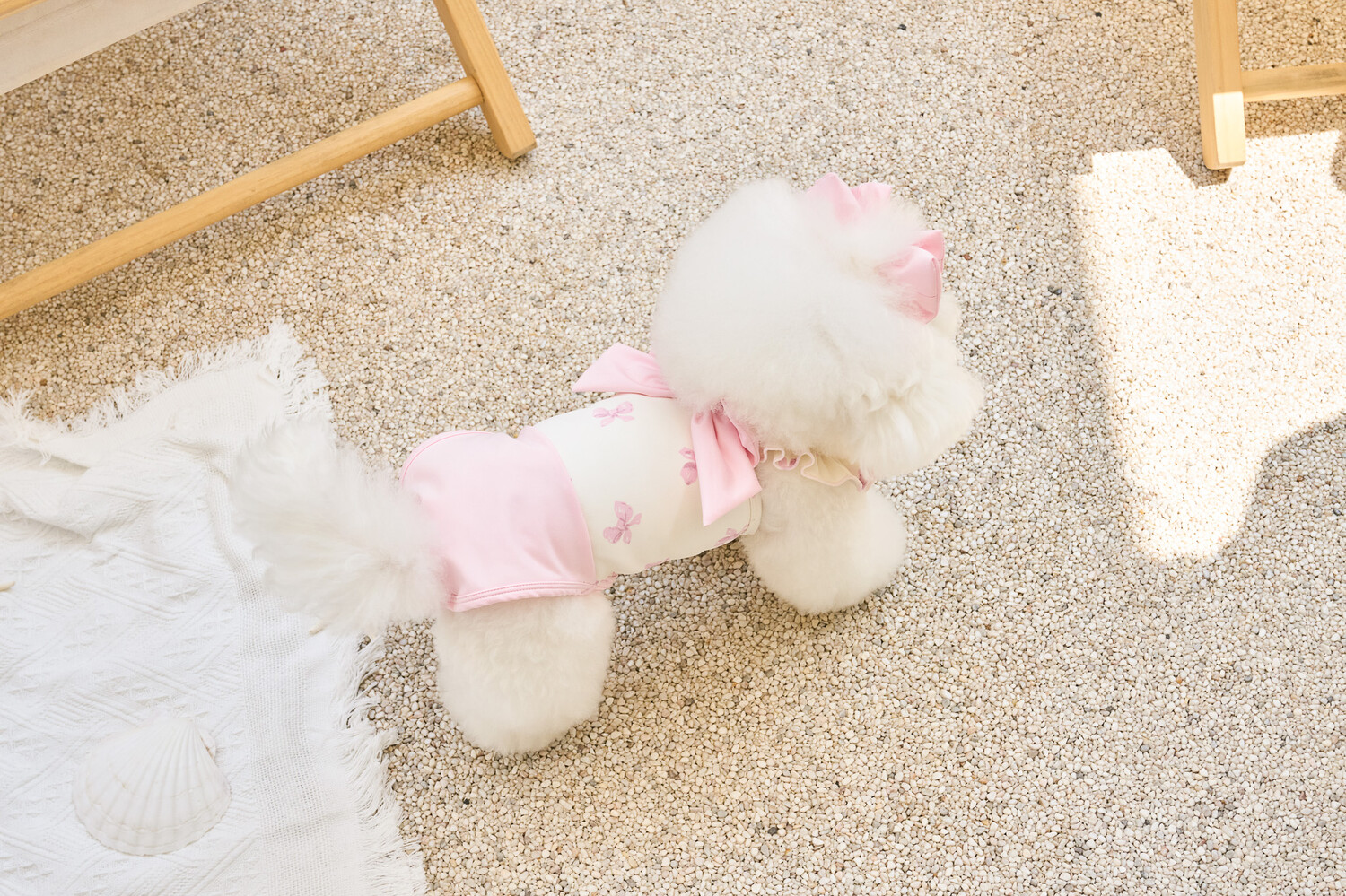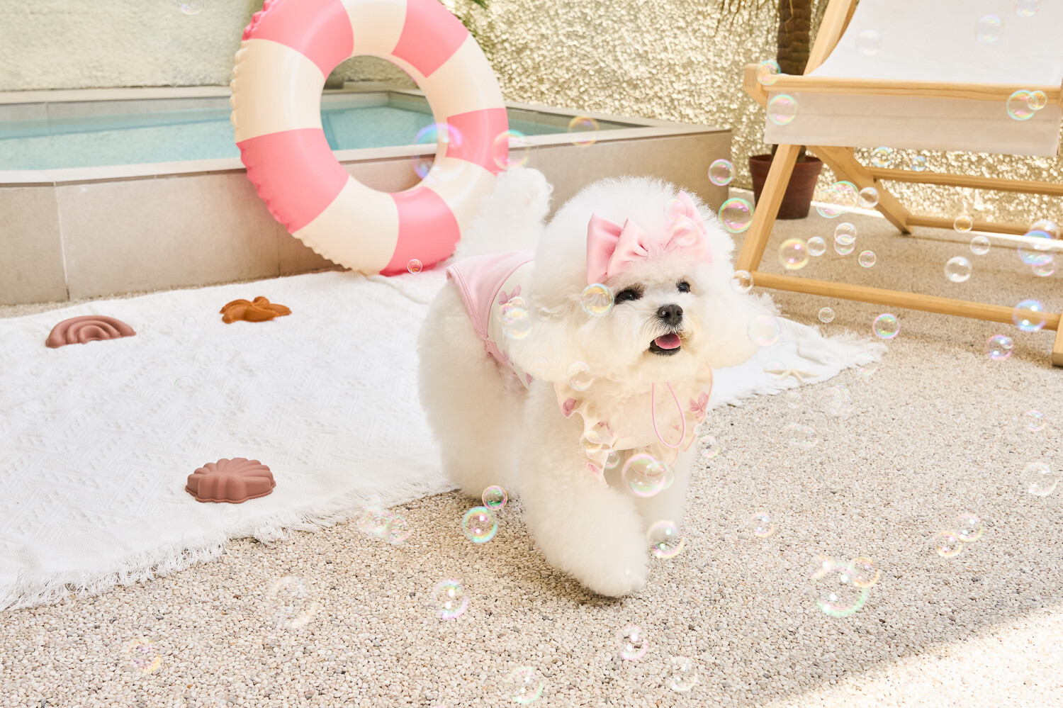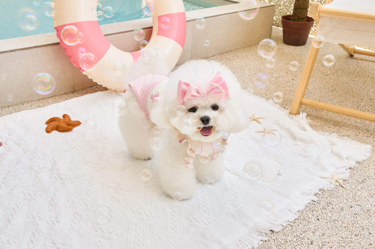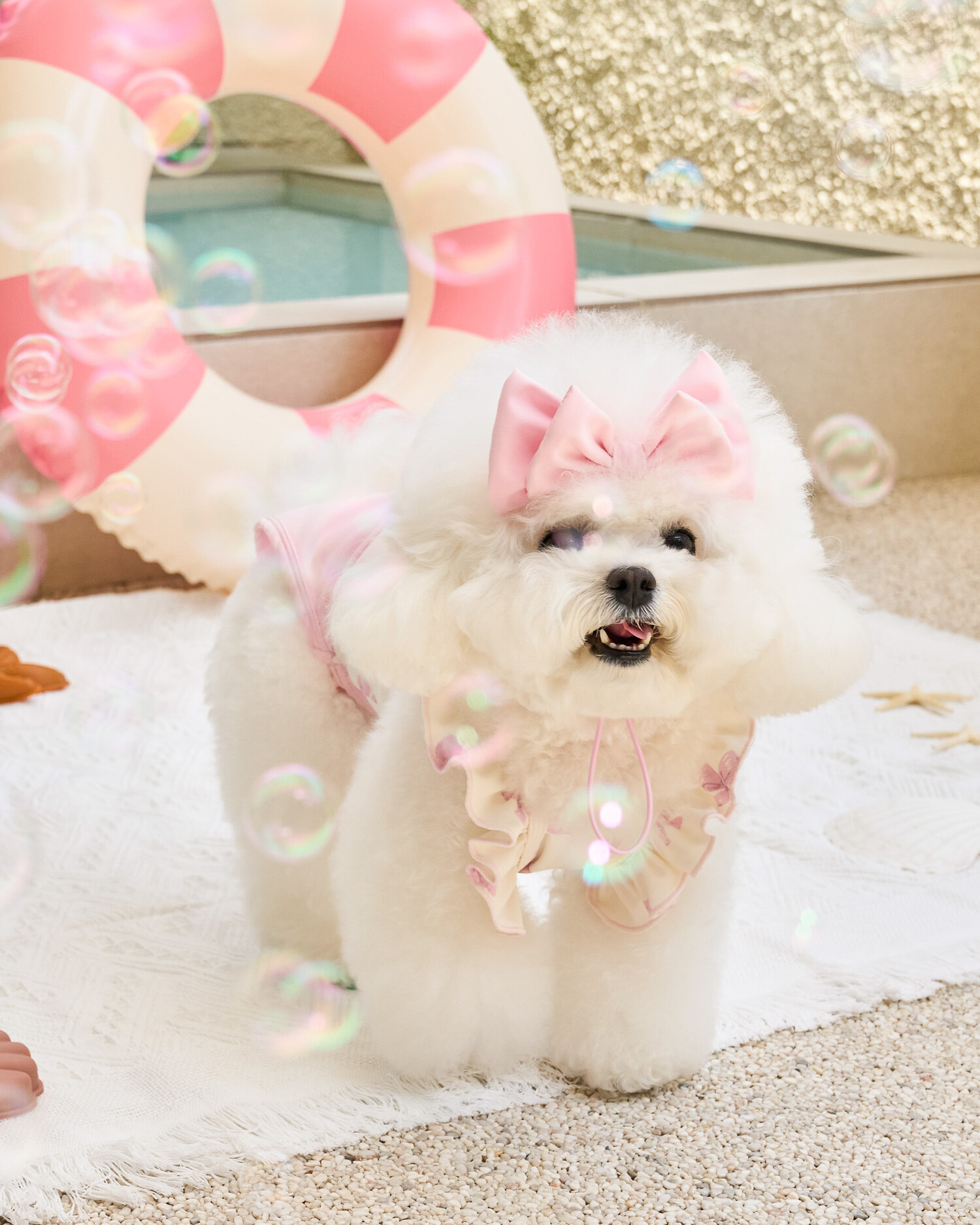 발랄하지만 현란하지 않은, 러블리한 무드의 수영복을 찾으셨다면 키키앤니니에서 첫 선보이는 ‘썸머 핑크 스윔수트’는 어떠신가요♥ 은은하면서 사랑스러운 리본 프린트와 빅 리본 디테일, 어깨&밑단에 사랑스럽게 잡힌 프릴 등 러블리한 무드를 더해주는 디테일과 핑크 컬러의 조합이 포인트인 제품입니다. 청순하고 러블리한 분위기를 자아내는 ‘화이트 핑크’ 세련되면서 힙한 분위기를 자아내는 ‘블랙 핑크’ 두 컬러로 만나보실 수 있으며, 같은 핑크지만 너무 다른 느낌이라 취향에 맞게, 아이들 모색에 맞게 입혀주시면 좋으실 것 같아요! 강아지 수영복에 다소 색다르게 느껴지실 수 있는 ‘블랙’ 컬러와 자칫 호불호가 갈릴 수 있는 ‘핑크’컬러를 전체 포인트 컬러로 사용하는 등 과감한 색감 사용 면에서 키앤니만의 특별함을 느끼실 거에요. 원피스&모노키니 2타입으로 제작되어, 남매룩 또는 친구들과 개플룩으로 맞춰 입히시기 좋으며, 보다 심플하고 군더더기 없는 디테일을 원하신다면 ‘모노키니’ 타입을 추천드립니다. 함께 코디할 수 있는 리본 헤어밴드&스윔 햇도 준비했습니다. 다양한 아이템과 함께 한다면 러블리함이 극대화되겠죠?