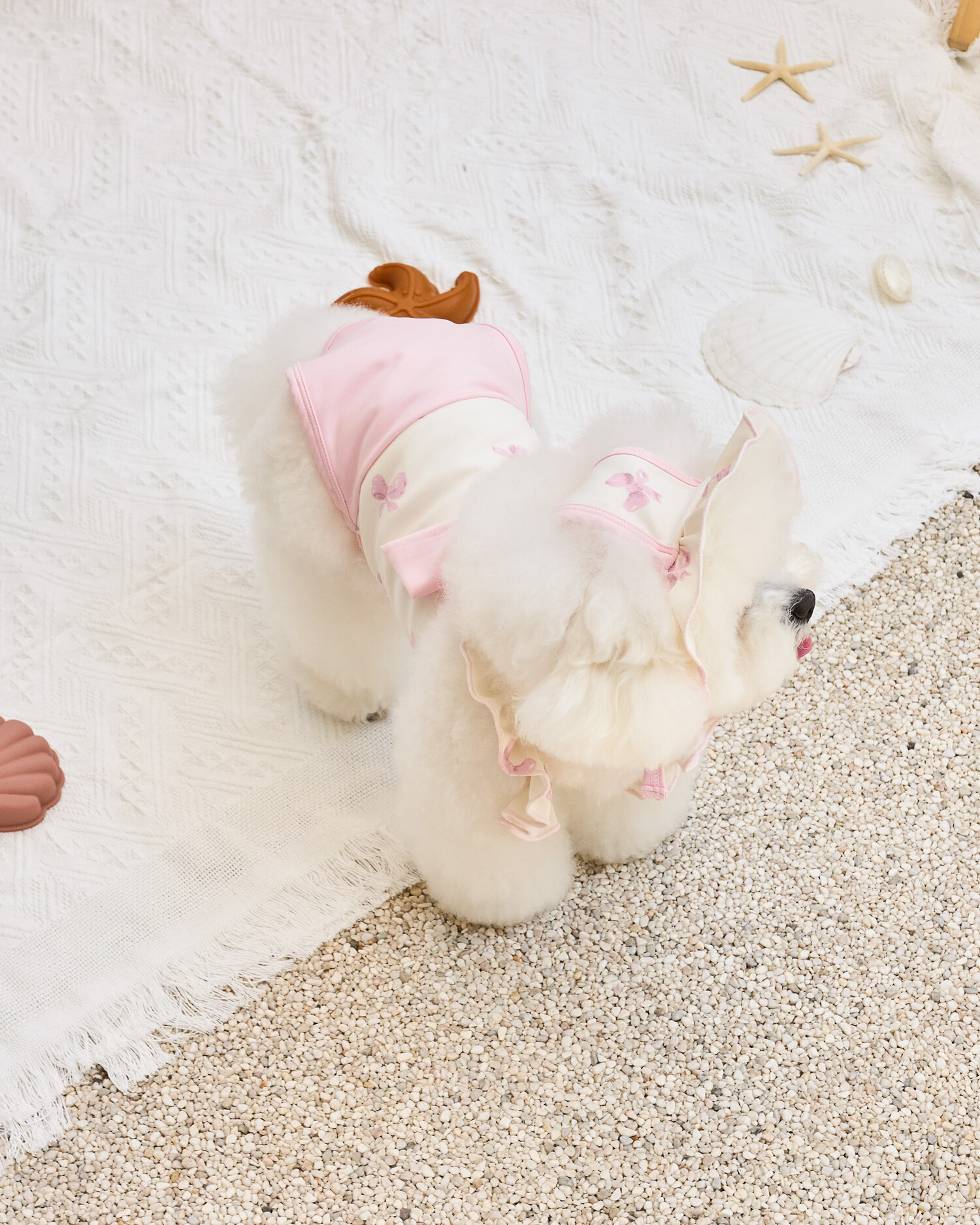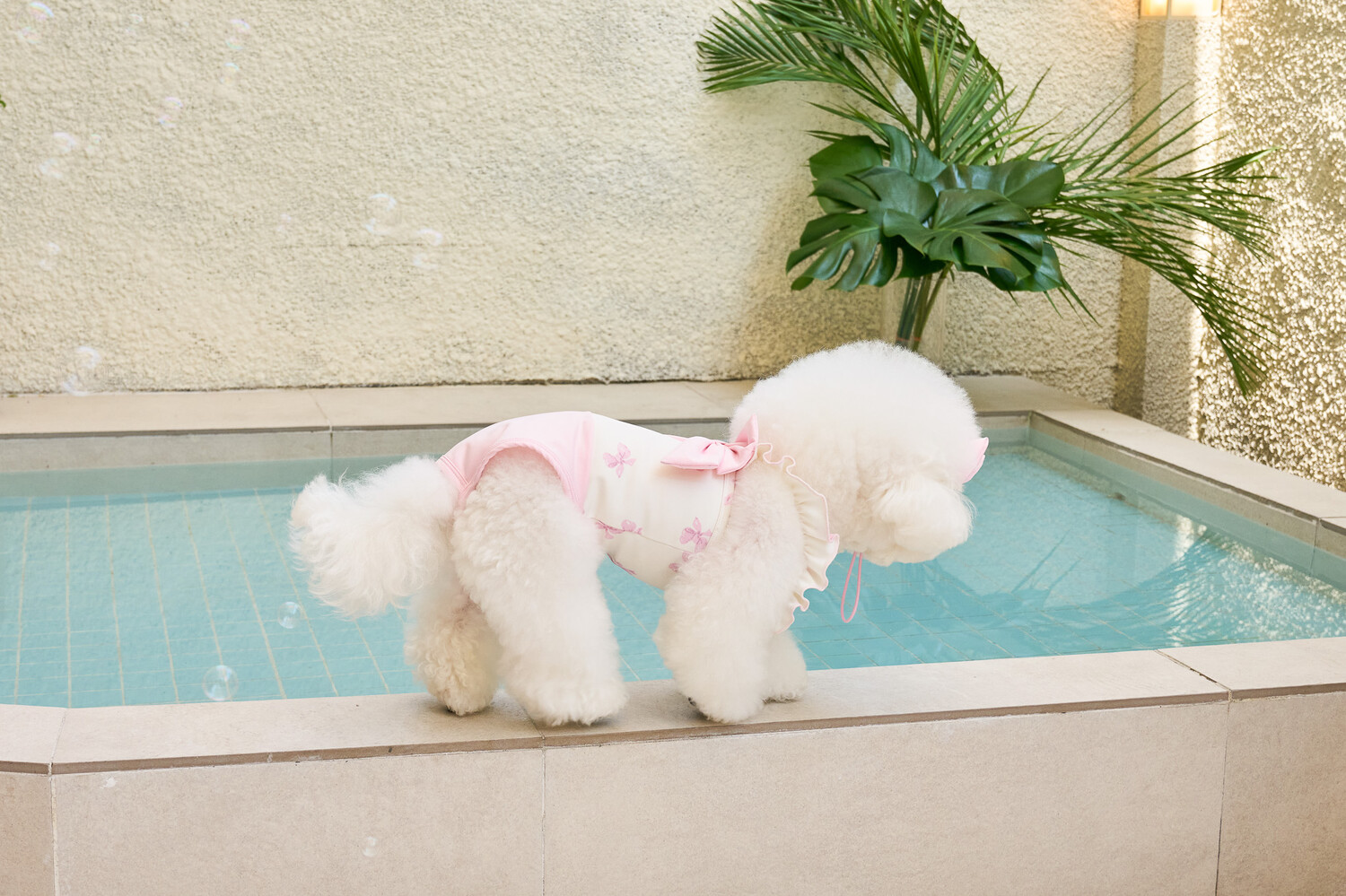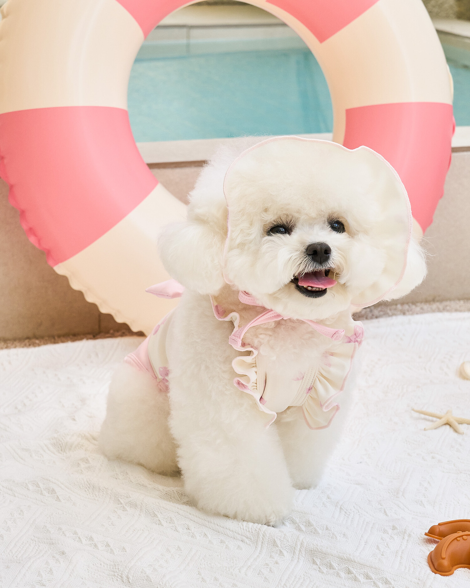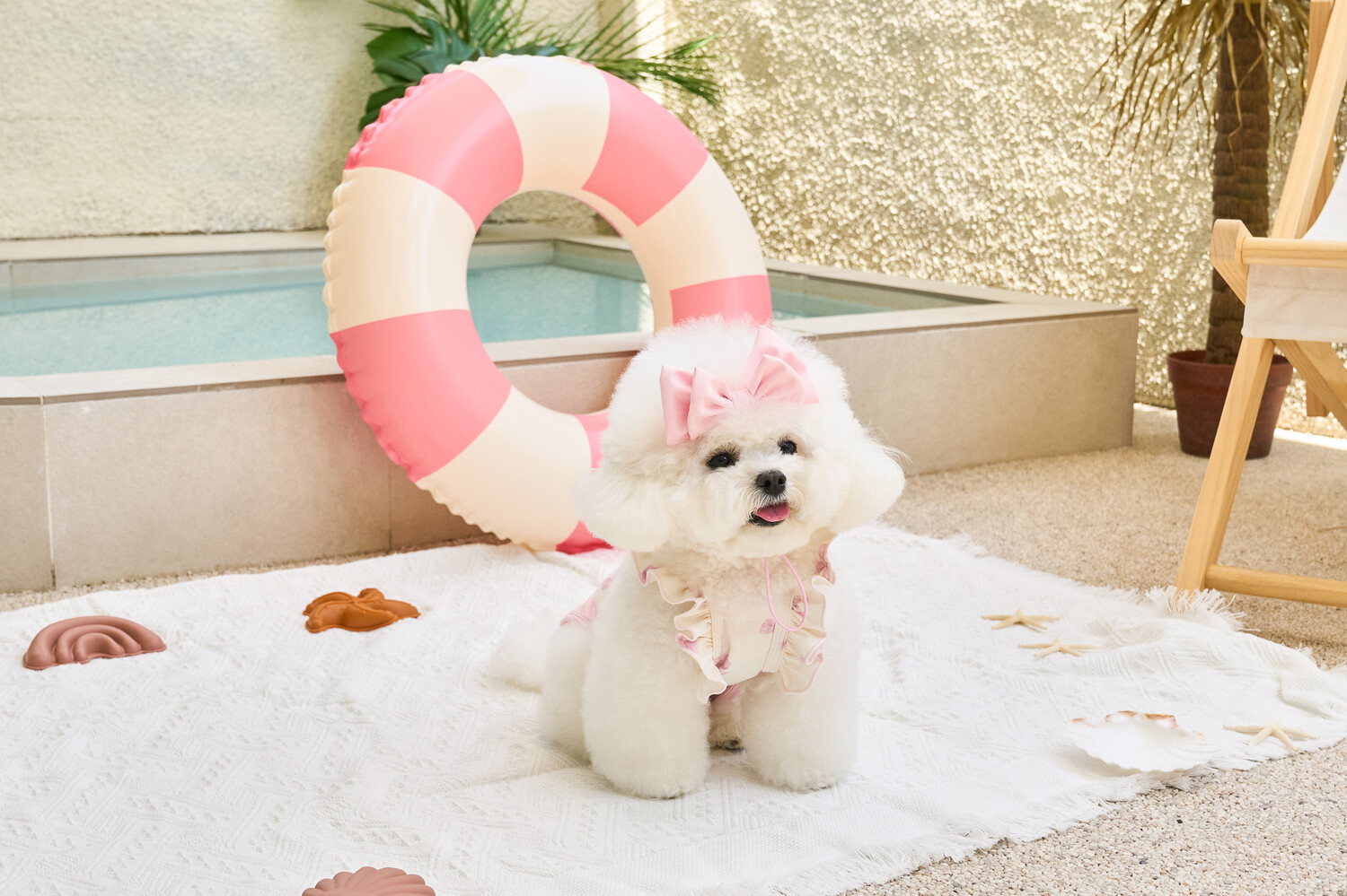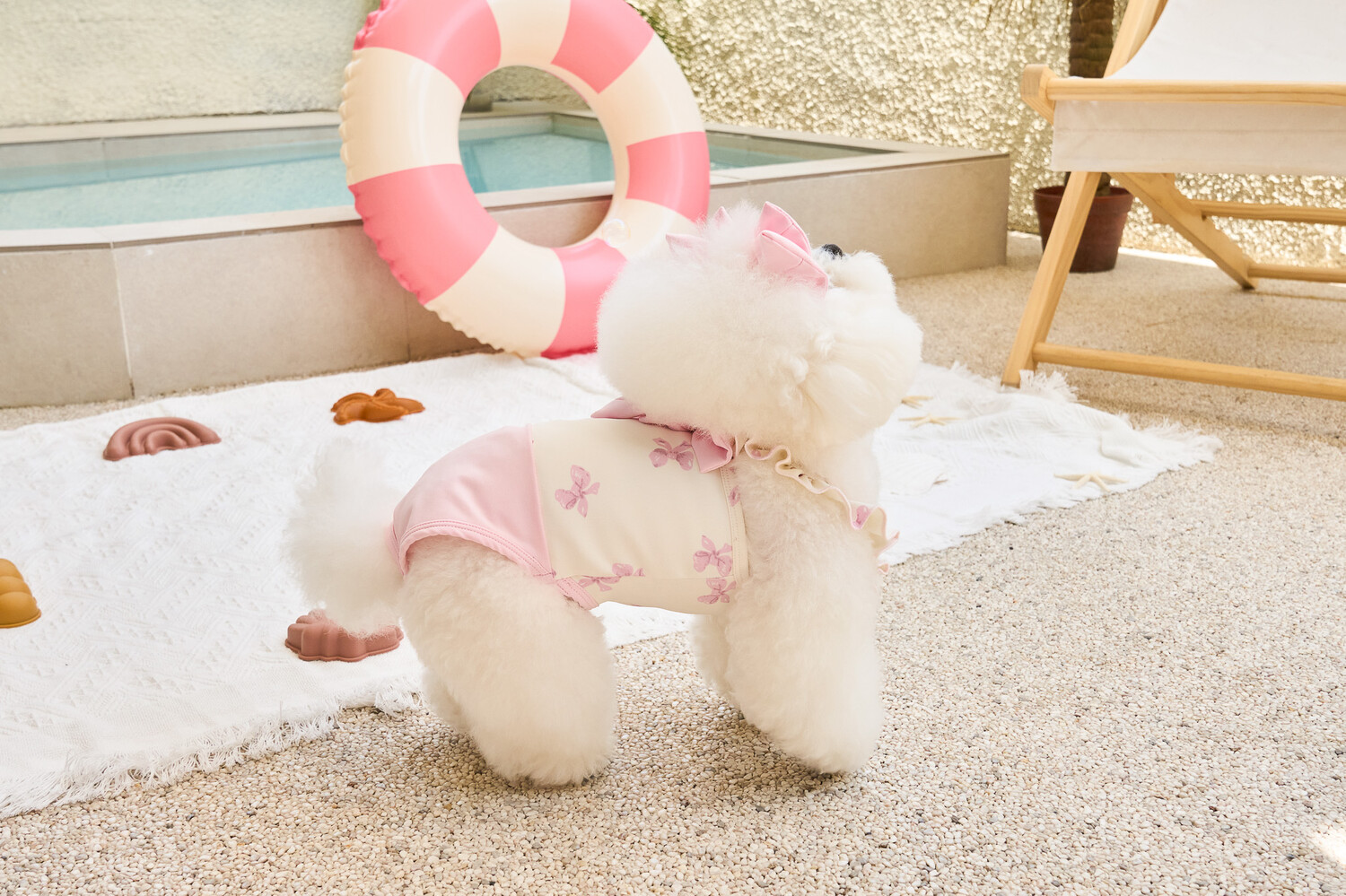 발랄하지만 현란하지 않은, 러블리한 무드의 수영복을 찾으셨다면 키키앤니니에서 첫 선보이는 ‘썸머 핑크 스윔수트’는 어떠신가요♥ 은은하면서 사랑스러운 리본 프린트와 빅 리본 디테일, 어깨&밑단에 사랑스럽게 잡힌 프릴 등 러블리한 무드를 더해주는 디테일과 핑크 컬러의 조합이 포인트인 제품입니다. 청순하고 러블리한 분위기를 자아내는 ‘화이트 핑크’ 세련되면서 힙한 분위기를 자아내는 ‘블랙 핑크’ 두 컬러로 만나보실 수 있으며, 같은 핑크지만 너무 다른 느낌이라 취향에 맞게, 아이들 모색에 맞게 입혀주시면 좋으실 것 같아요! 강아지 수영복에 다소 색다르게 느껴지실 수 있는 ‘블랙’ 컬러와 자칫 호불호가 갈릴 수 있는 ‘핑크’컬러를 전체 포인트 컬러로 사용하는 등 과감한 색감 사용 면에서 키앤니만의 특별함을 느끼실 거에요. 원피스&모노키니 2타입으로 제작되어, 남매룩 또는 친구들과 개플룩으로 맞춰 입히시기 좋으며, 보다 심플하고 군더더기 없는 디테일을 원하신다면 ‘모노키니’ 타입을 추천드립니다. 함께 코디할 수 있는 리본 헤어밴드&스윔 햇도 준비했습니다. 다양한 아이템과 함께 한다면 러블리함이 극대화되겠죠?