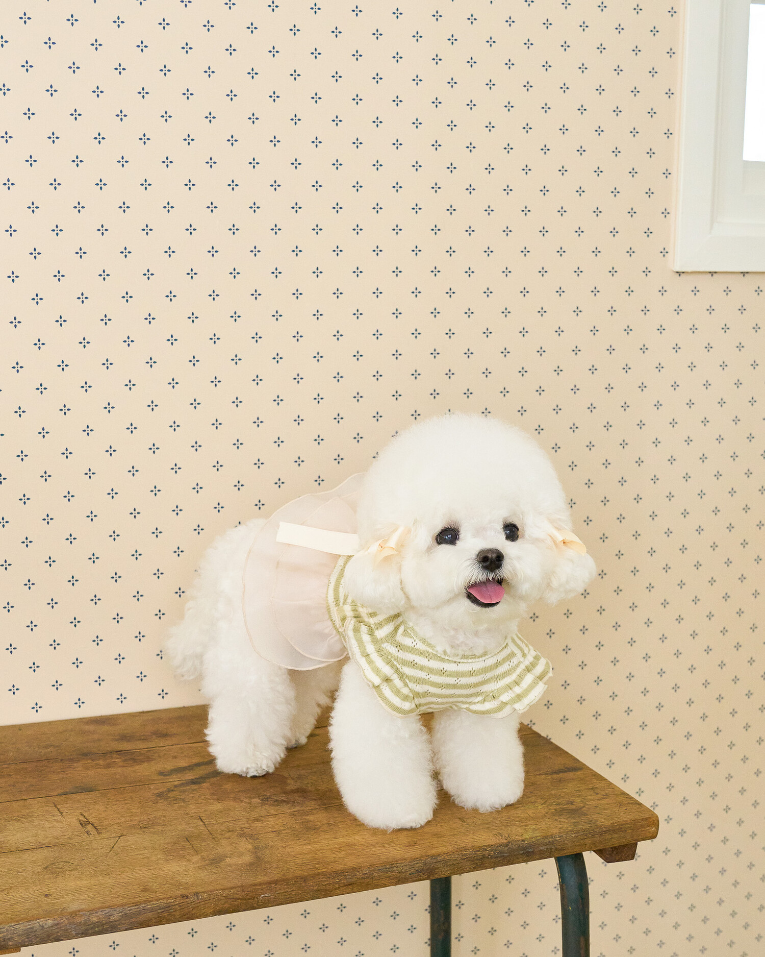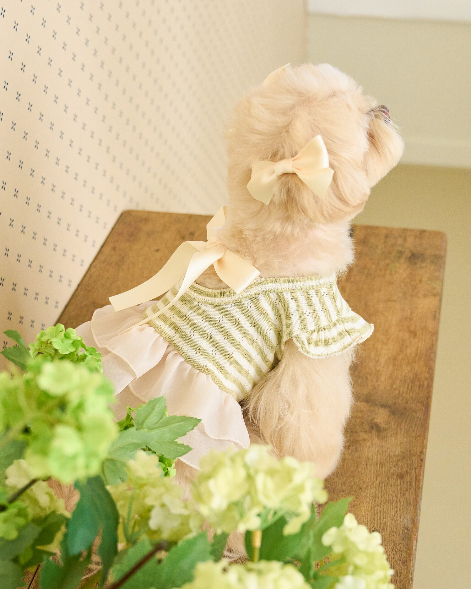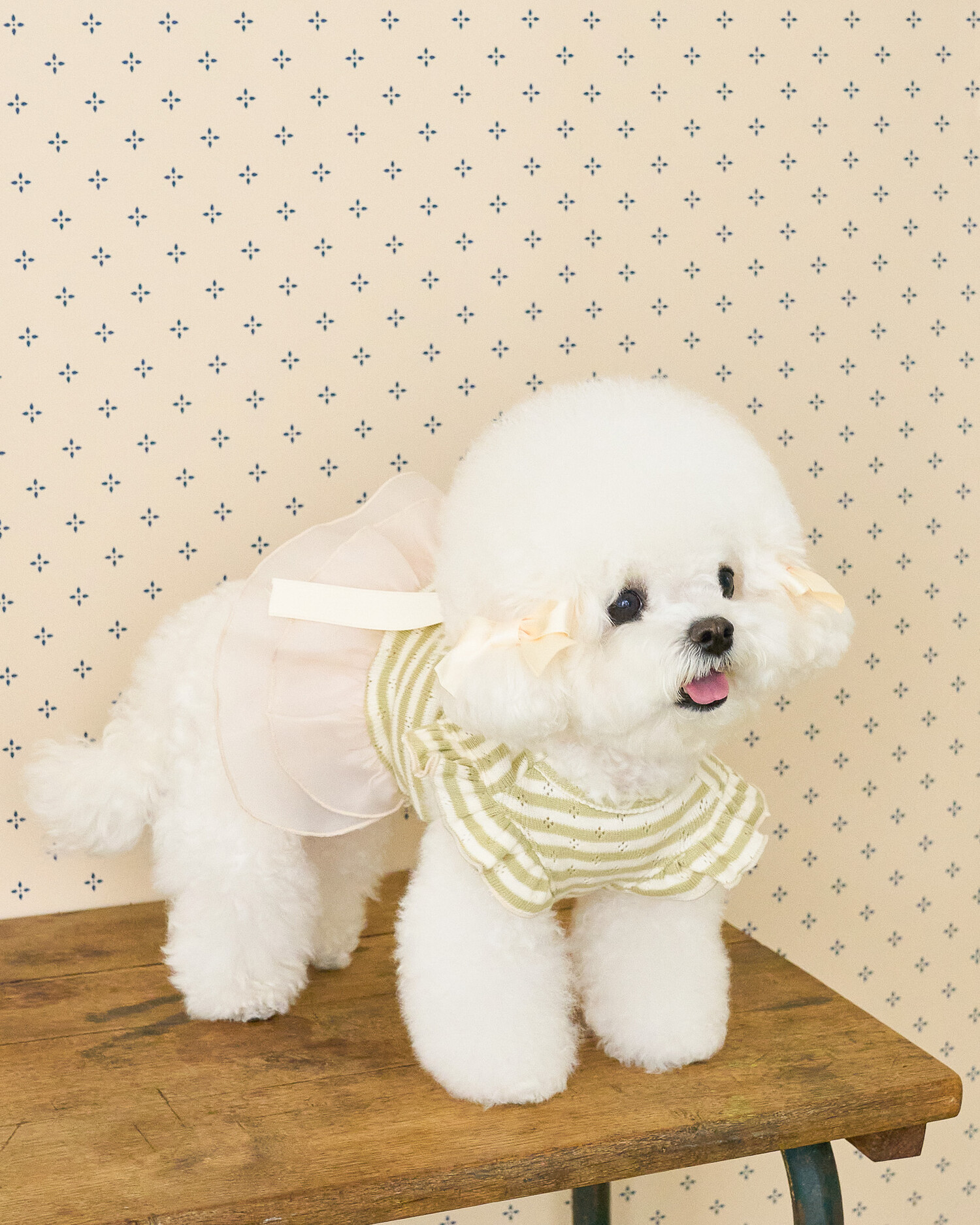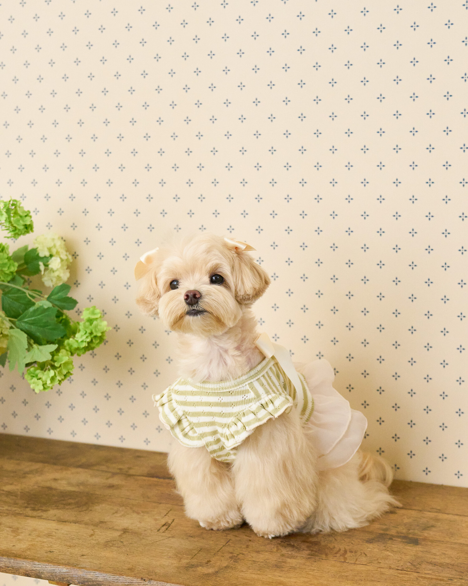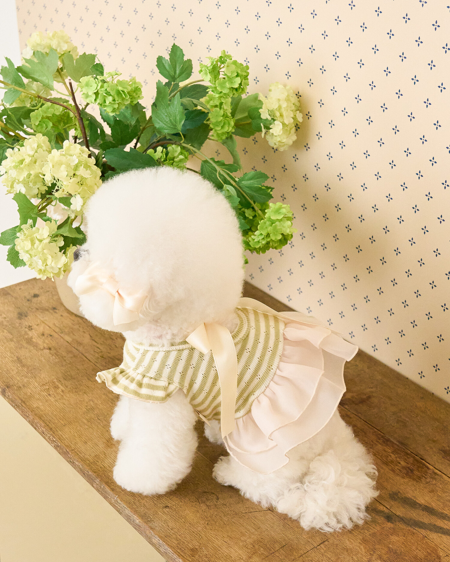 아일렛 원단의 빈티지하고 여리여리한 무드와, 오간자 튜튜 스커트,리본 포인트로 사랑스러운 무드를 가득 담았습니다.