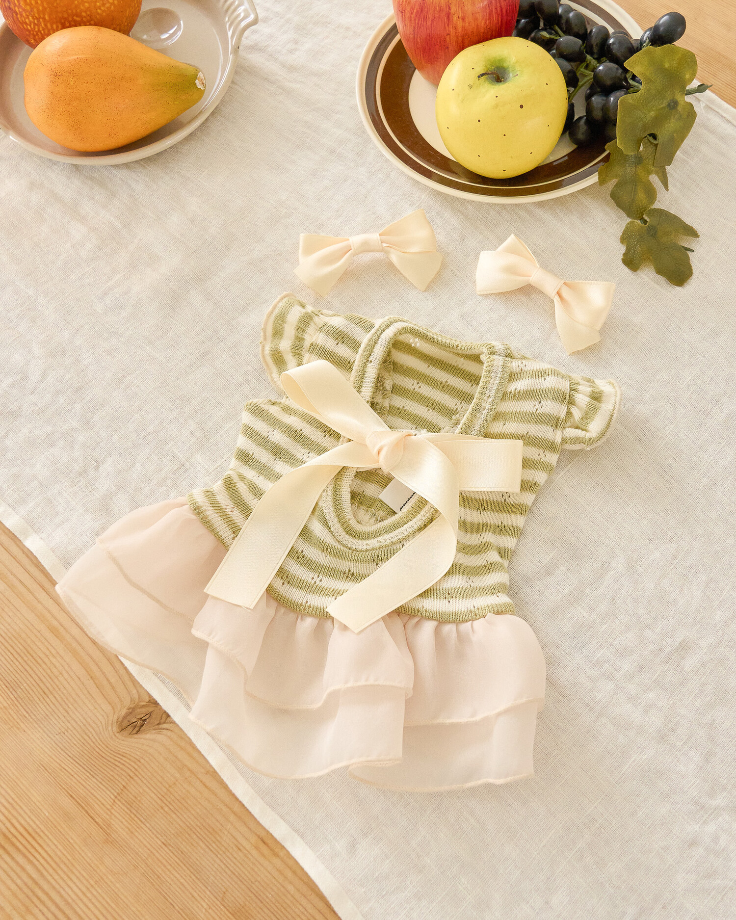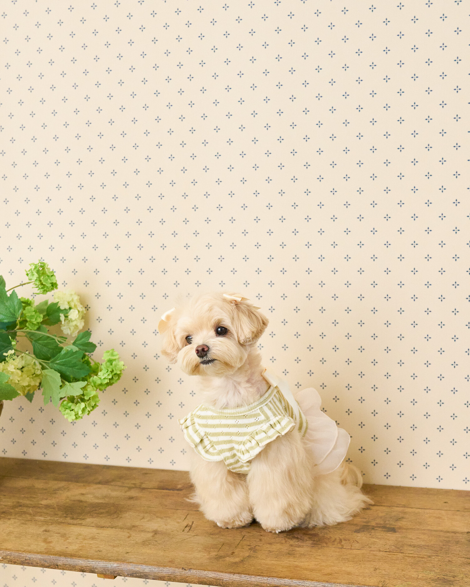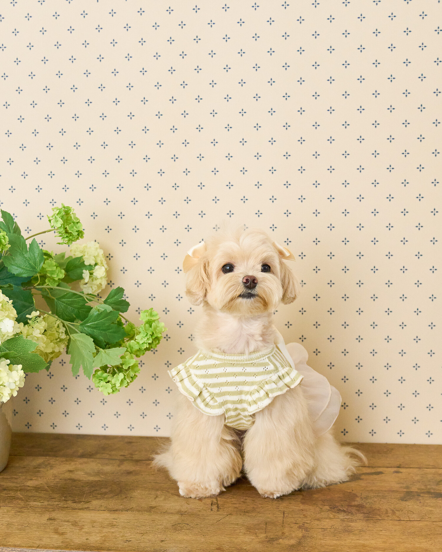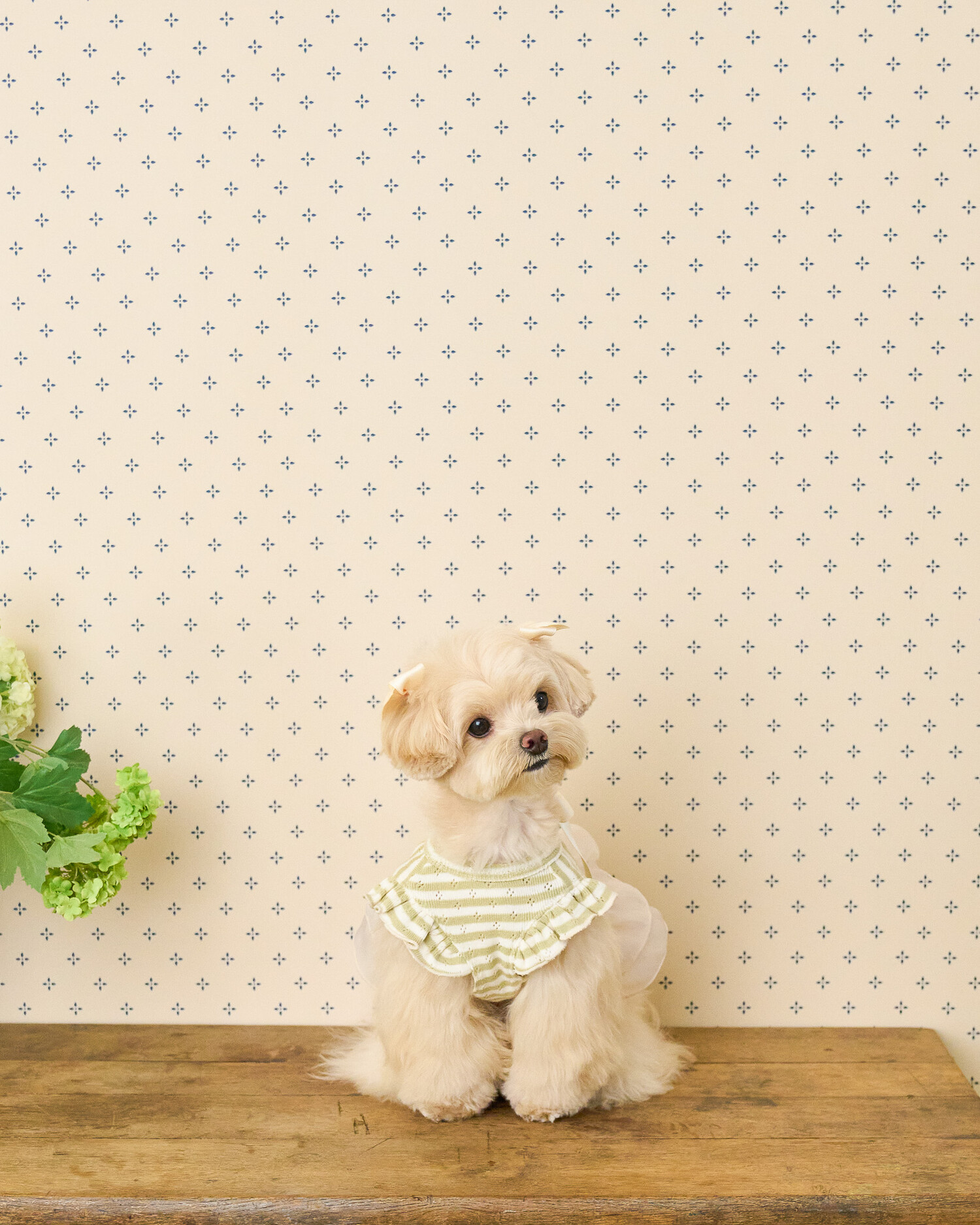 아일렛 원단의 빈티지하고 여리여리한 무드와, 오간자 튜튜 스커트,리본 포인트로 사랑스러운 무드를 가득 담았습니다.