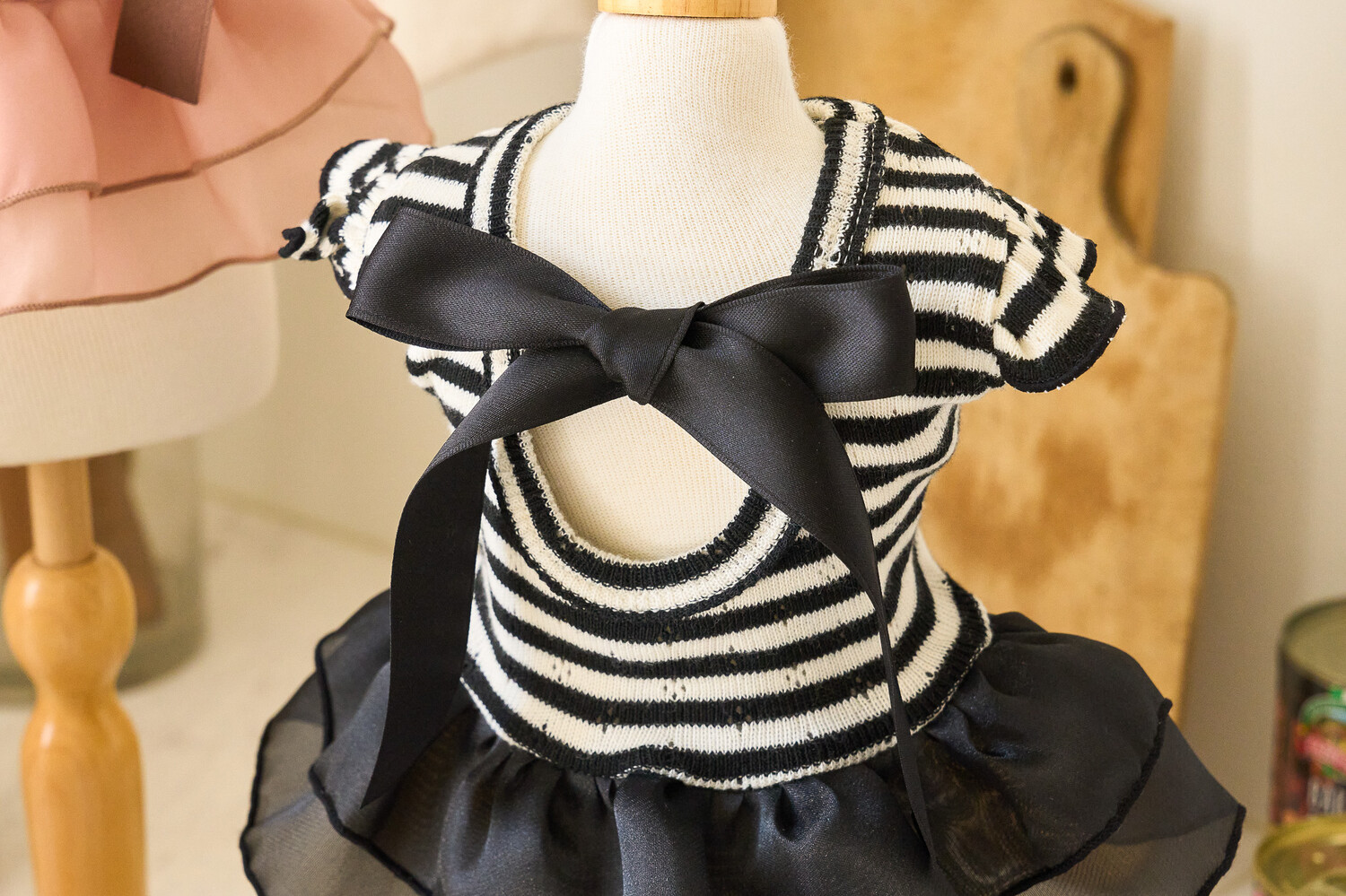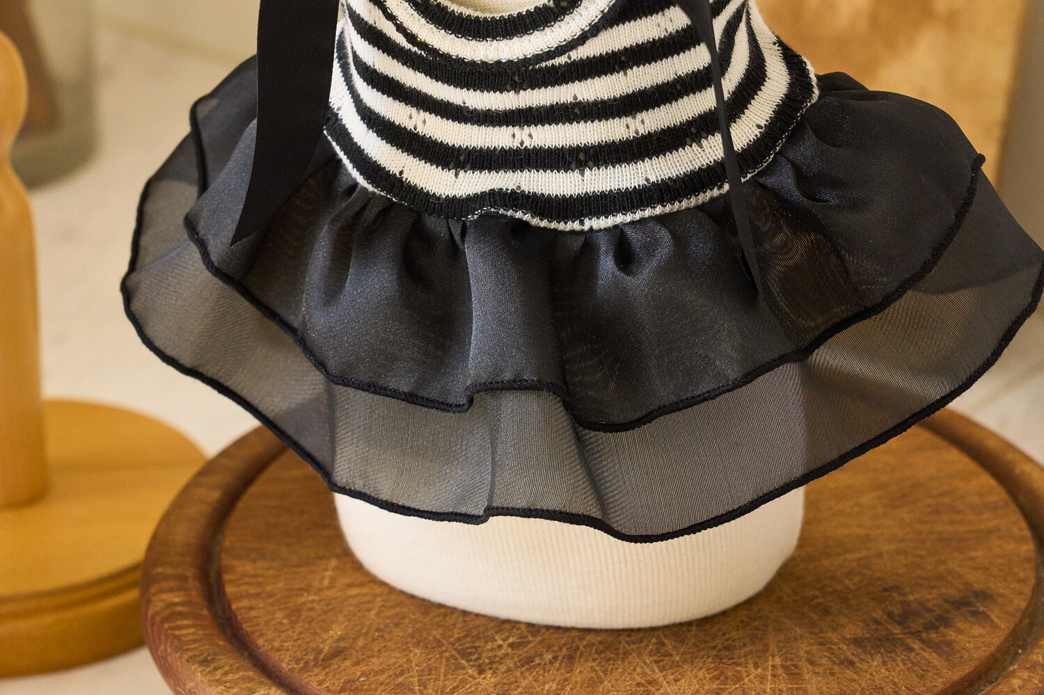 아일렛 원단의 빈티지하고 여리여리한 무드와, 오간자 튜튜 스커트,리본 포인트로 사랑스러운 무드를 가득 담았습니다.