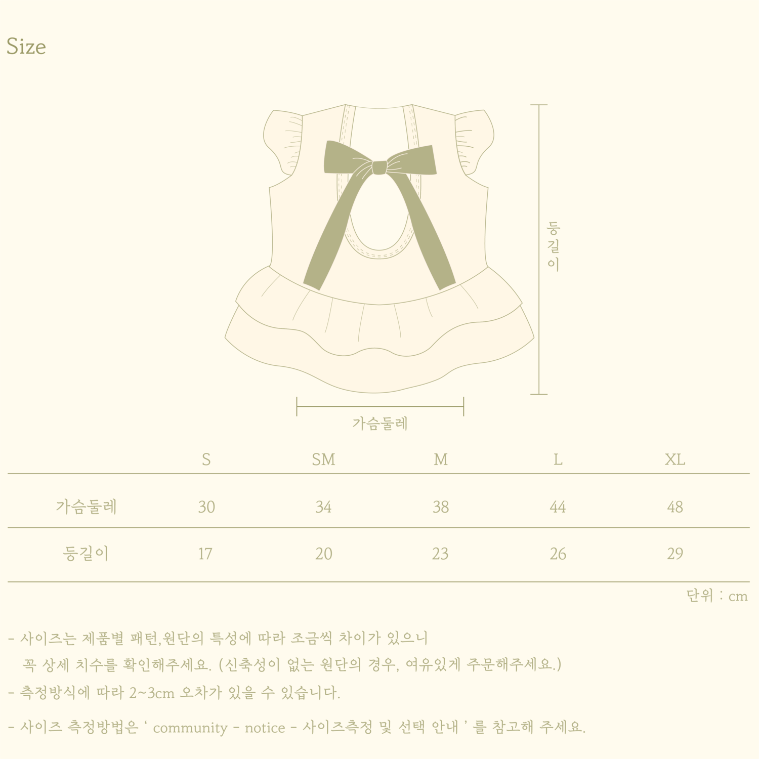 [사이즈 팁] 신축성 있는 원단이나, 쫀쫀한 소재는 아닙니다. 딱맞게 입히시고 싶으시거나, 사이즈가 중간에 걸쳐져 고민인 친구들은 한 사이즈 ‘작게’ 입혀주시는 것을 추천드립니다.