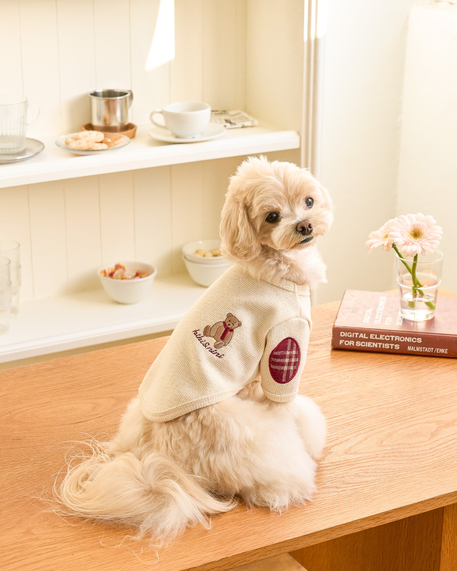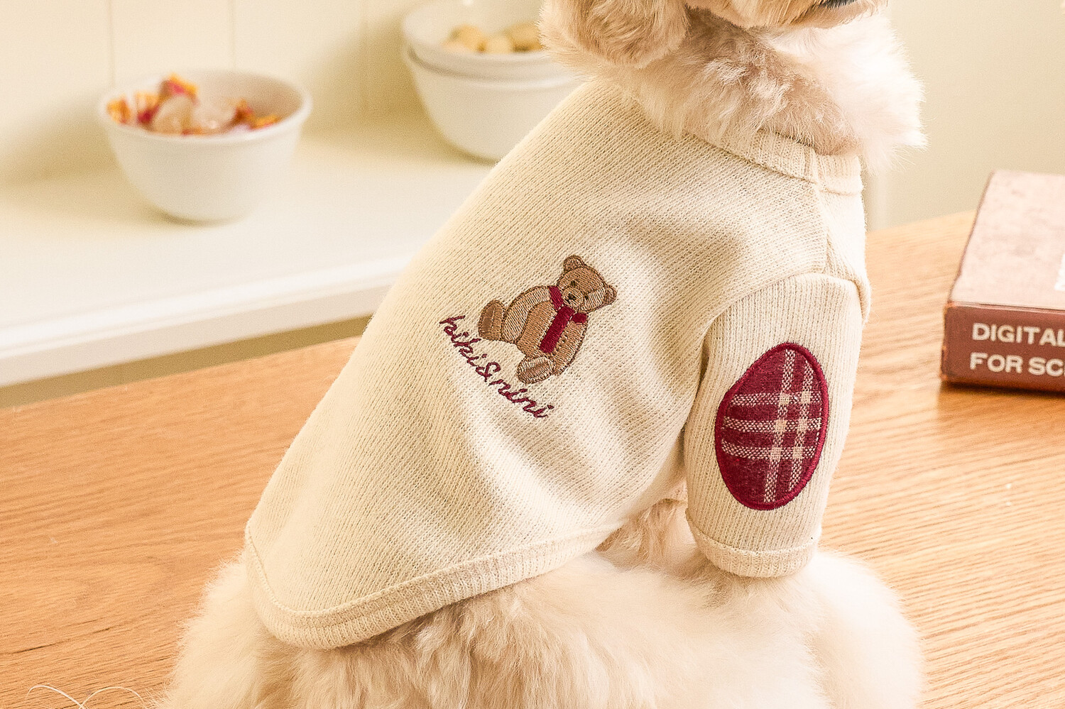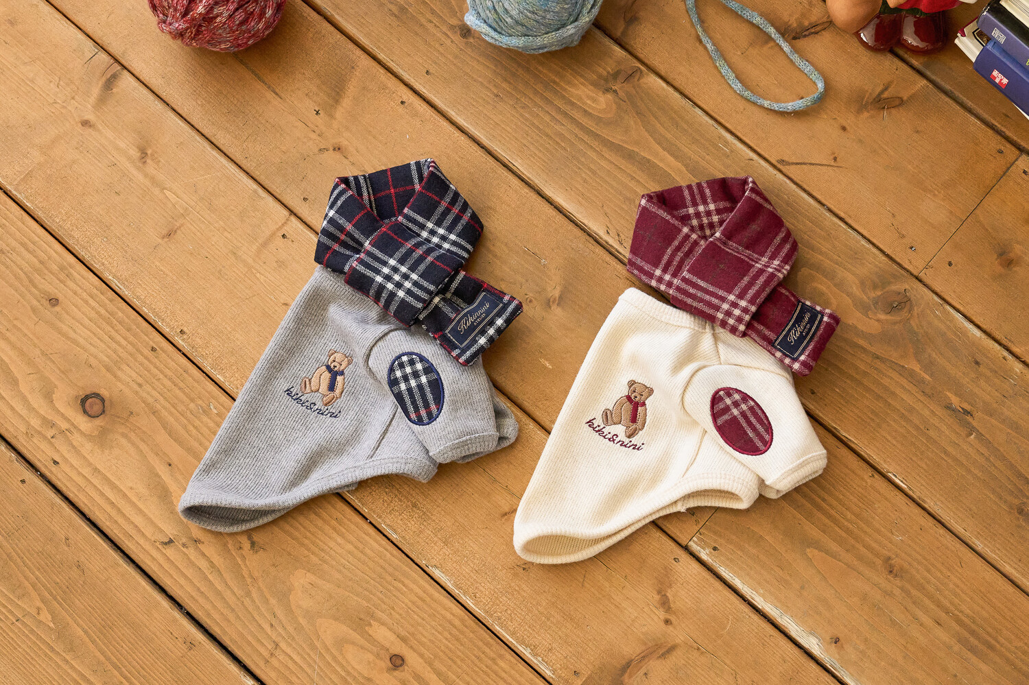 니트 소매 부분에 클래식한 체크로 패치 포인트를 주었으며