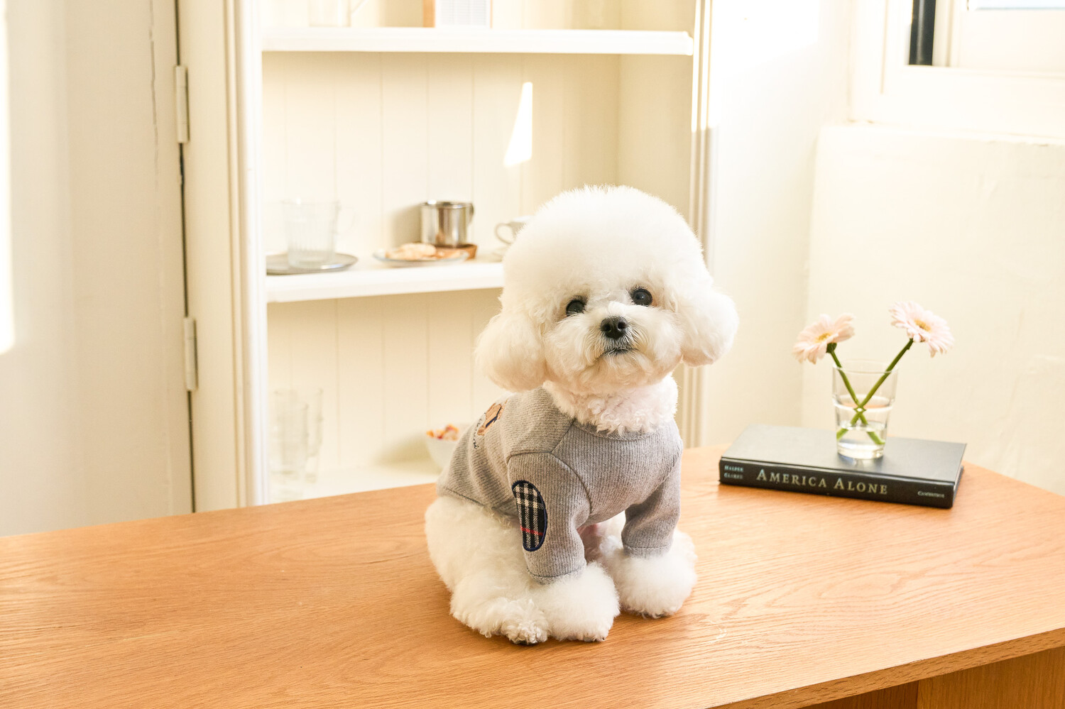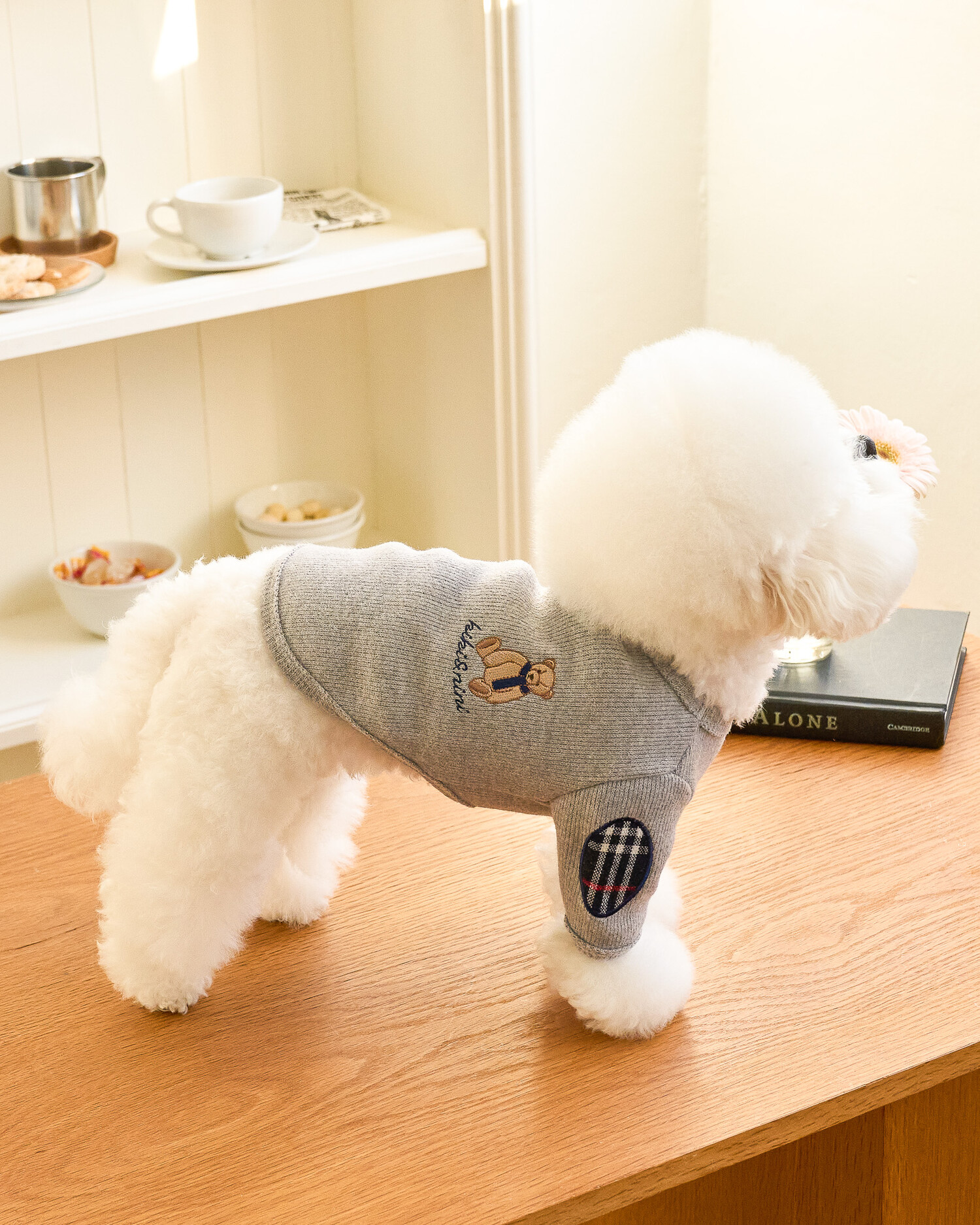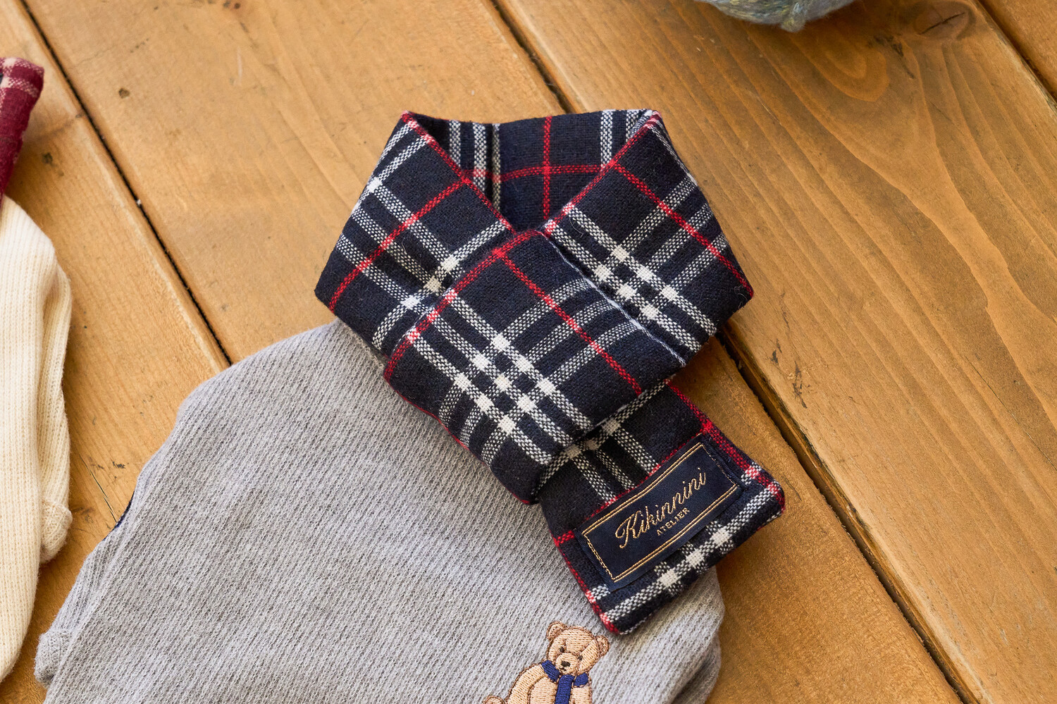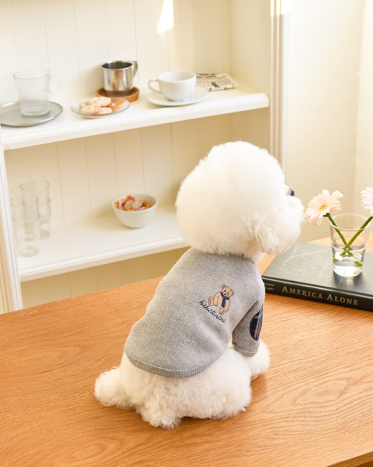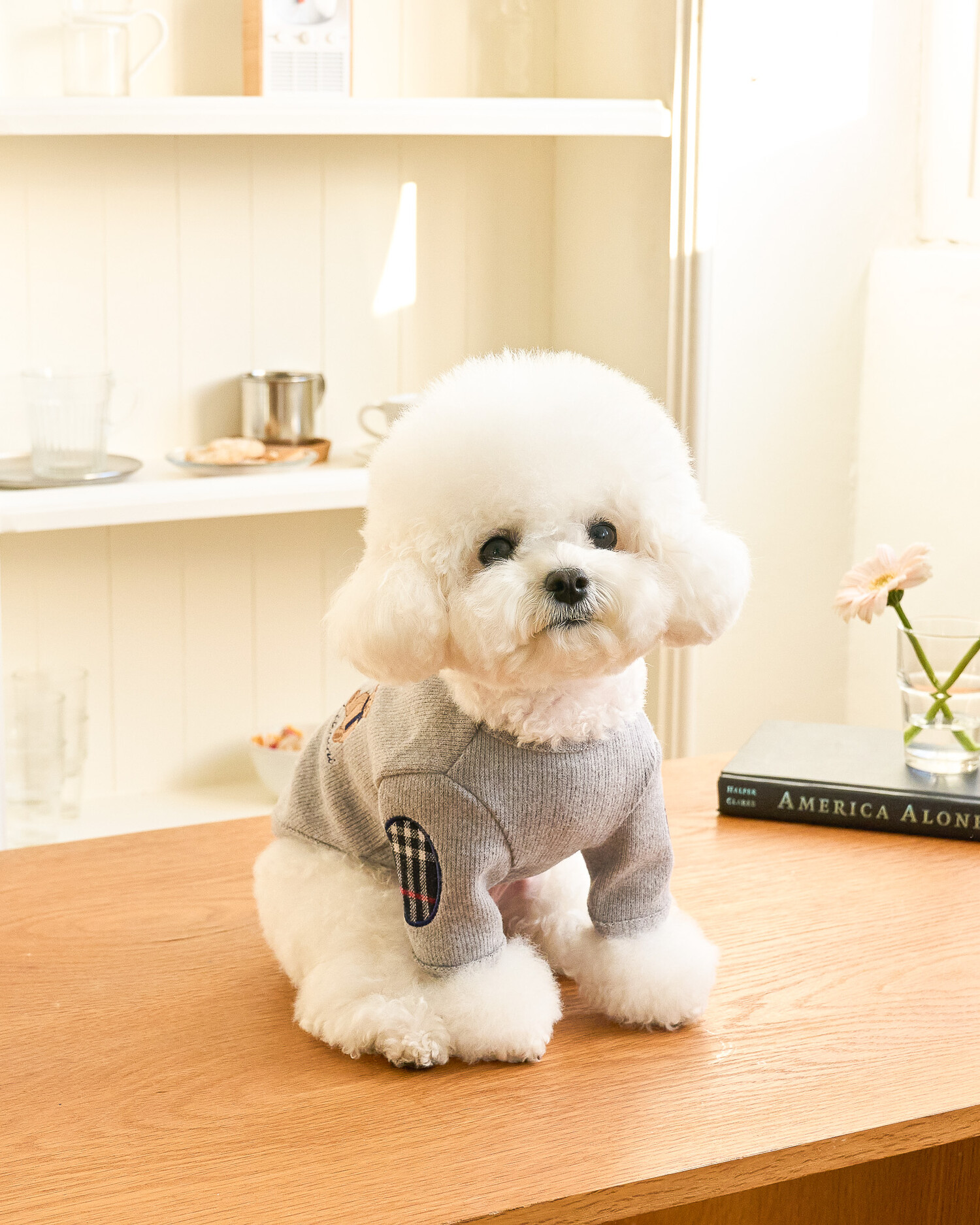 니트 소매 부분에 클래식한 체크로 패치 포인트를 주었으며