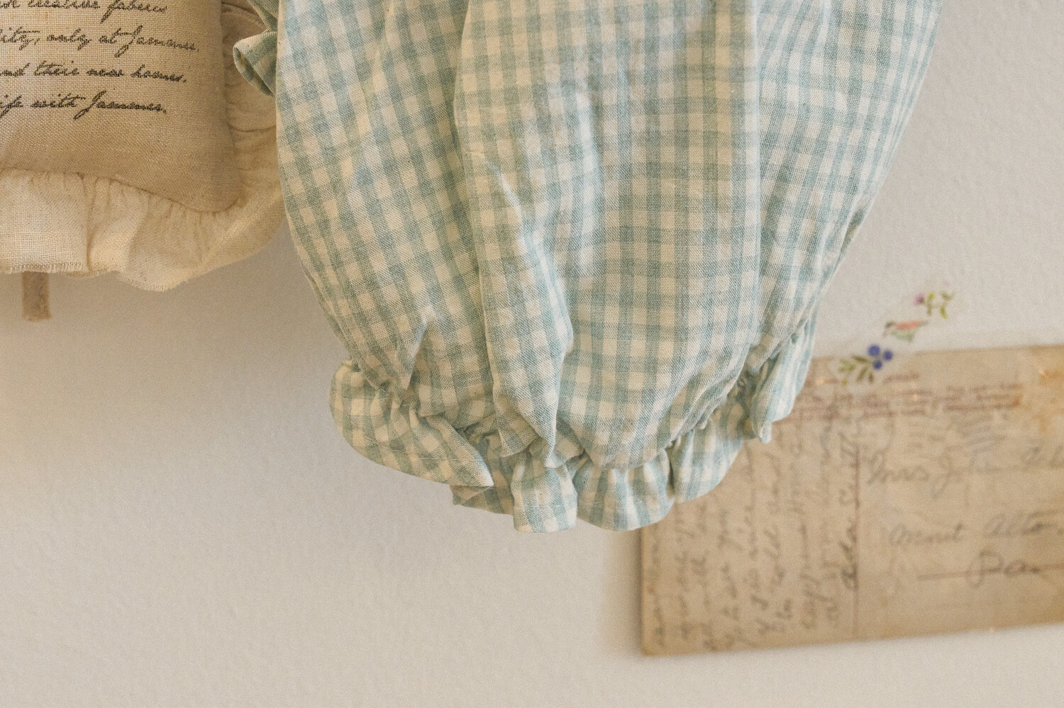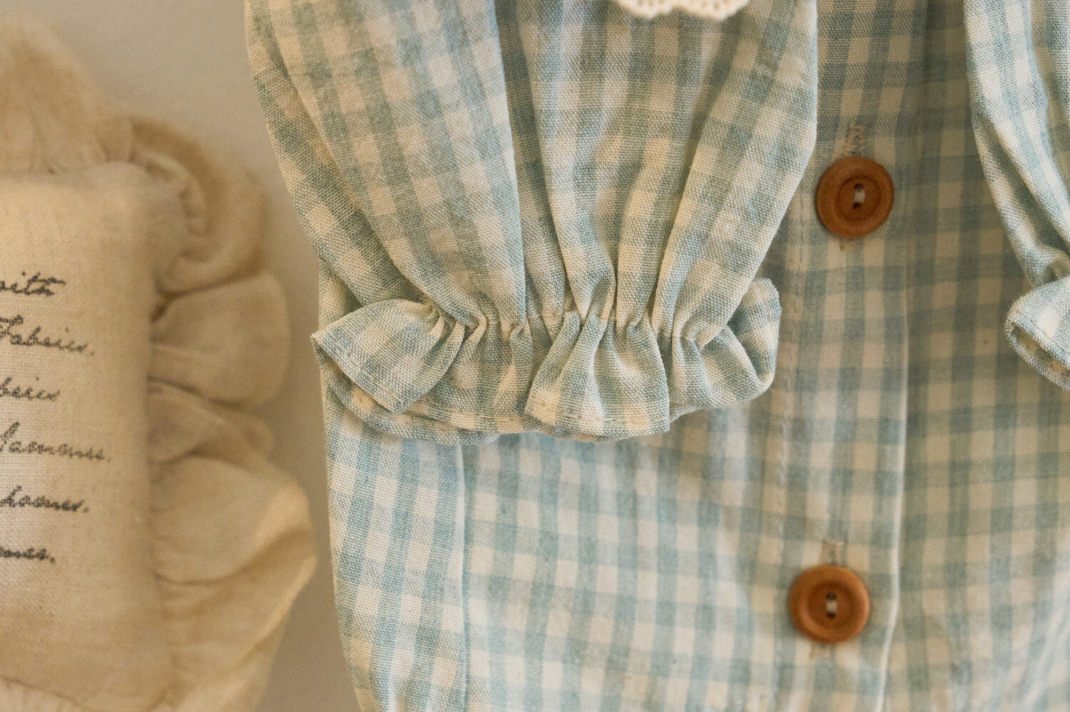 [블러썸 체크 블라우스 + 블러썸 체크 오버롤 팬츠]