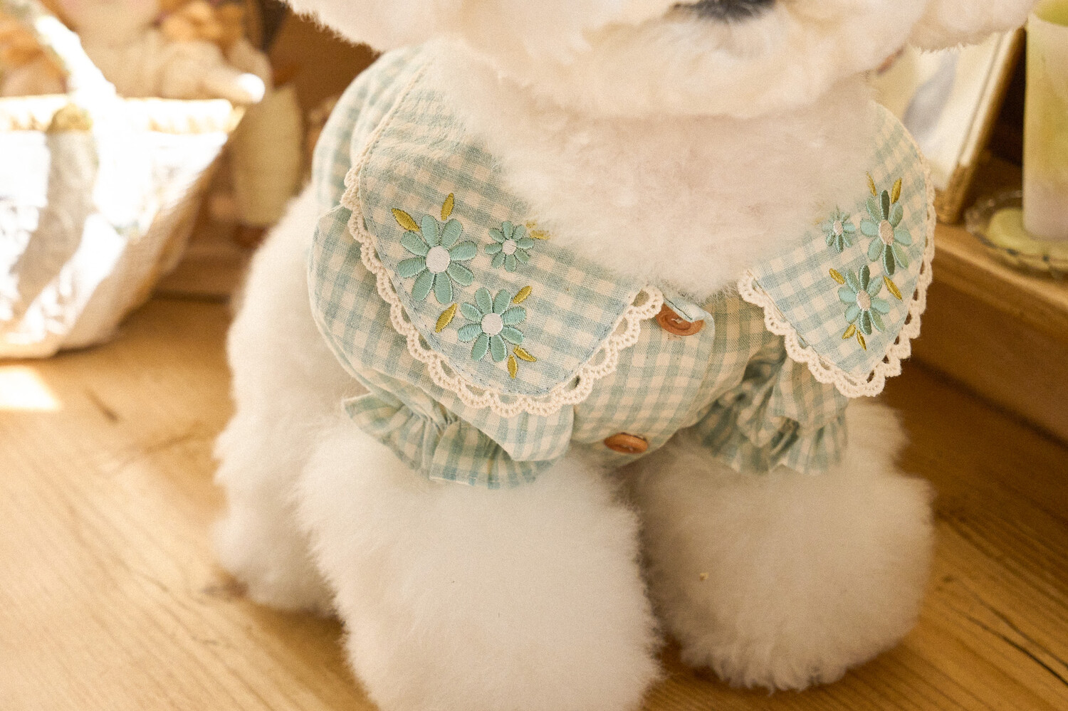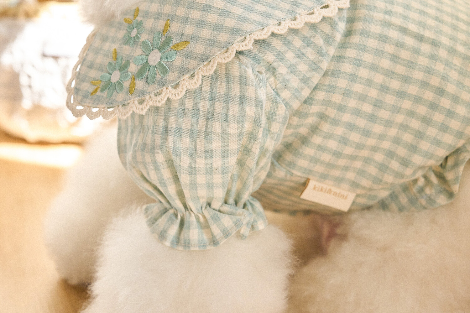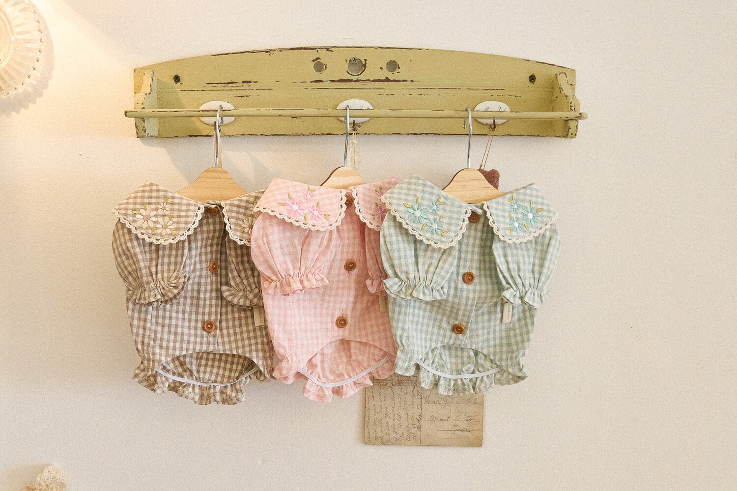 [블러썸 체크 블라우스 + 블러썸 체크 오버롤 원피스]