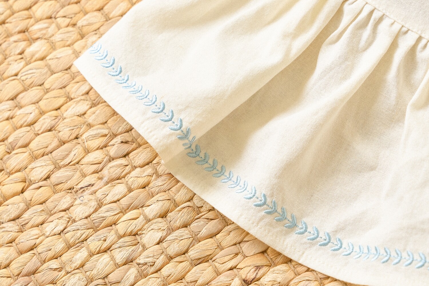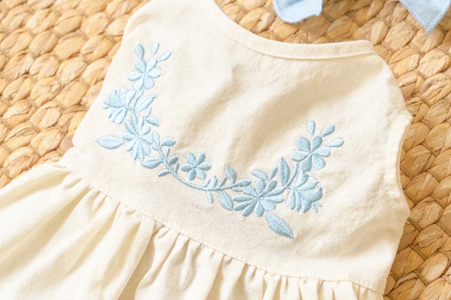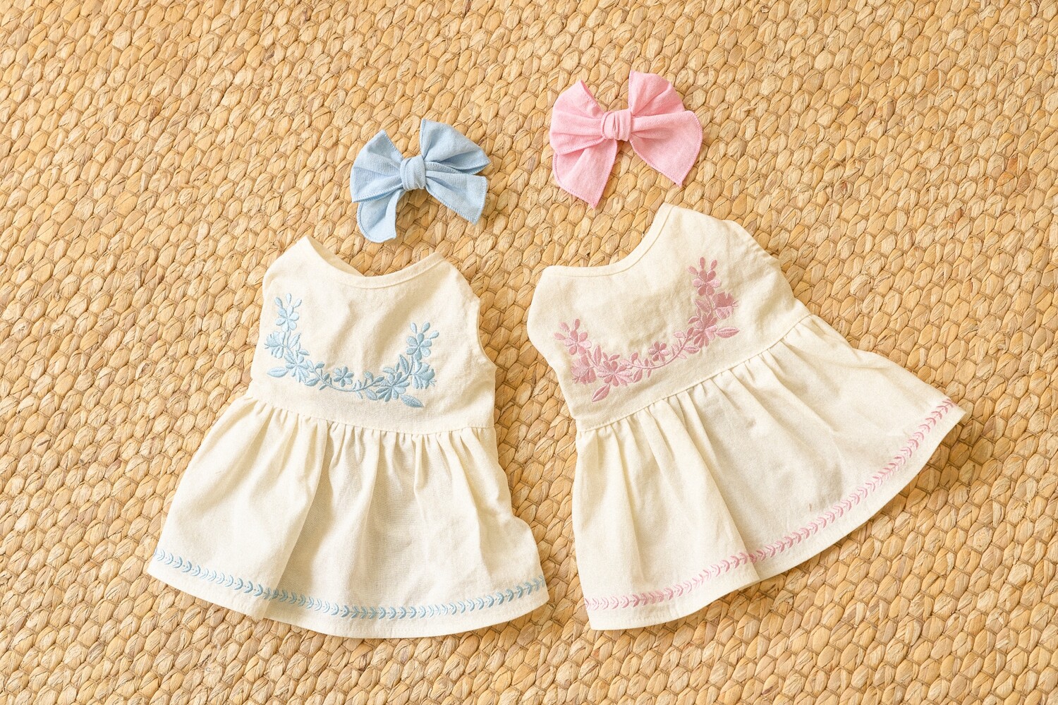 또한, 화이트 린넨 원단으로 제작되어 모색에 구애 없이 입히시기 좋습니다. 자수 컬러는 산뜻하면서 부드러운 색감의 베이비블루/베이비핑크 두 컬러로 만나보실 수 있으며,