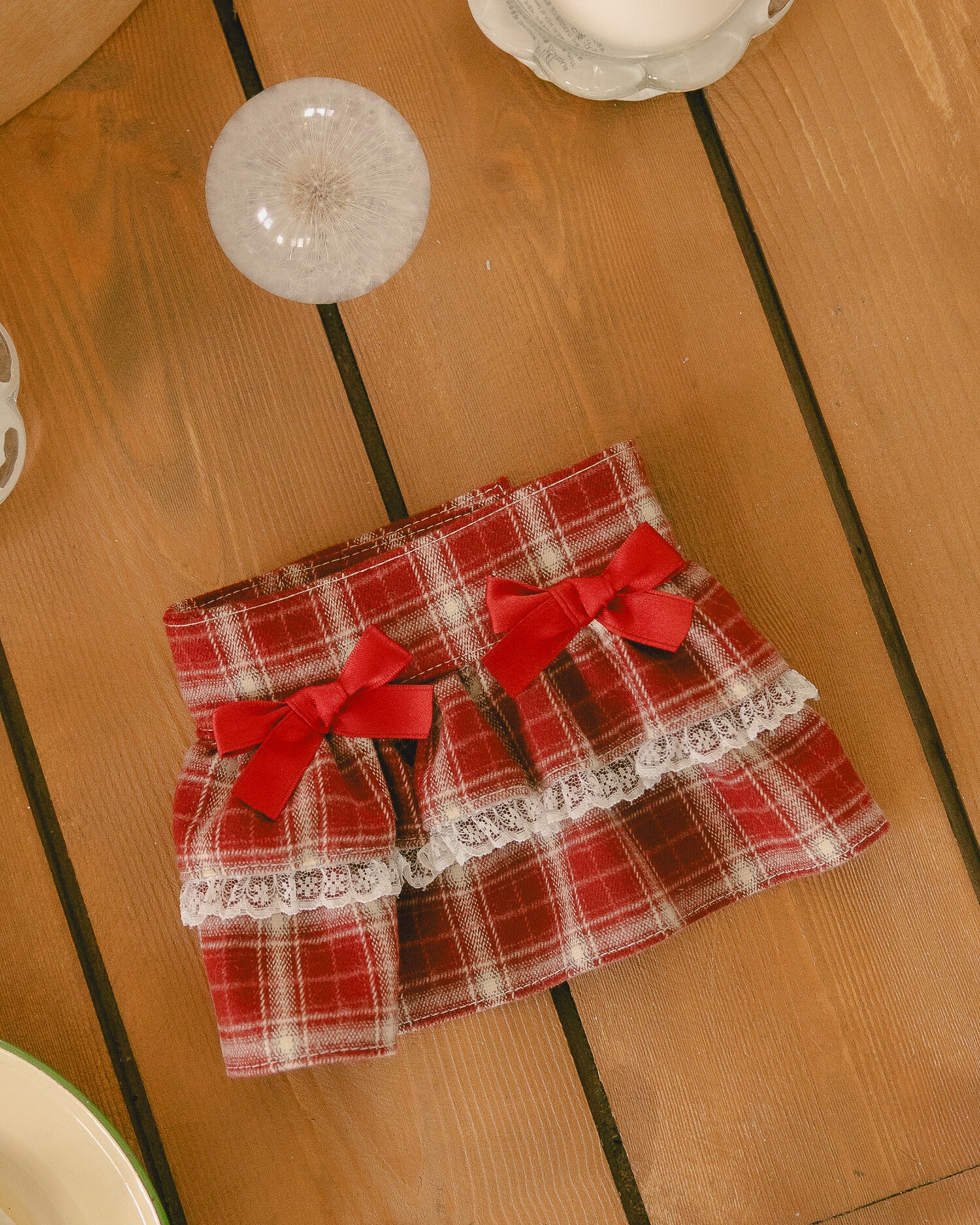 빈티지 체크 패턴과 레이스 프릴을 더해 사랑스러운 실루엣을 완성한 홀리 코티지 스커트입니다.
