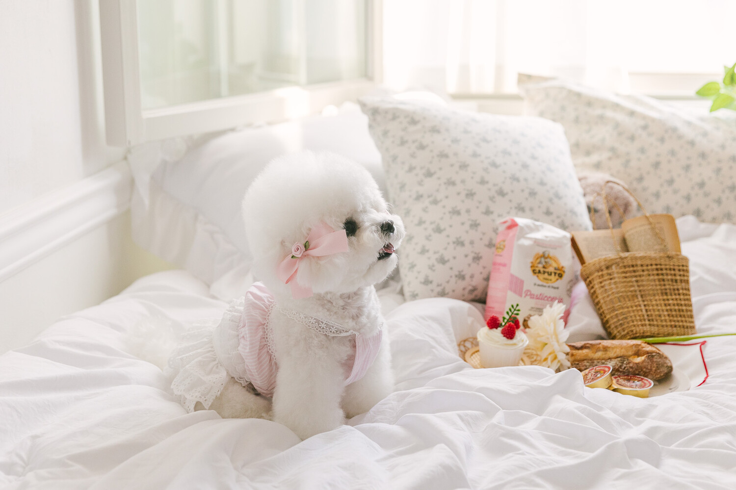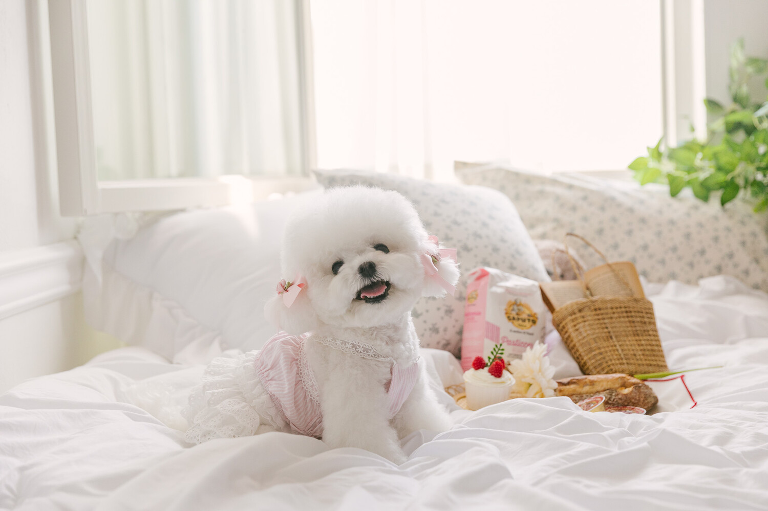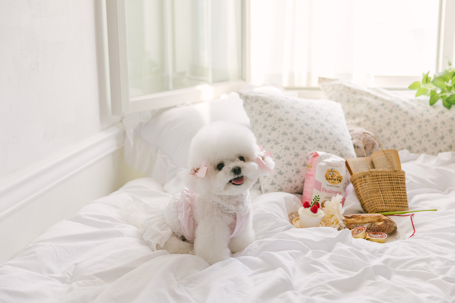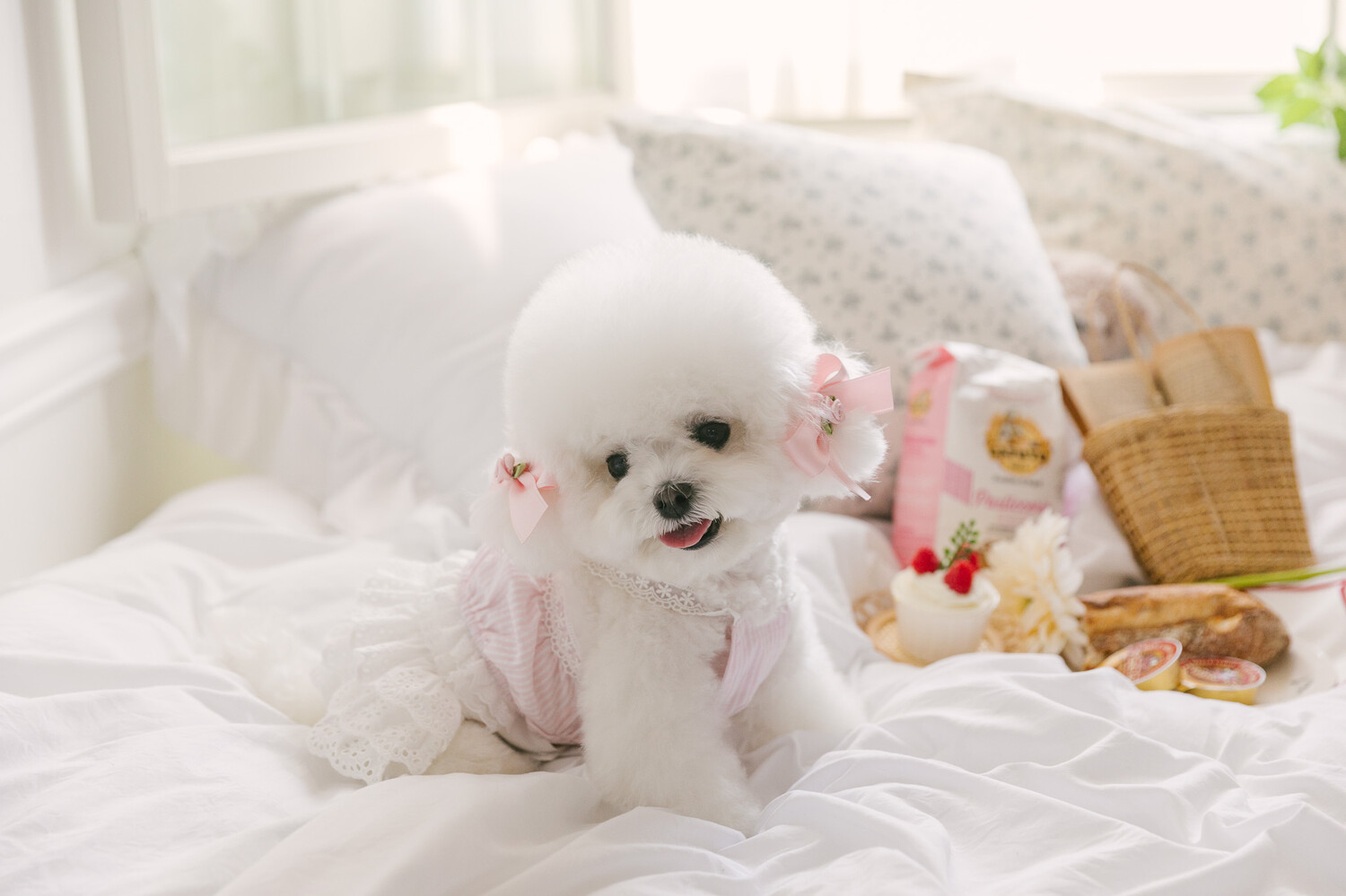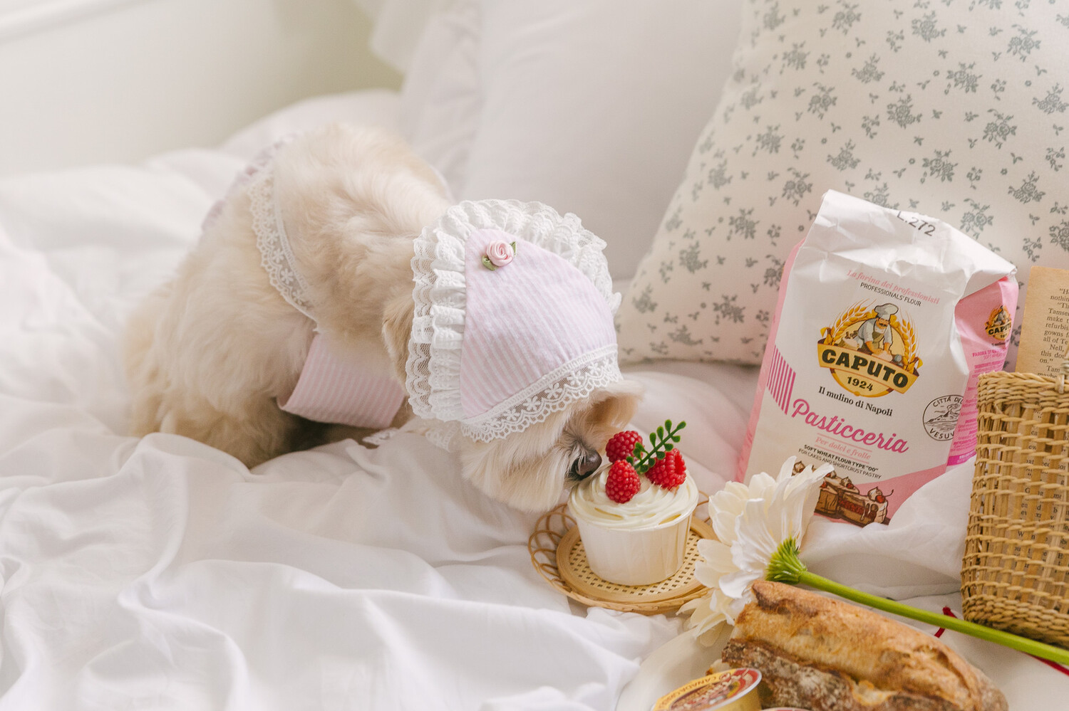 소녀스러운 무드를 가득 담은 스트라이프 패턴 위에 레이스와 작은 로즈 장식을 더해 사랑스러움이 톡톡 터지는 샤베트 무드를 담았어요.