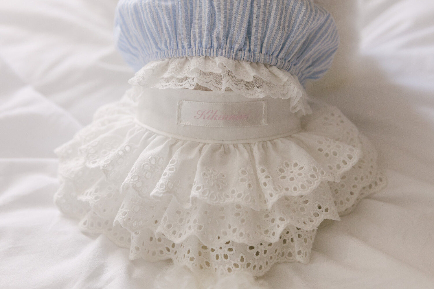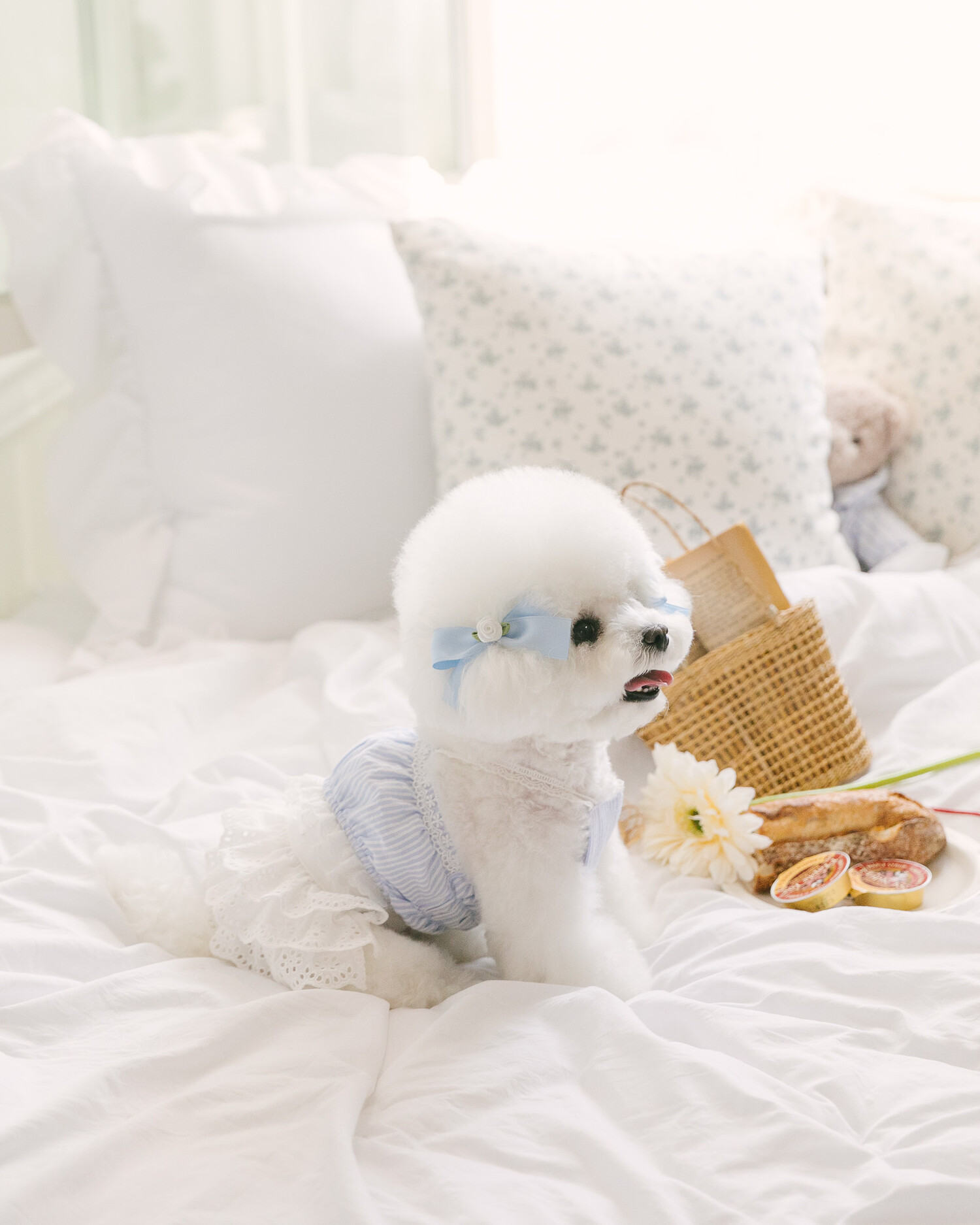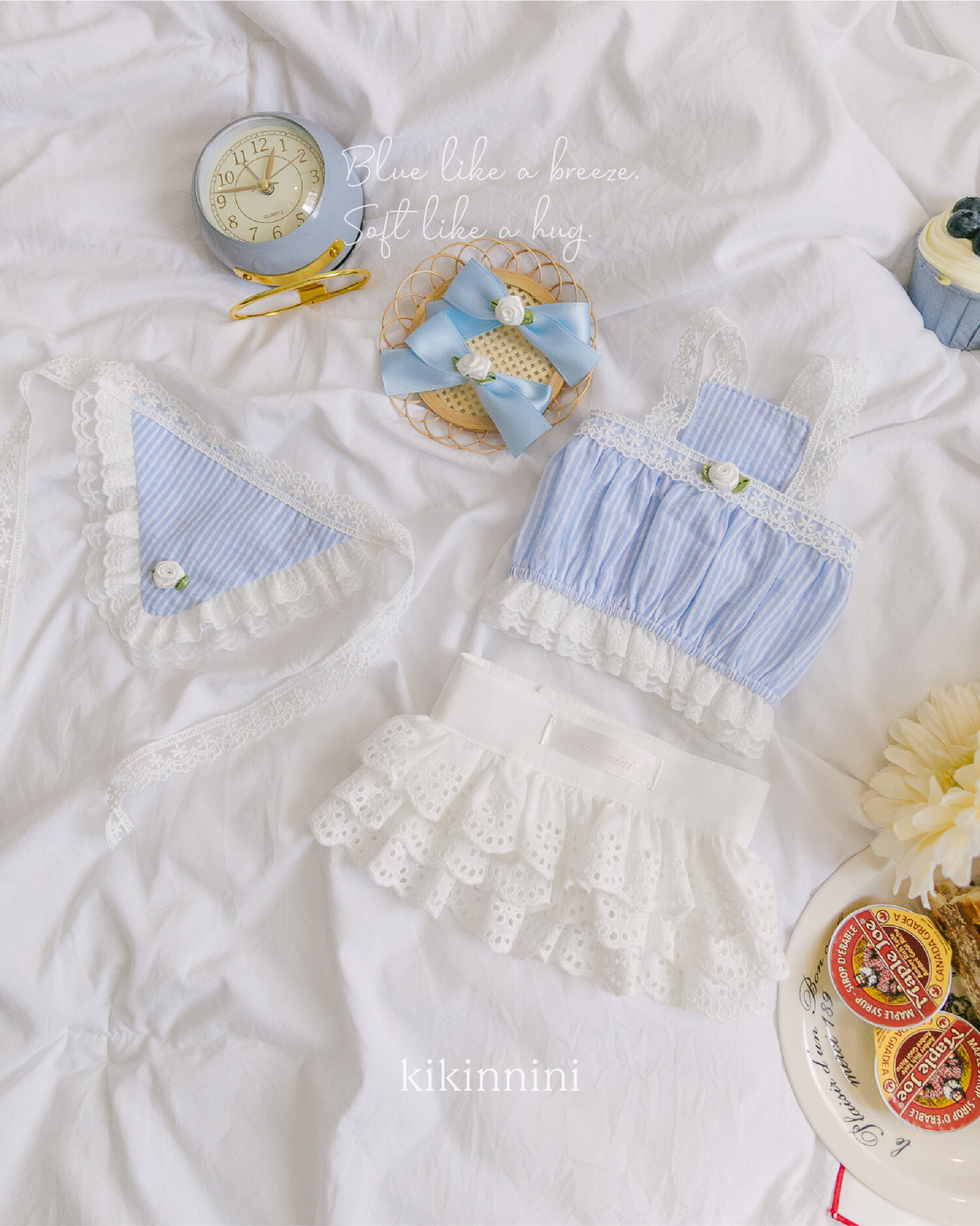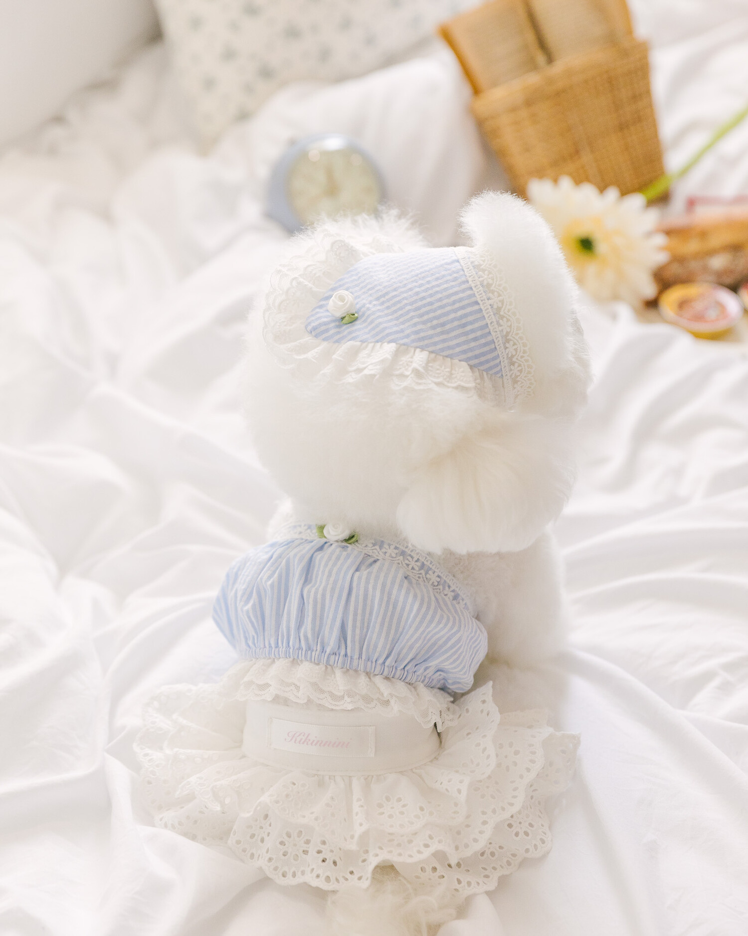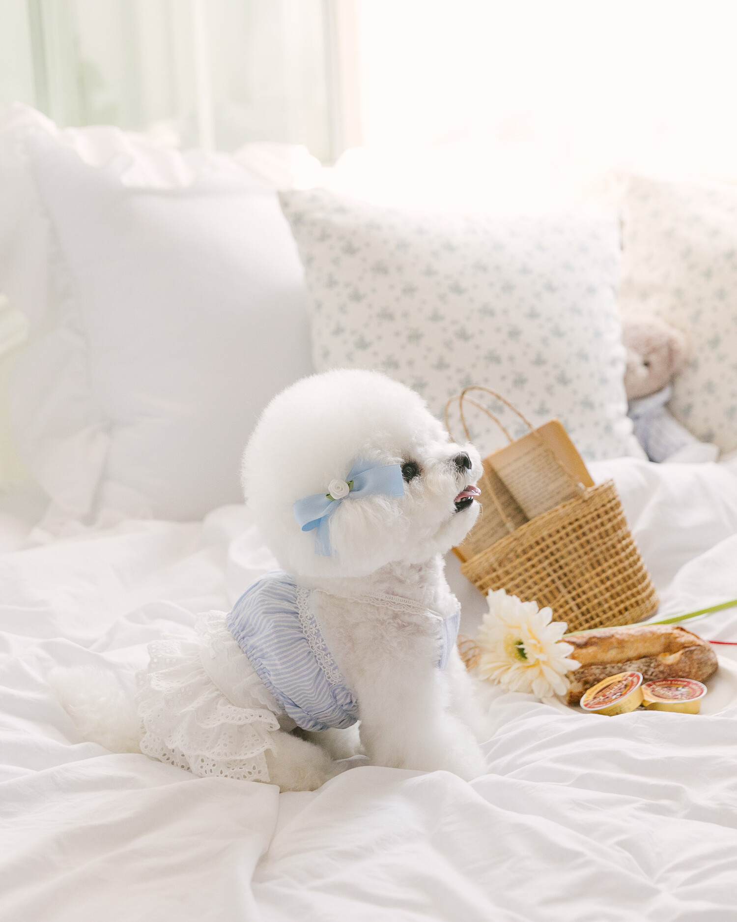 소녀스러운 무드를 가득 담은 스트라이프 패턴 위에 레이스와 작은 로즈 장식을 더해 사랑스러움이 톡톡 터지는 샤베트 무드를 담았어요.