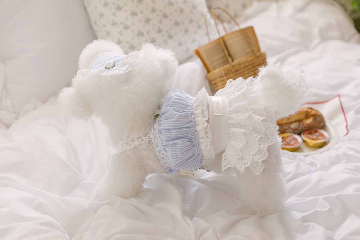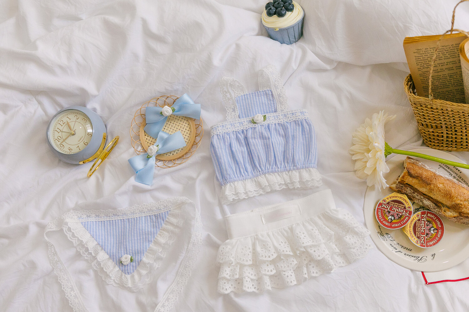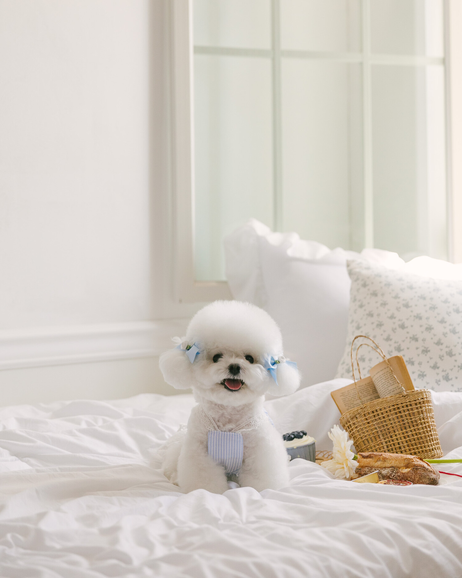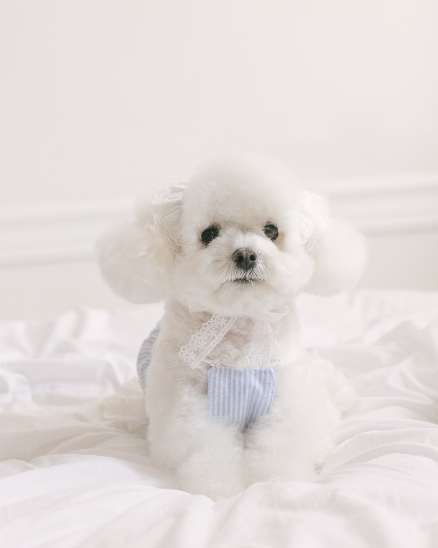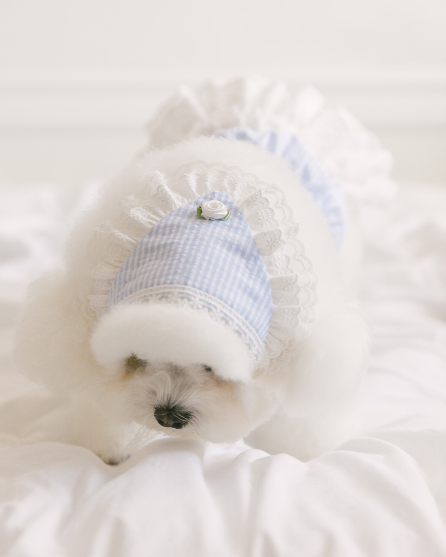 소녀스러운 무드를 가득 담은 스트라이프 패턴 위에 레이스와 작은 로즈 장식을 더해 사랑스러움이 톡톡 터지는 샤베트 무드를 담았어요.