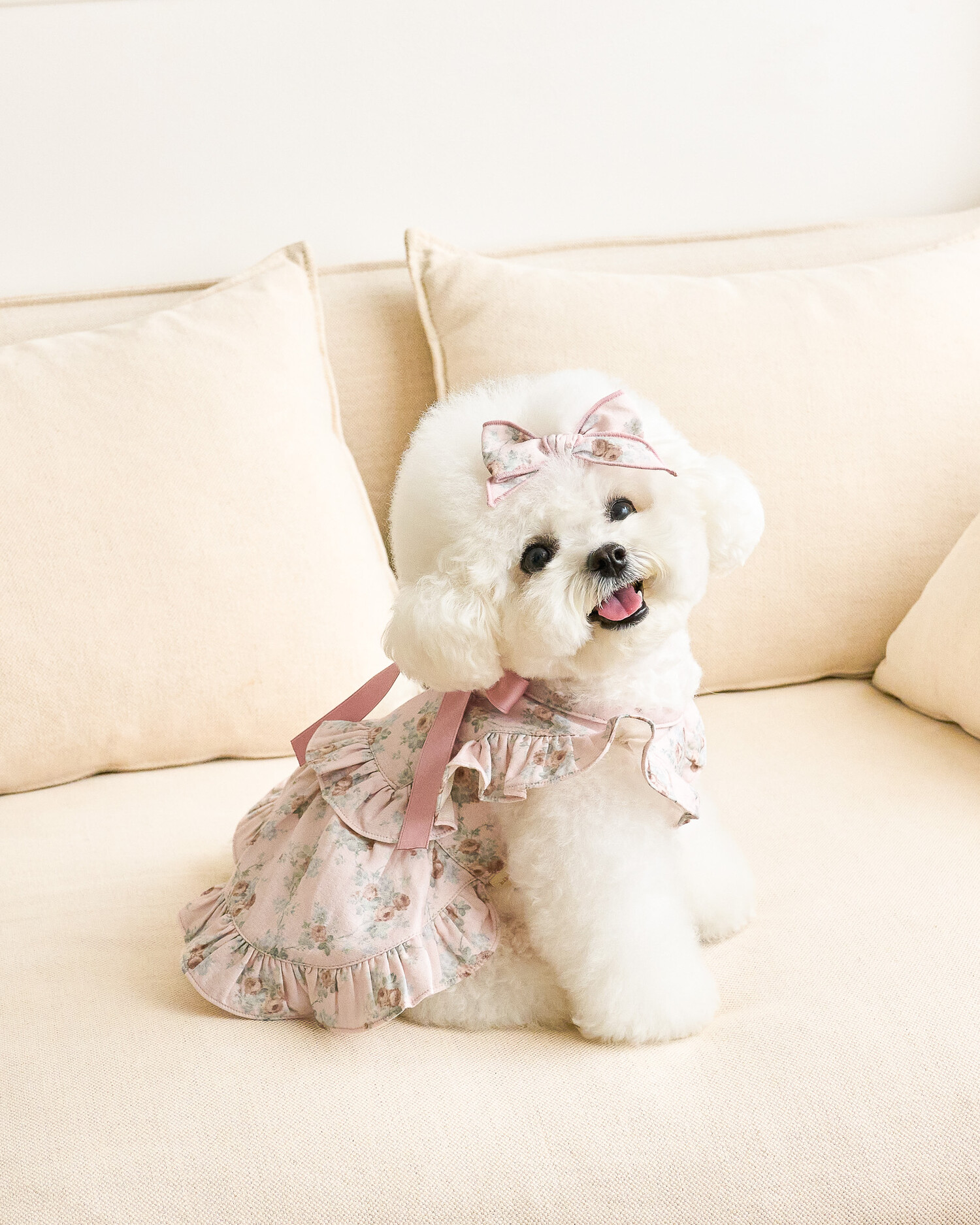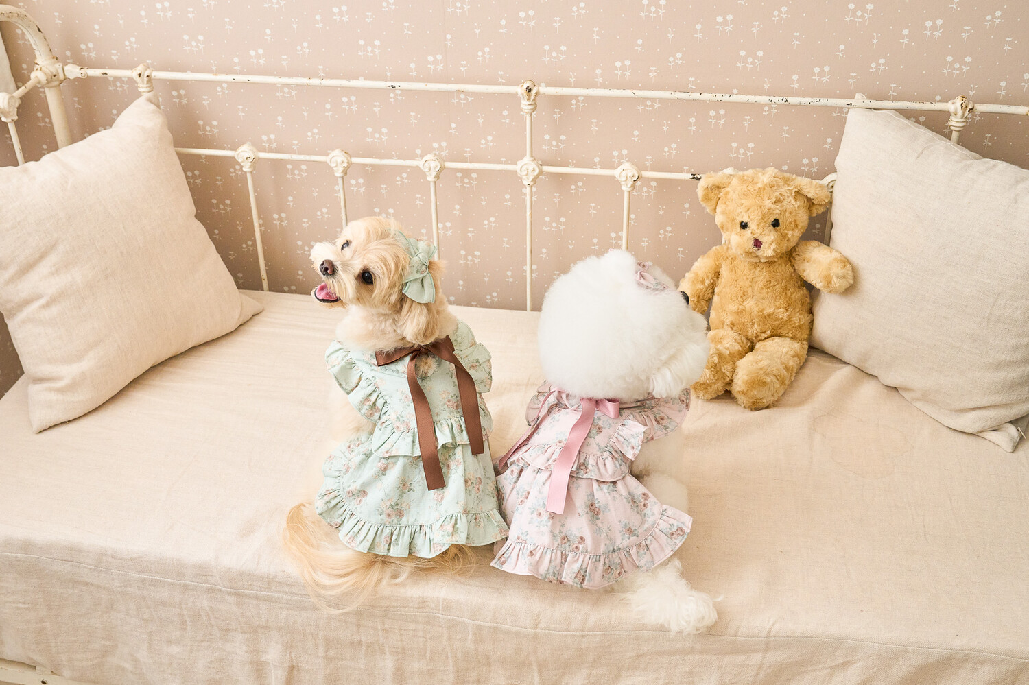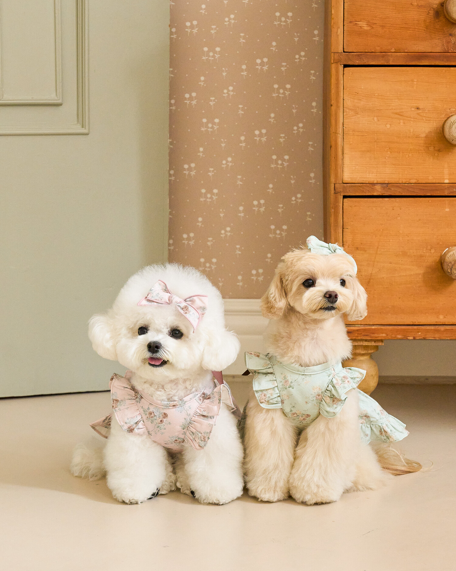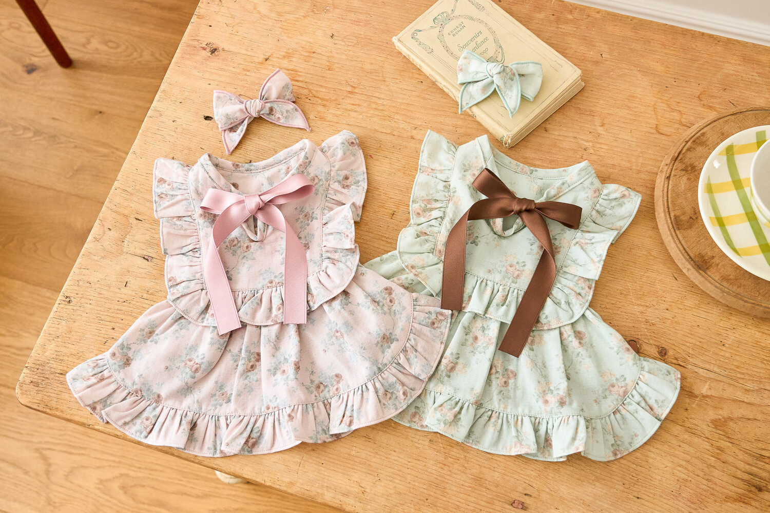 ‘올리비아 리본 원피스’ 가을 ver.으로 가을 감성을 온전히 느낄 수 있는 뮤트한 컬러들로 준비해 봤어요..♥ 빈티지하지만 너무 딥하지 않은, 은은하게 고급스러운 가을의 분위기를 자아내는 컬러감이에요 뮤트한 컬러+말린 장미꽃 패턴이라니…! 플라워 패턴에 진심인 저로써는 이 원단을 보고 그냥 지나칠 수 없겠더라구요 여기에 원단과 배색되는 공단 리본으로 포인트를 주었습니다. 뮤트한 컬러라 너무 차분하지는 않을까 싶었는데 제가 상상했던 것보다도 모델 친구들이 입었을 때 정말 화사하게 잘 받더라구요!