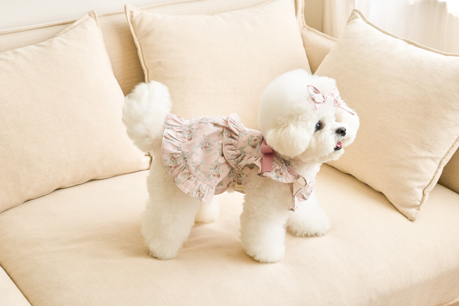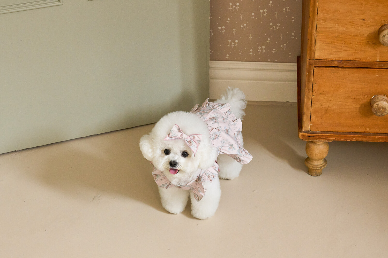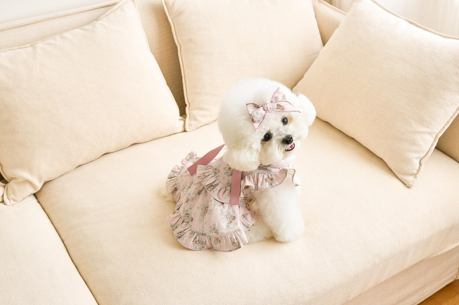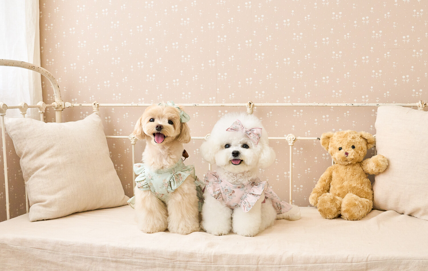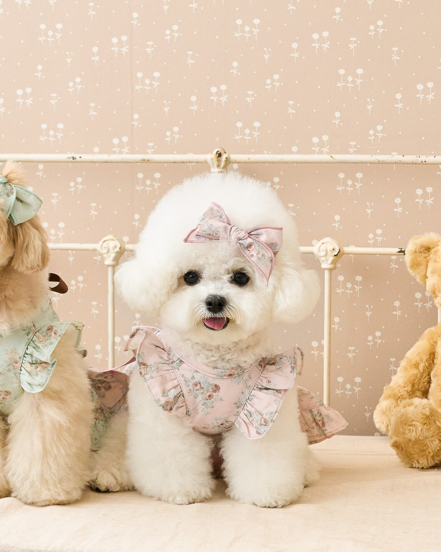 ‘올리비아 리본 원피스’ 가을 ver.으로 가을 감성을 온전히 느낄 수 있는 뮤트한 컬러들로 준비해 봤어요..♥ 빈티지하지만 너무 딥하지 않은, 은은하게 고급스러운 가을의 분위기를 자아내는 컬러감이에요 뮤트한 컬러+말린 장미꽃 패턴이라니…! 플라워 패턴에 진심인 저로써는 이 원단을 보고 그냥 지나칠 수 없겠더라구요 여기에 원단과 배색되는 공단 리본으로 포인트를 주었습니다. 뮤트한 컬러라 너무 차분하지는 않을까 싶었는데 제가 상상했던 것보다도 모델 친구들이 입었을 때 정말 화사하게 잘 받더라구요!