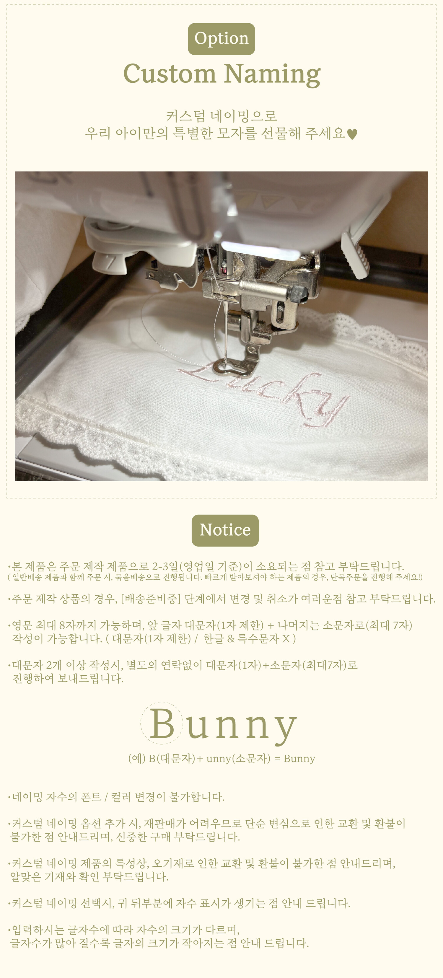 네이밍 자수 기입(영문 8자 / 대문자&특수문자X)