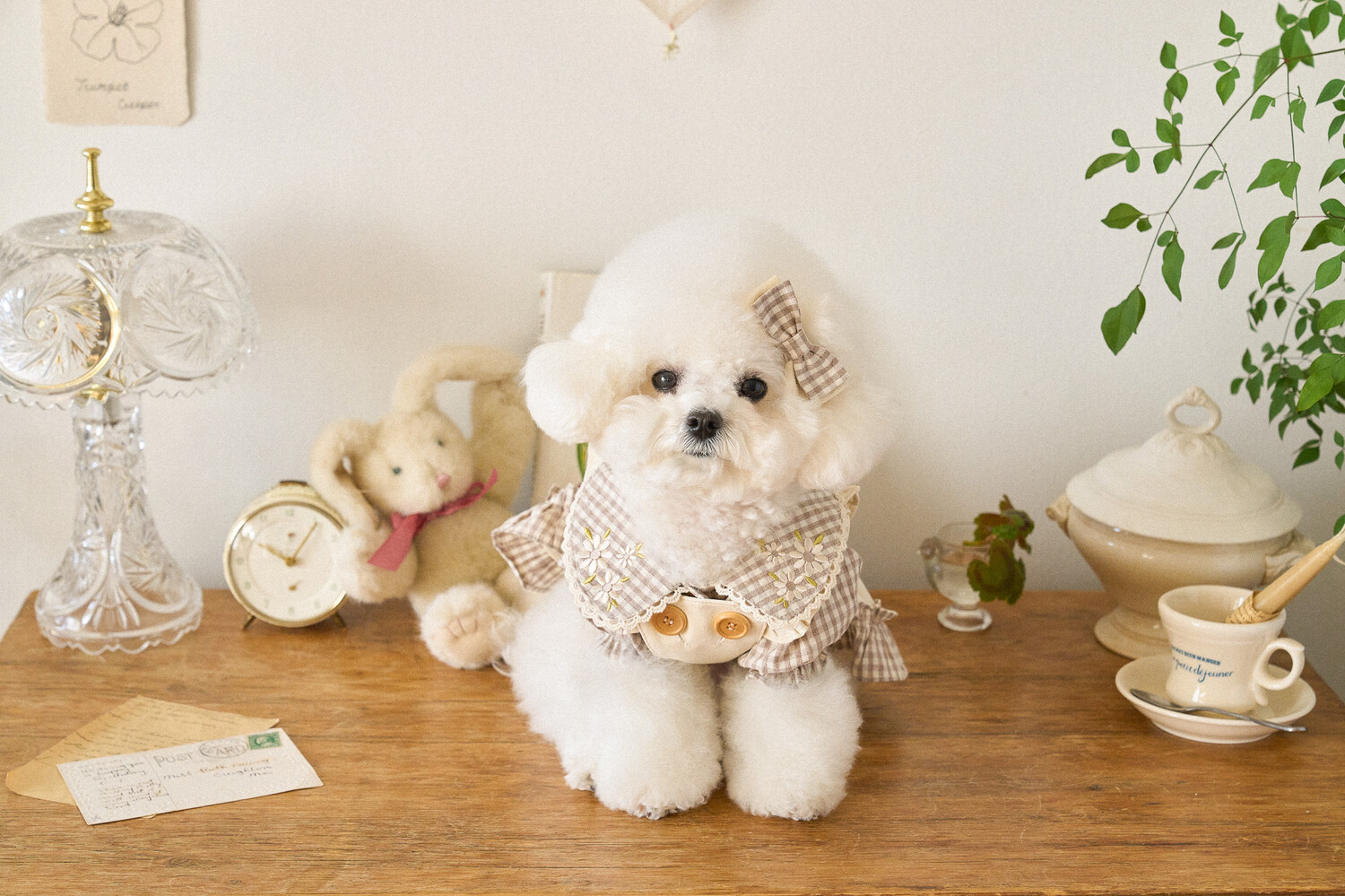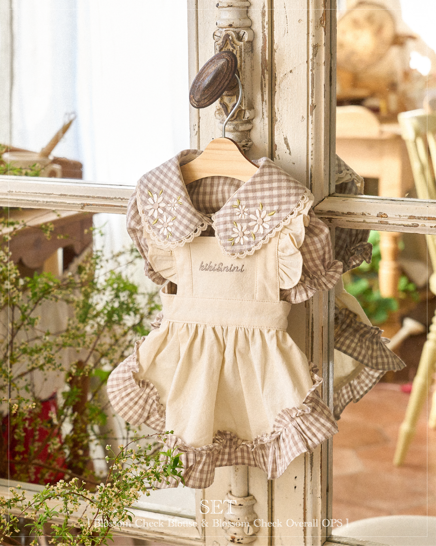 [ 블러썸 체크 블라우스 (베이지) & 블러썸 체크 오버롤 원피스 (베이지) ]