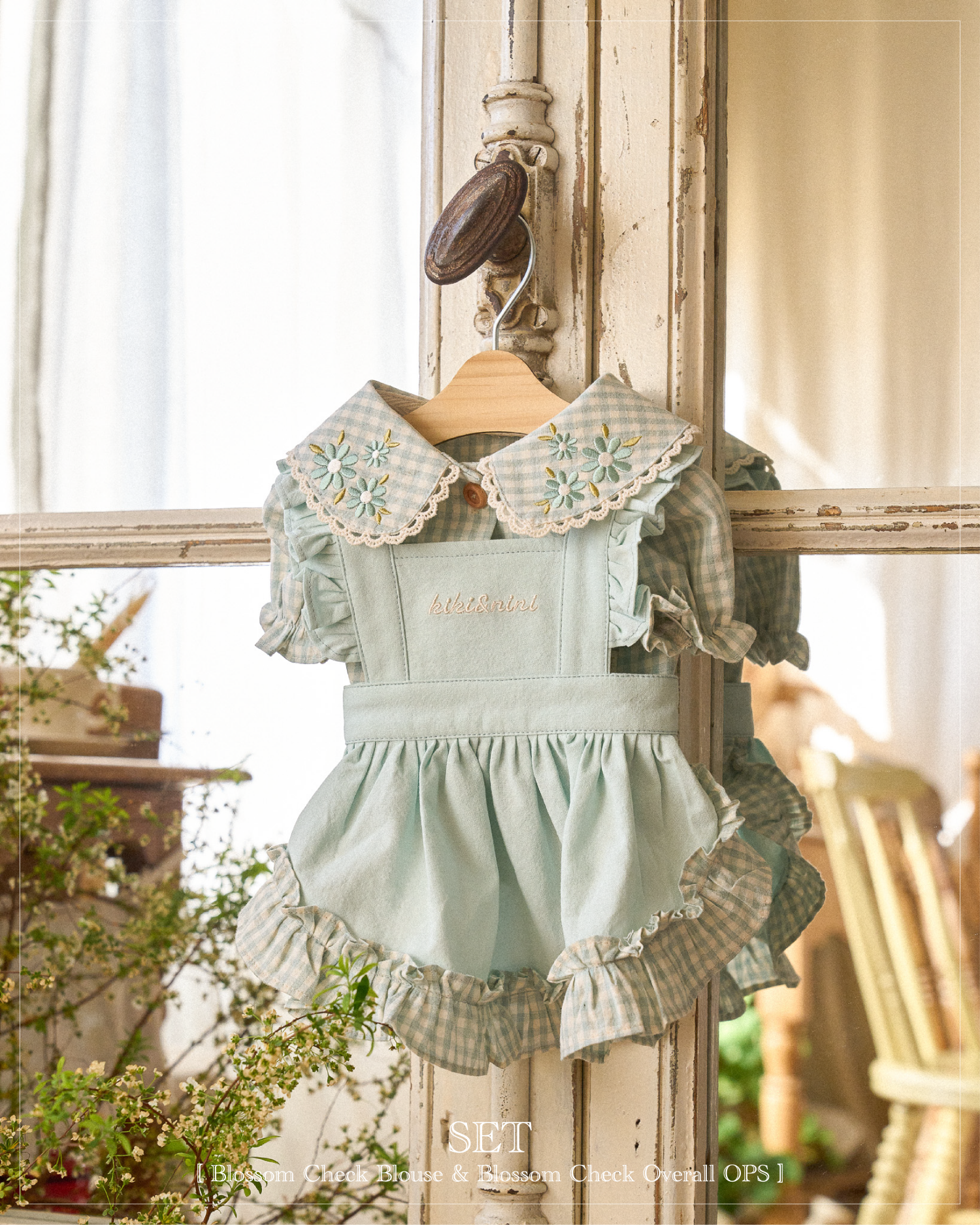 [ 블러썸 체크 블라우스 (민트) & 블러썸 체크 오버롤 원피스 (민트) ]
