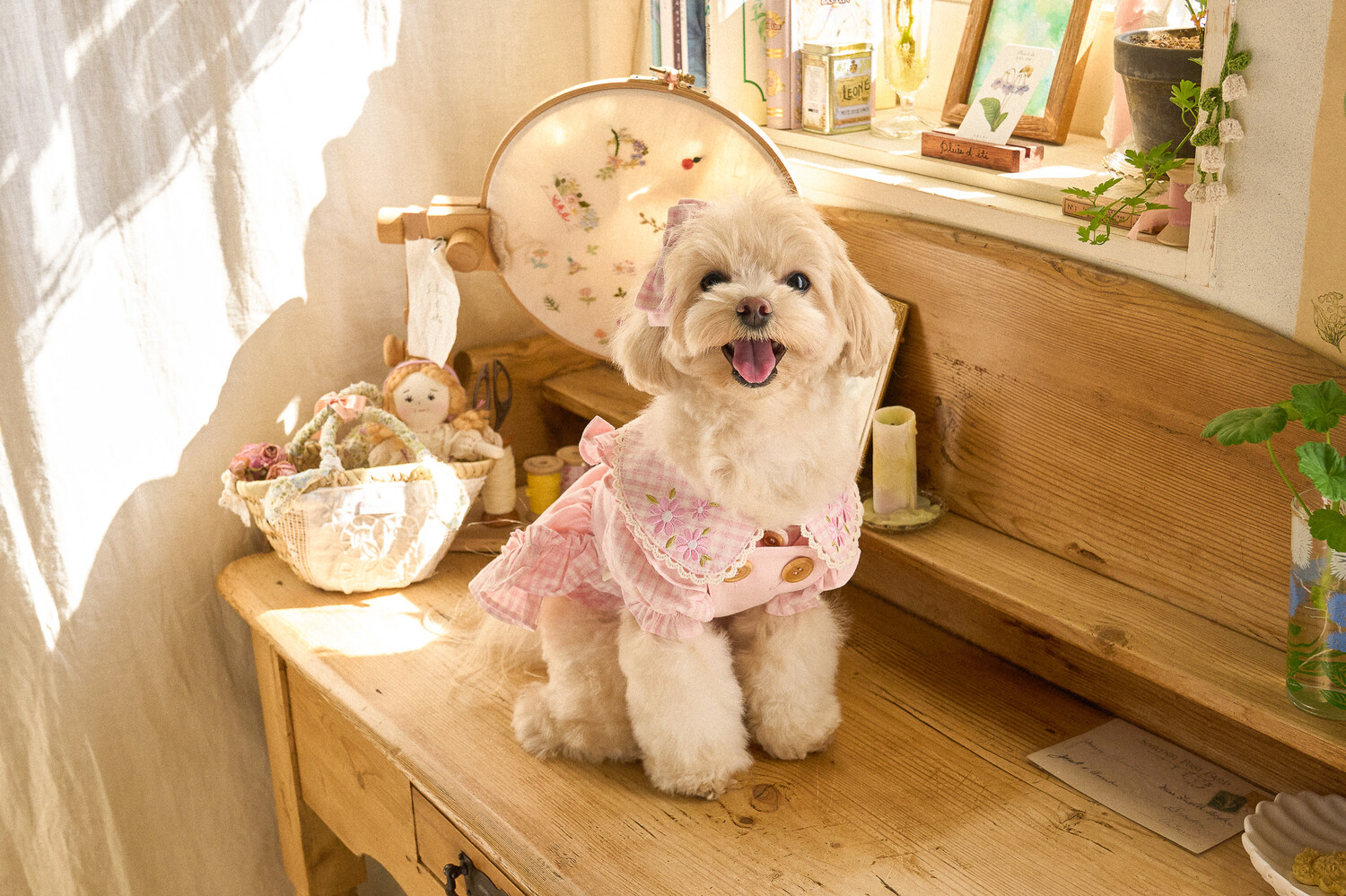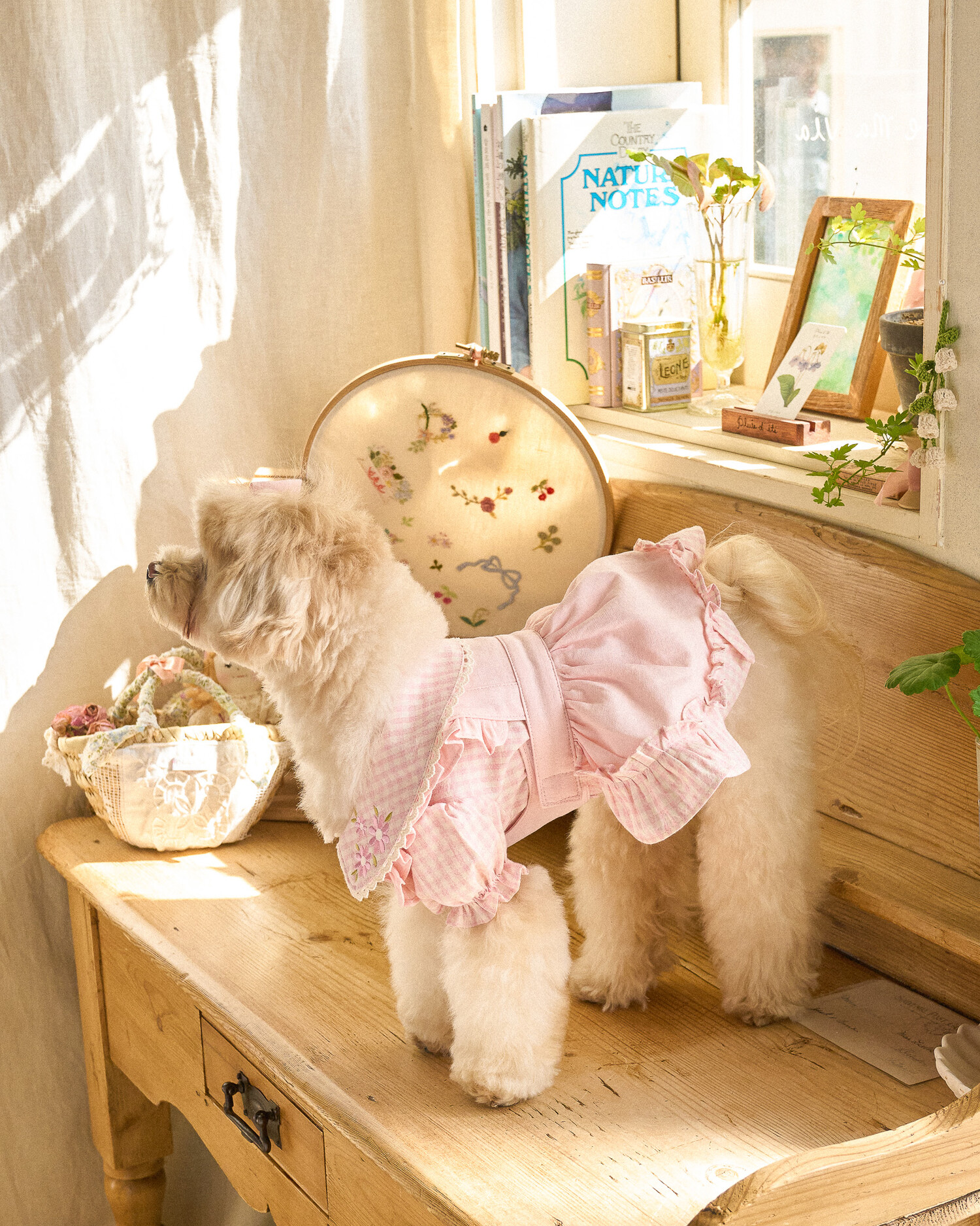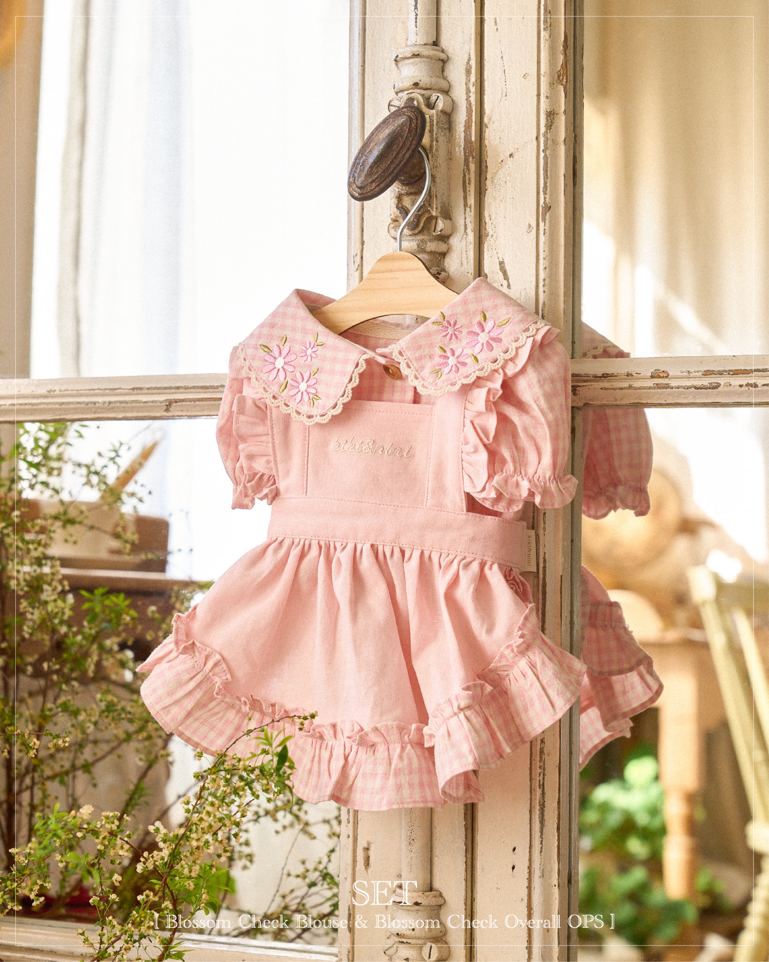 [ 블러썸 체크 블라우스 (핑크) & 블러썸 체크 오버롤 원피스 (핑크) ]