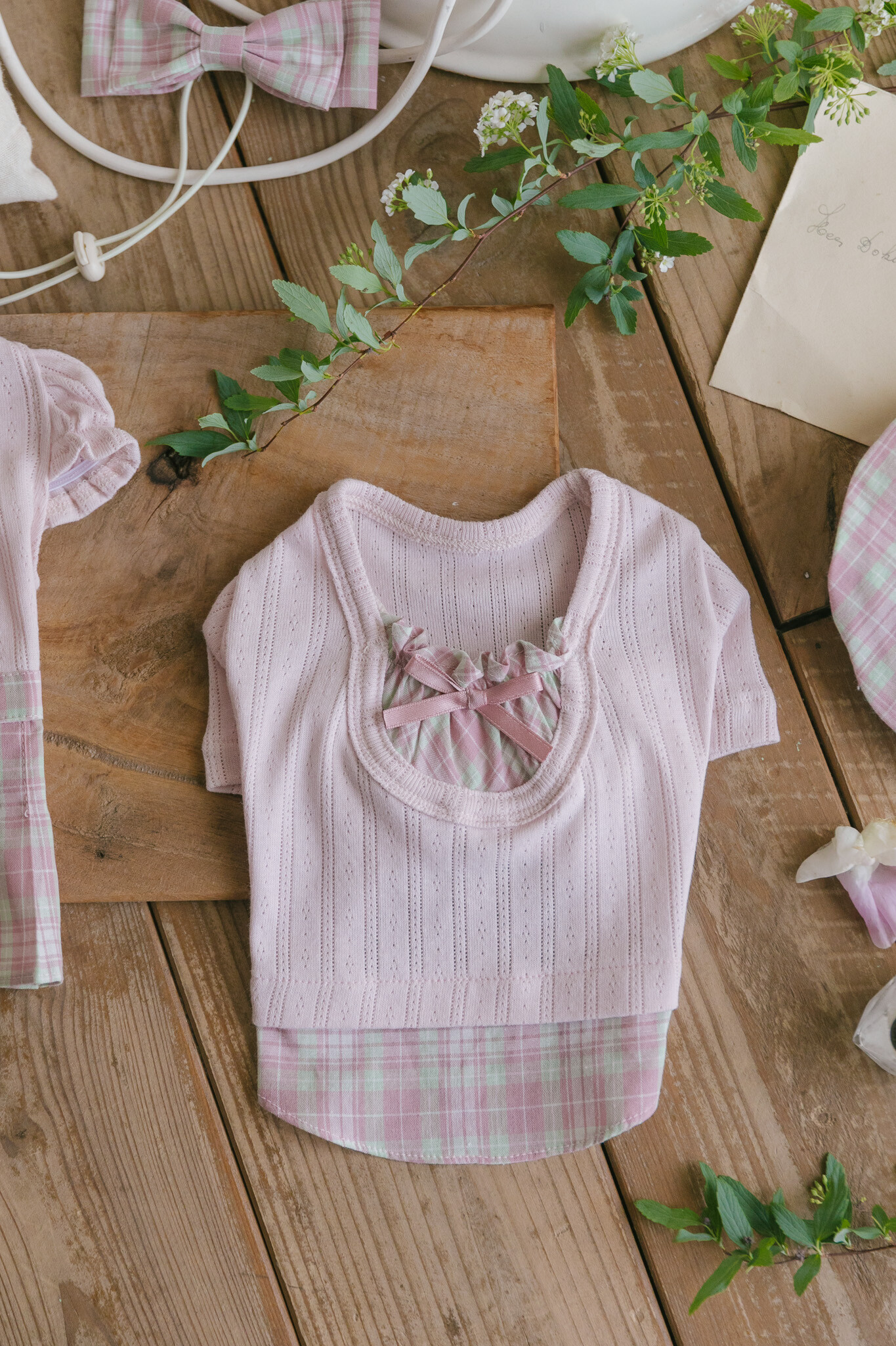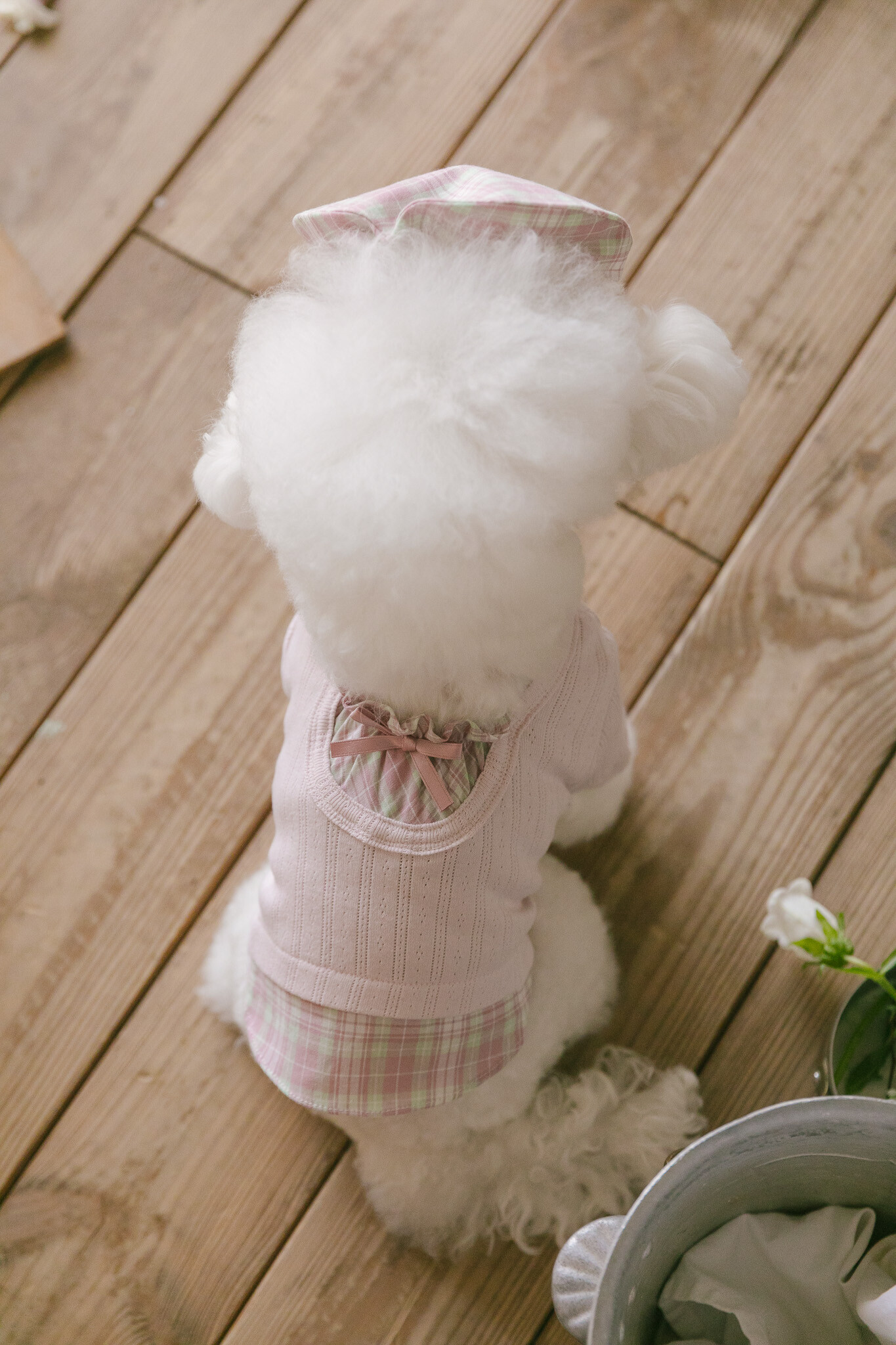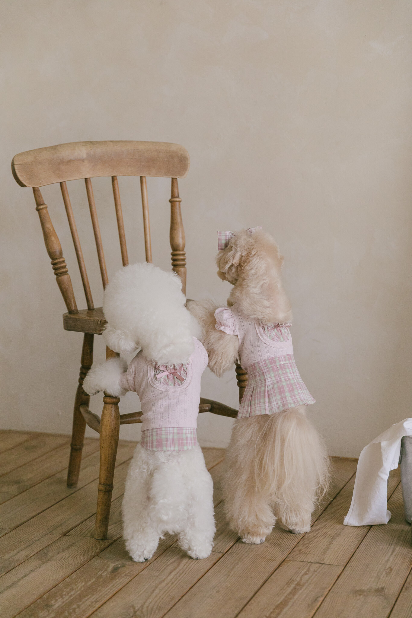 클래식하면서 귀여운 체크 패턴으로 셔츠&원피스를 레이어드 한듯한 디테일을 넣었습니다.