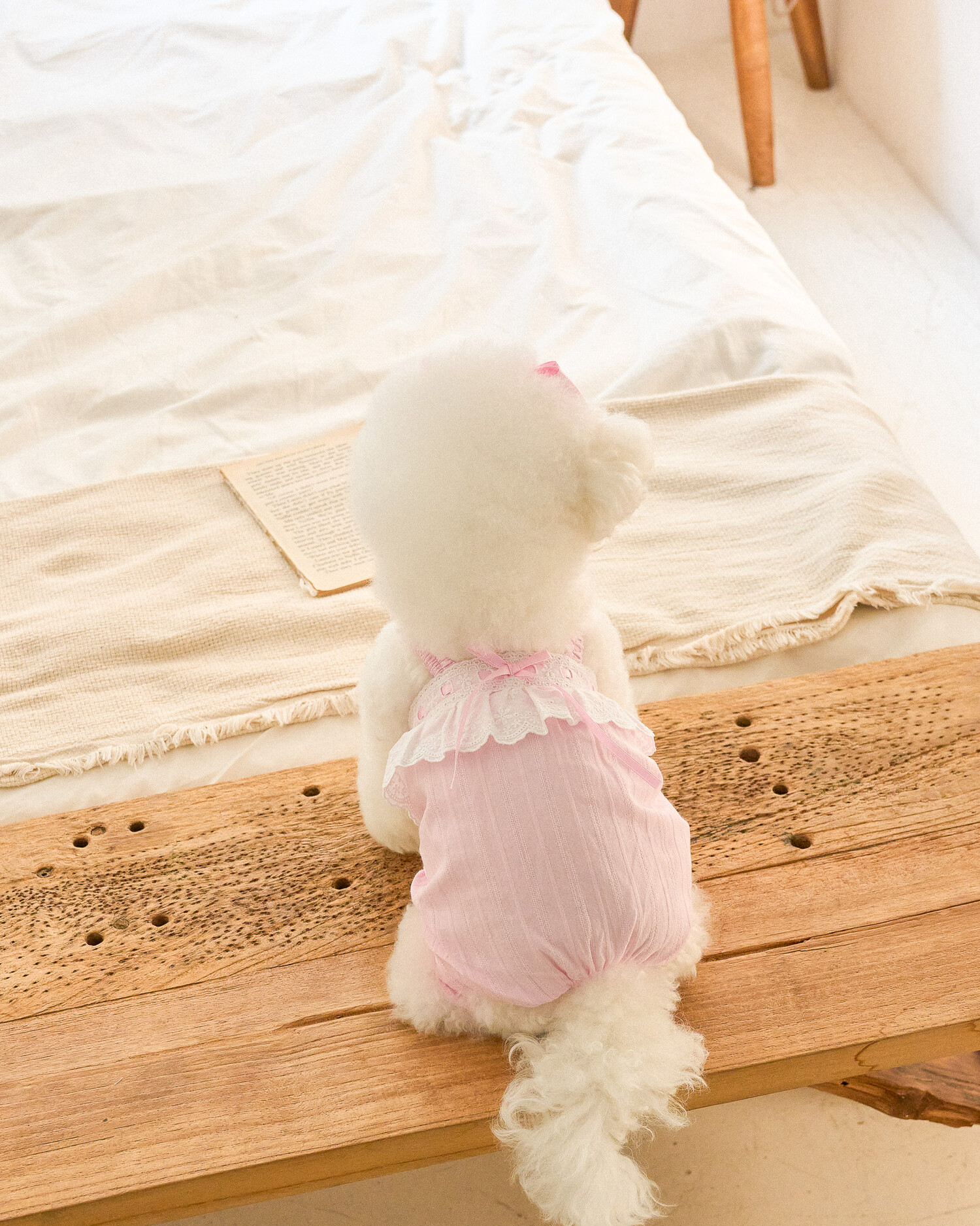 파스텔톤의 은은한 바탕색과 빈티지 무드가 돋보이는 리본 레이스가 조화롭게 이루어져, 여리여리한 무드를 연출해 줍니다