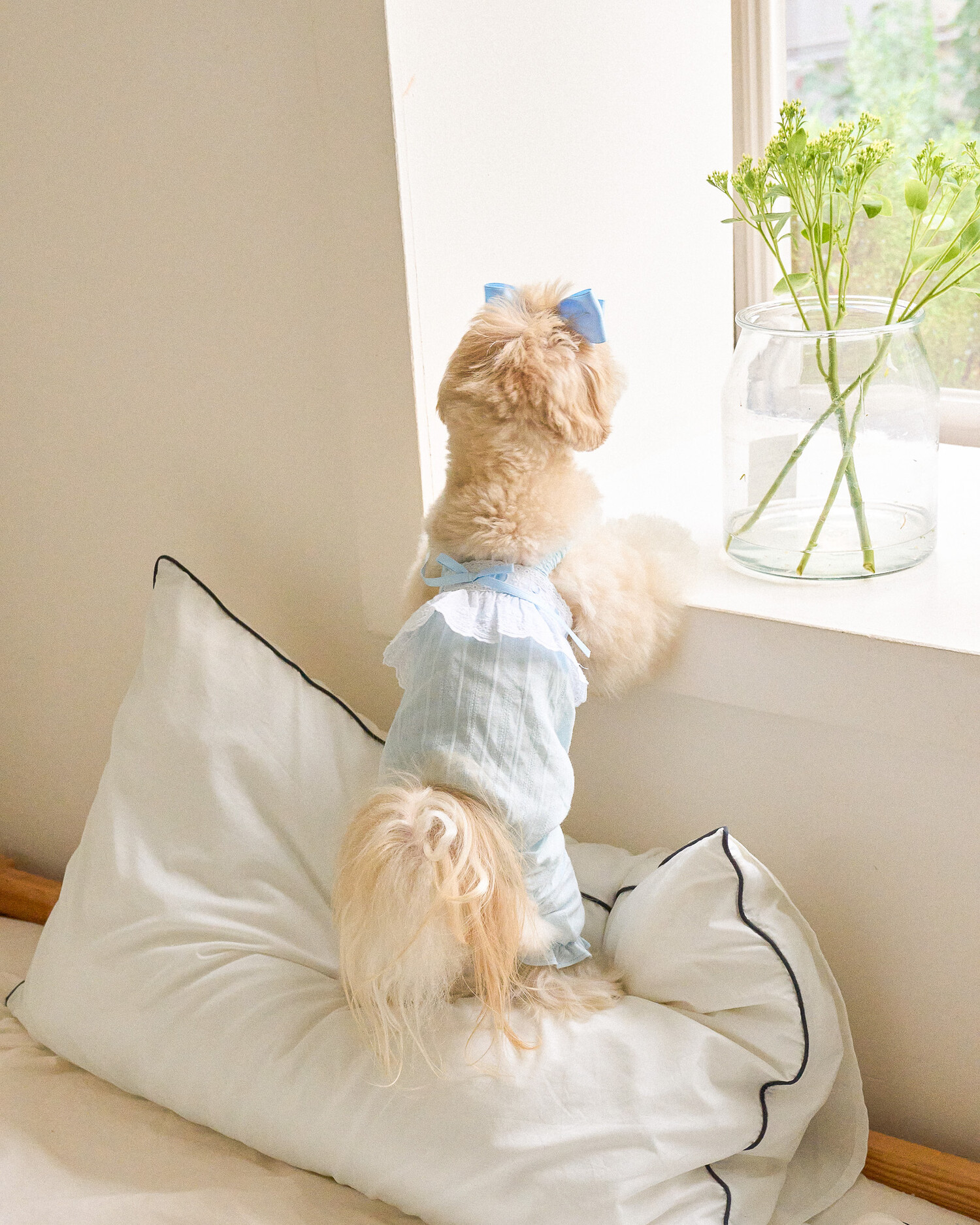 파스텔톤의 은은한 바탕색과 빈티지 무드가 돋보이는 리본 레이스가 조화롭게 이루어져, 여리여리한 무드를 연출해 줍니다