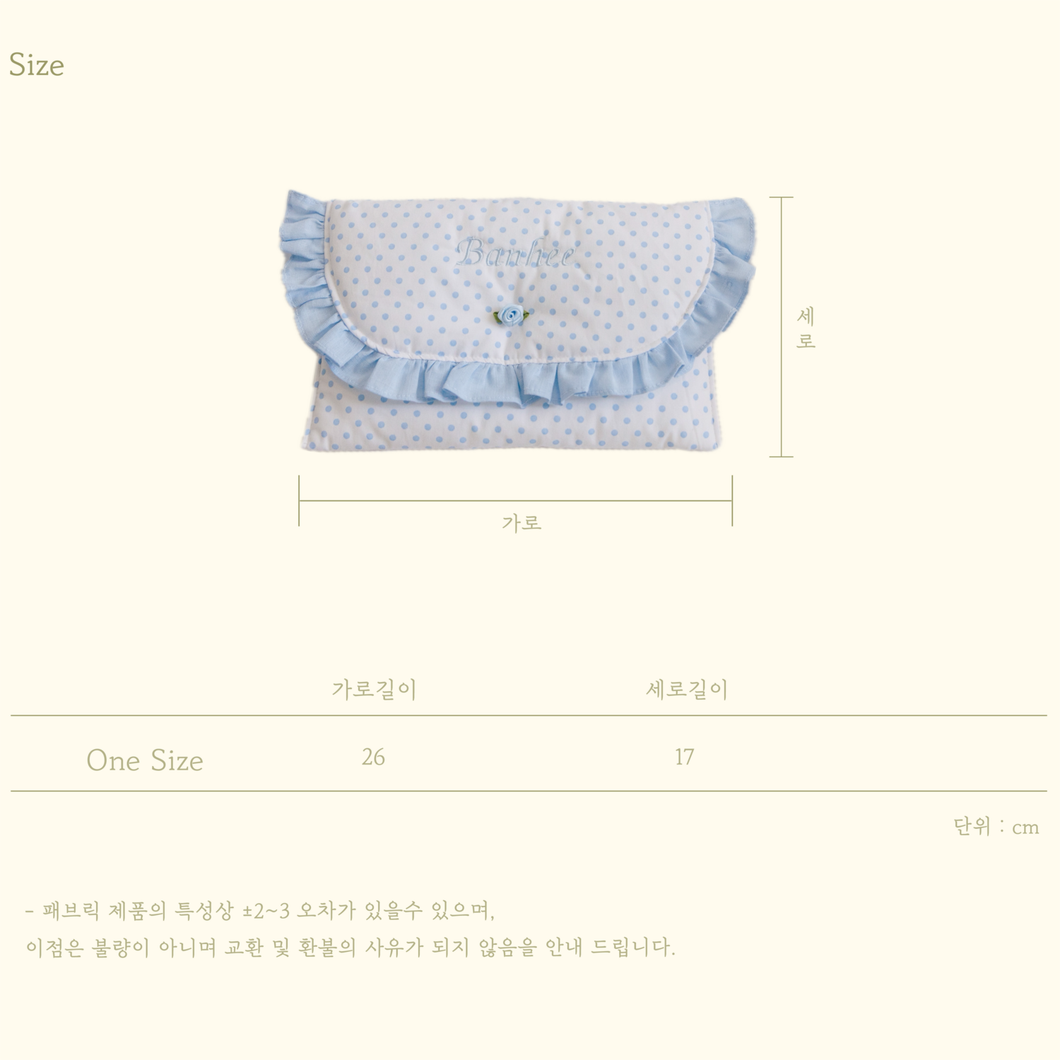 [Notice] •본 제품은 주문 제작 제품으로 2-3일(영업일 기준)이 소요되는 점 참고 부탁드립니다. (일반배송 제품과 함께 주문 시 묶음배송으로 진행되며, 빠르게 받아보셔야 하는 제품의 경우, 단독주문을 진행해주세요!) •주문 제작 상품의 경우, [배송준비중] 단계에서의 취소가 어려우신 점 참고 부탁드립니다. •영문 최대 8자 가능하며, [앞 글자] 대문자 1자(글씨크기로 인해 1자 제한)+ [나머지] 소문자(최대 7자) 작성이 가능합니다. ( 대문자(1자 제한) / 한글&특수문자 X ) •네이밍 자수의 폰트 / 컬러 변경이 불가능 합니다. •커스텀 네이밍 옵션 추가 시, 재판매가 어려우므로 단순 변심으로 인한 교환 및 환불이 불가한 점 안내드리며, 신중한 구매 부탁드립니다. •커스텀 네이밍 제품의 특성상, 오기재로 인한 교환 및 환불이 불가한 점 안내드리며, 알맞은 기재와 확인 부탁드립니다. •패브릭 제품의 특성상 ±1~2cm 오차가 있을 수 있으며, 이점은 불량이 아니며 교환 및 환불의 사유가 되지 않음을 안내드립니다.