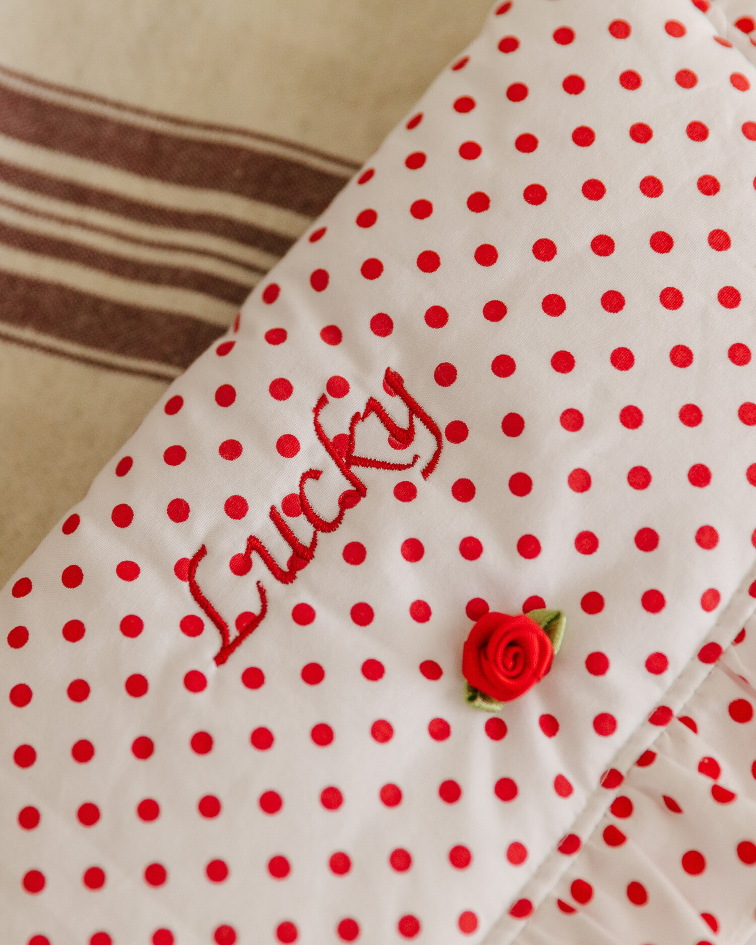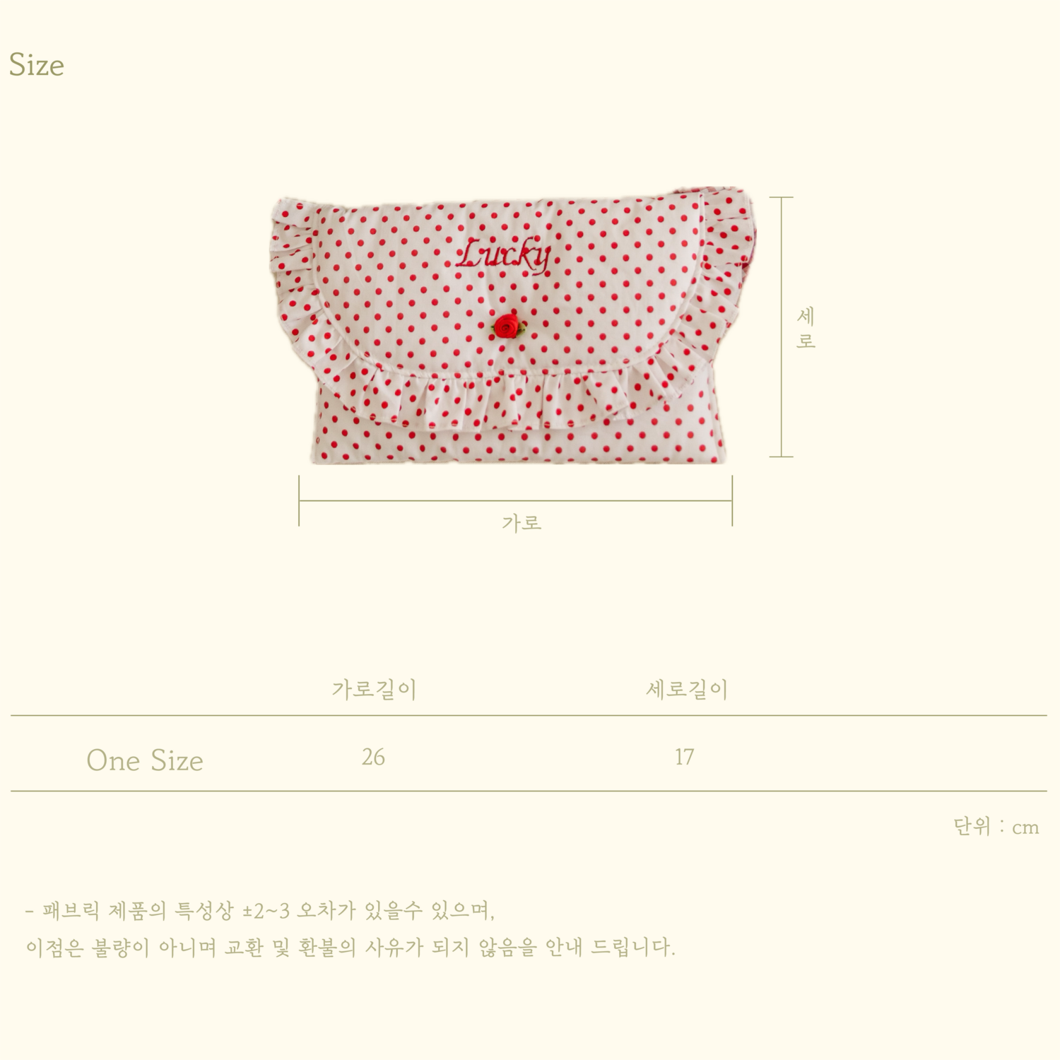 [Notice] •본 제품은 주문 제작 제품으로 2-3일(영업일 기준)이 소요되는 점 참고 부탁드립니다. (일반배송 제품과 함께 주문 시 묶음배송으로 진행되며, 빠르게 받아보셔야 하는 제품의 경우, 단독주문을 진행해주세요!) •주문 제작 상품의 경우, [배송준비중] 단계에서의 취소가 어려우신 점 참고 부탁드립니다. •영문 최대 8자 가능하며, [앞 글자] 대문자 1자(글씨크기로 인해 1자 제한)+ [나머지] 소문자(최대 7자) 작성이 가능합니다. ( 대문자(1자 제한) / 한글&특수문자 X ) •네이밍 자수의 폰트 / 컬러 변경이 불가능 합니다. •커스텀 네이밍 옵션 추가 시, 재판매가 어려우므로 단순 변심으로 인한 교환 및 환불이 불가한 점 안내드리며, 신중한 구매 부탁드립니다. •커스텀 네이밍 제품의 특성상, 오기재로 인한 교환 및 환불이 불가한 점 안내드리며, 알맞은 기재와 확인 부탁드립니다. •패브릭 제품의 특성상 ±1~2cm 오차가 있을 수 있으며, 이점은 불량이 아니며 교환 및 환불의 사유가 되지 않음을 안내드립니다.
