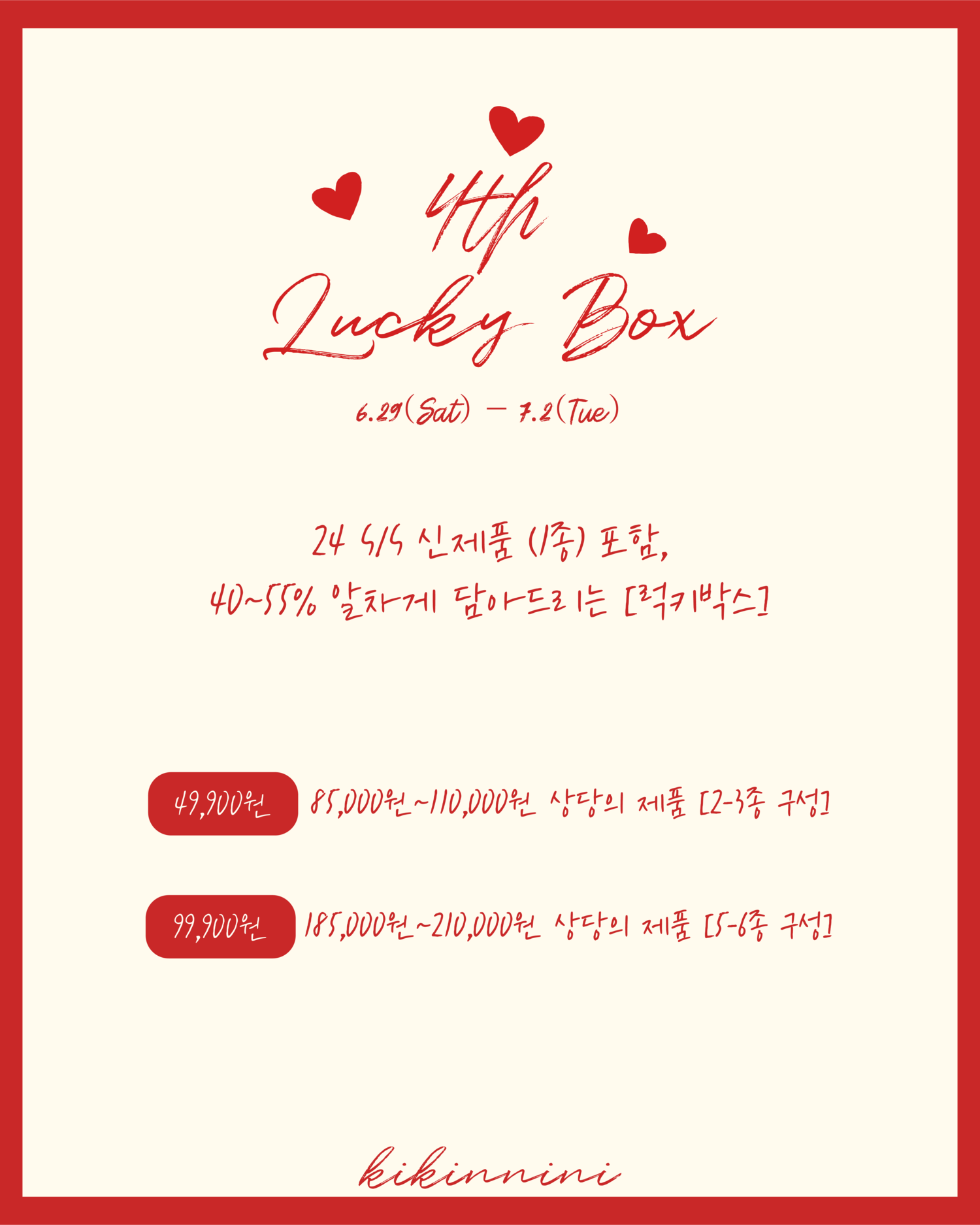 작년에 알찬 구성으로 많은 사랑 주셨던 키키앤니니 럭키박스가 4주년을 맞이하여 돌아왔습니다-!