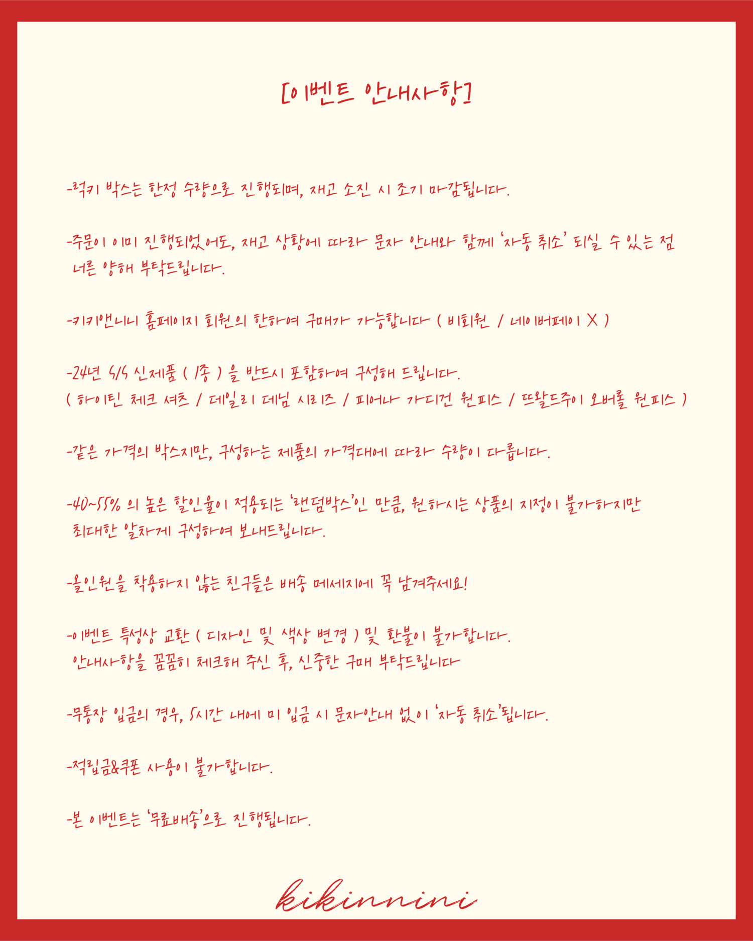 -이벤트 특성상 교환(디자인 및 색상 변경) 및 환불이 불가합니다. 안내사항을 꼼꼼히 체크해 주신 후, 신중한 구매 부탁드립니다