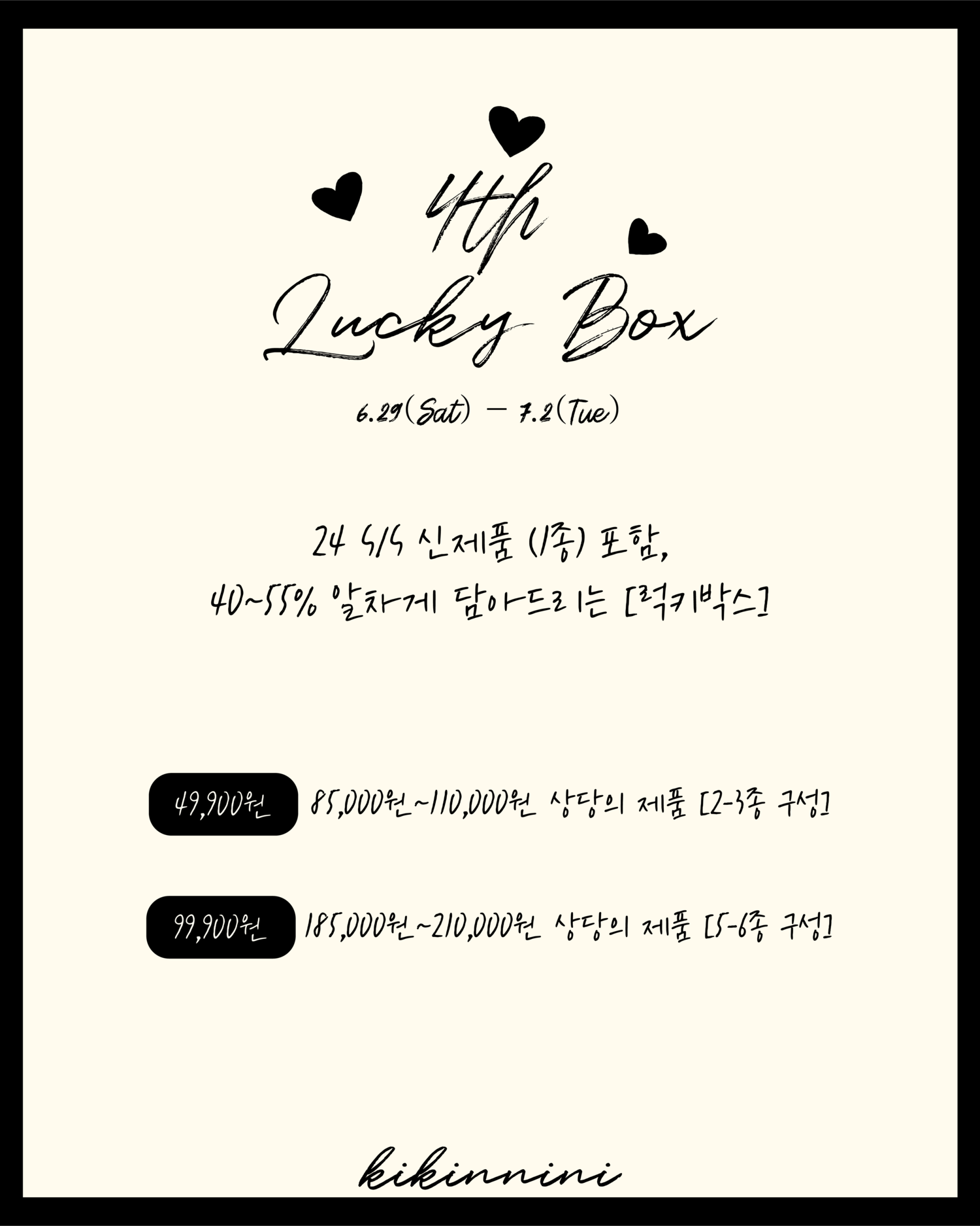 작년에 알찬 구성으로 많은 사랑 주셨던 키키앤니니 럭키박스가 4주년을 맞이하여 돌아왔습니다-!